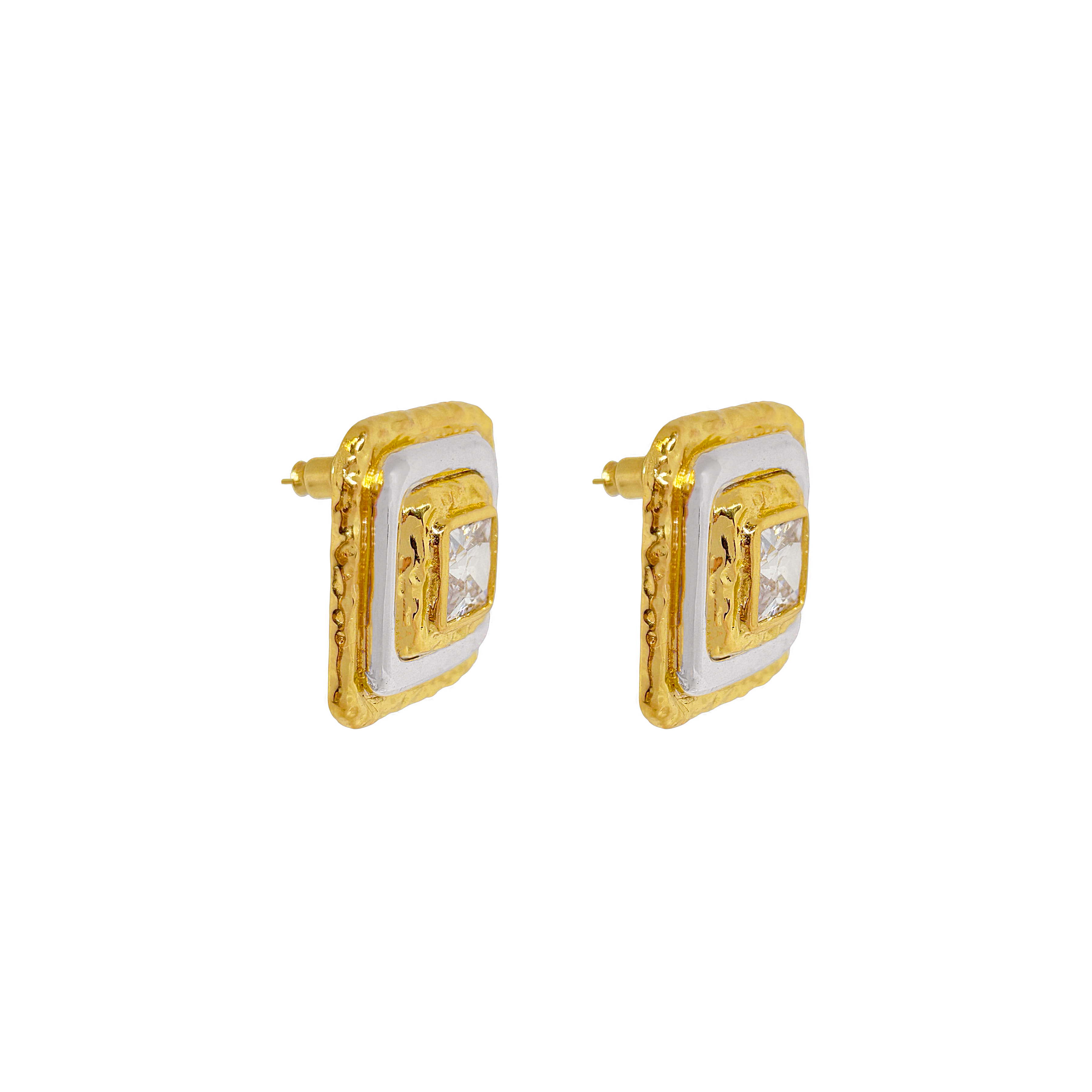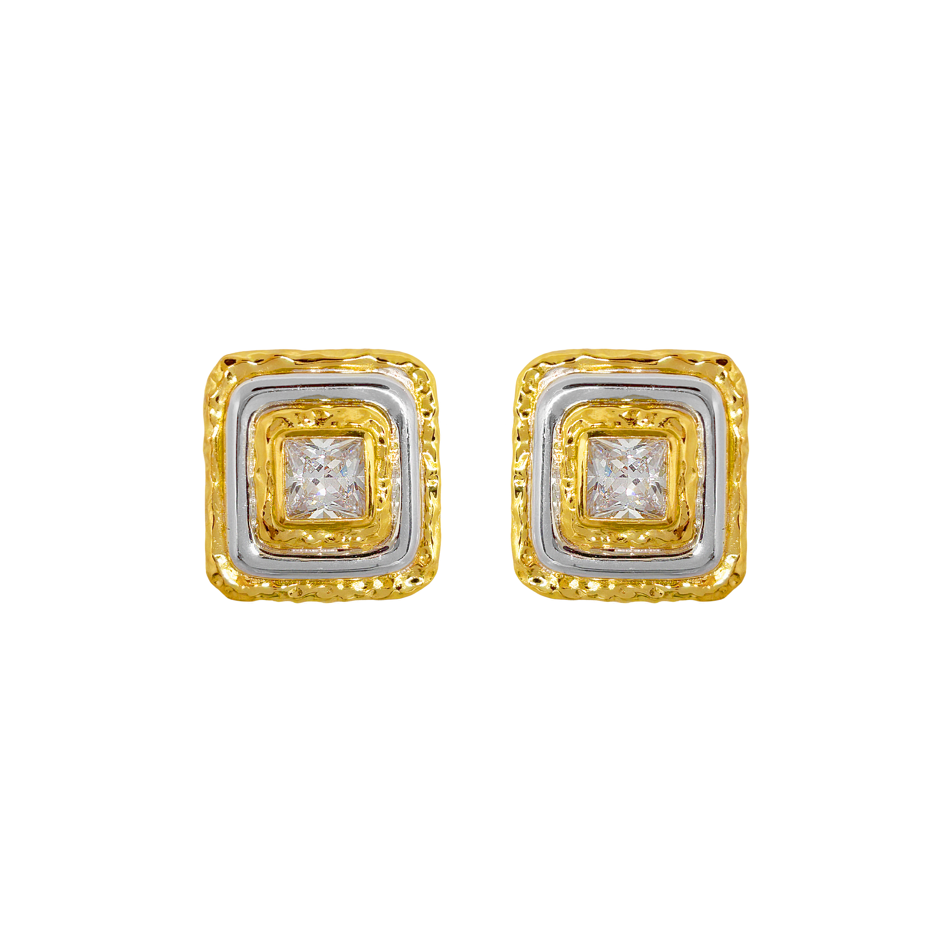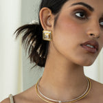 Sculptural and striking, the Archana Earrings celebrate the beauty of simplicity with a bold edge. Handcrafted in mixed metals using traditional techniques, the oversized shield-like form is finished in high polish and hammered texture, crowned with a radiant White CZ gemstone at it's center. Elevated yet effortless, they bring a quiet strength and luminous charm to the modern woman’s everyday statement.