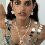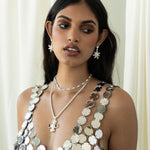 Rooted in artisanal tradition, the Pari Earrings reimagine one of our best-selling star motifs with new depth and decadence. Handcrafted using our signature MM techniques, the design features a hammered texture contrasted by a high-polish finish — a celebration of detail and duality. Encrusted with luminous freshwater pearls, each piece brings a sculptural elegance to the everyday, making it a standout for the modern woman who treasures craftsmanship with a twist.