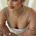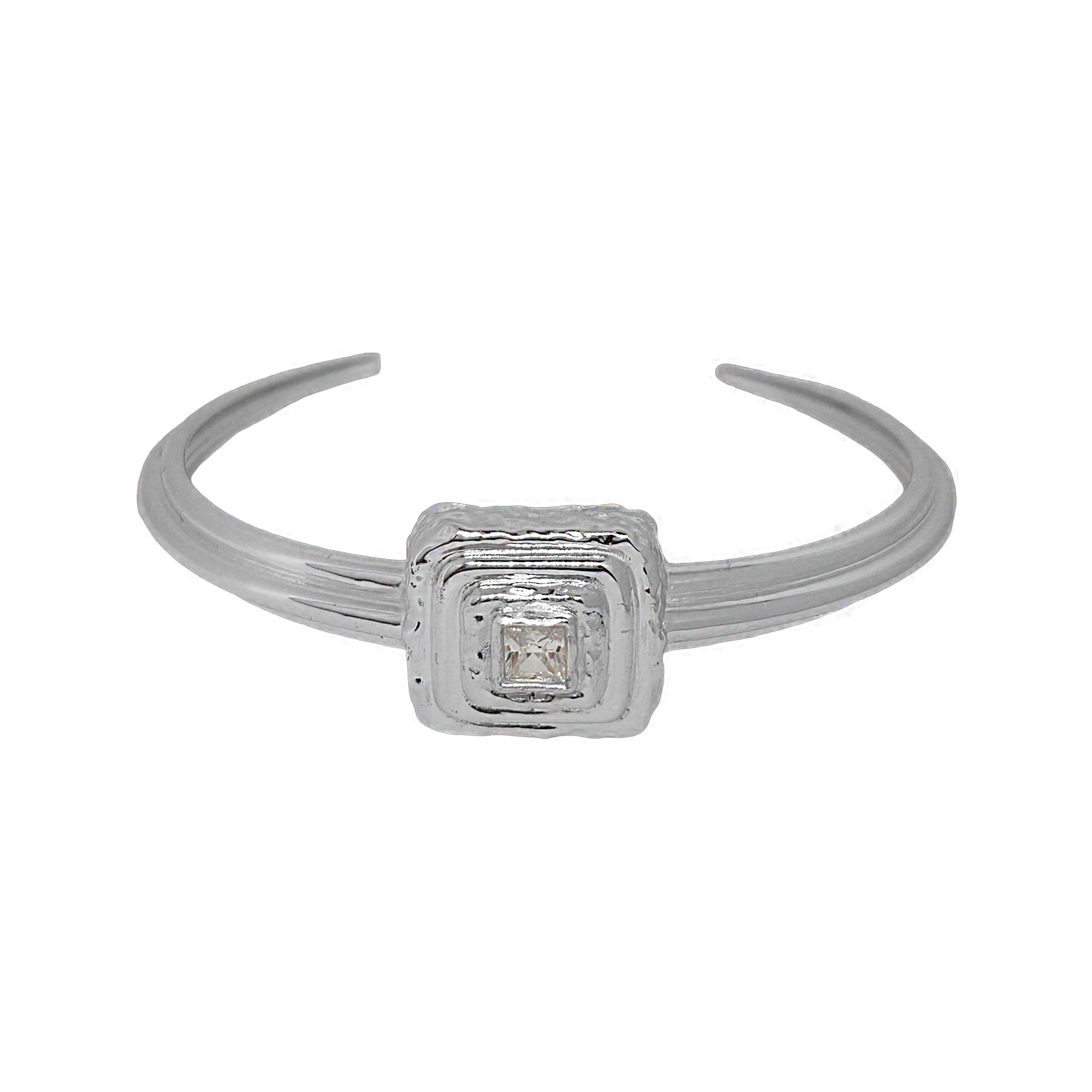 A bold expression of heritage and form, the Samira Cuff fuses architectural lines with artisanal warmth. Handcrafted by master artisans, its radiant silver finish encircles a sparkling CZ gemstone, framed in sculptural tiers that echo timeless traditions. Designed for the modern woman who moves with purpose and grace, this piece balances strength and elegance in every curve. Wear it solo as a statement or layered — a tribute to heritage, reimagined for today.