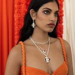 A modern ode to heritage, the Shreya Necklace fuses sculptural form with timeless elegance. Handcrafted by artisans, it features a harmonious composition of luminous Freshwater Pearls, Smoky Quartz, and sparkling White Cubic Zirconia stones — each gemstone thoughtfully placed to reflect light with quiet brilliance. Worn on its own or paired with the Anushka Earrings or a statement layered neckline, the Shreya is tradition reimagined for the modern woman.