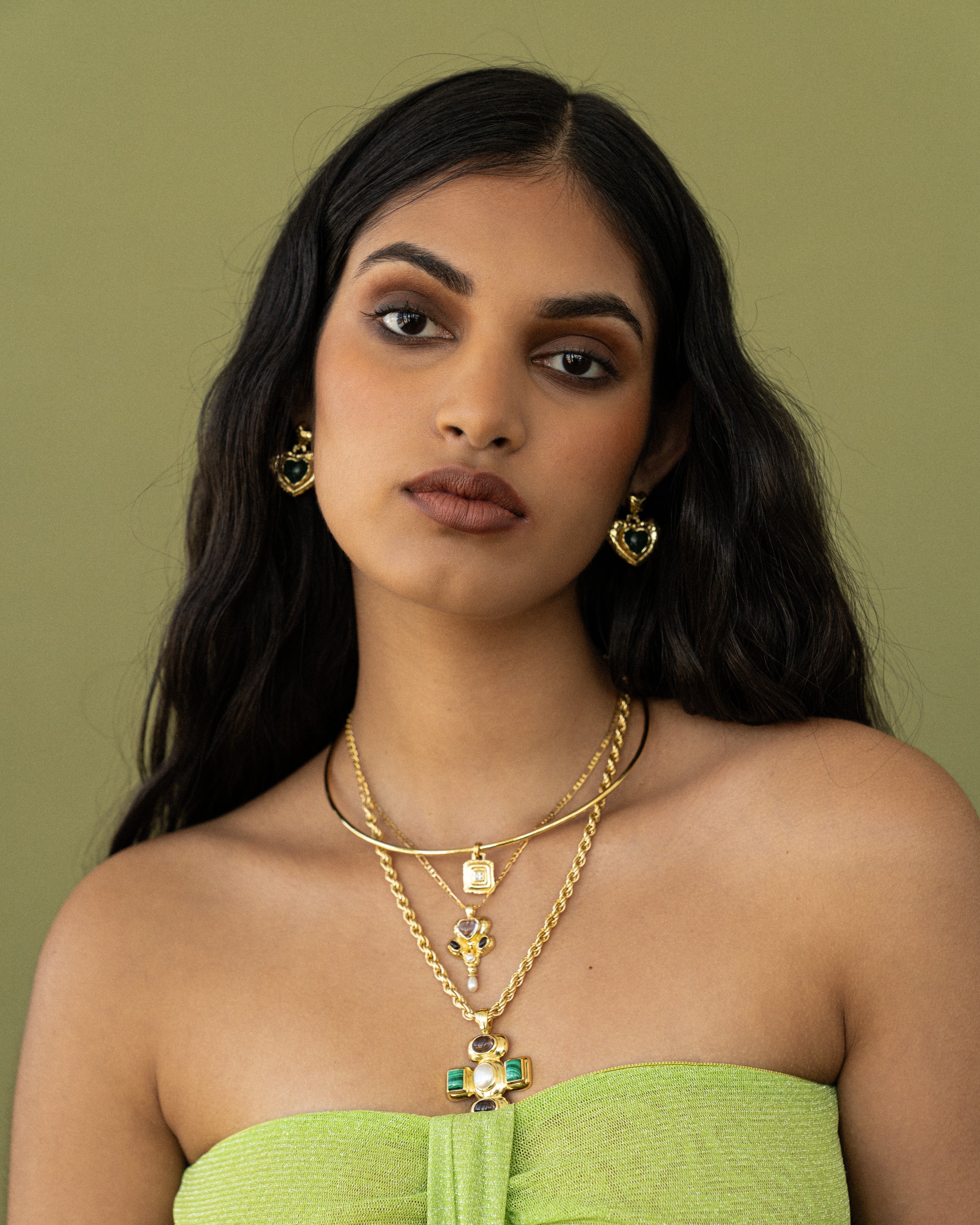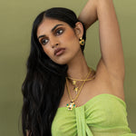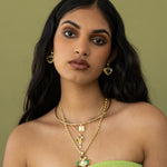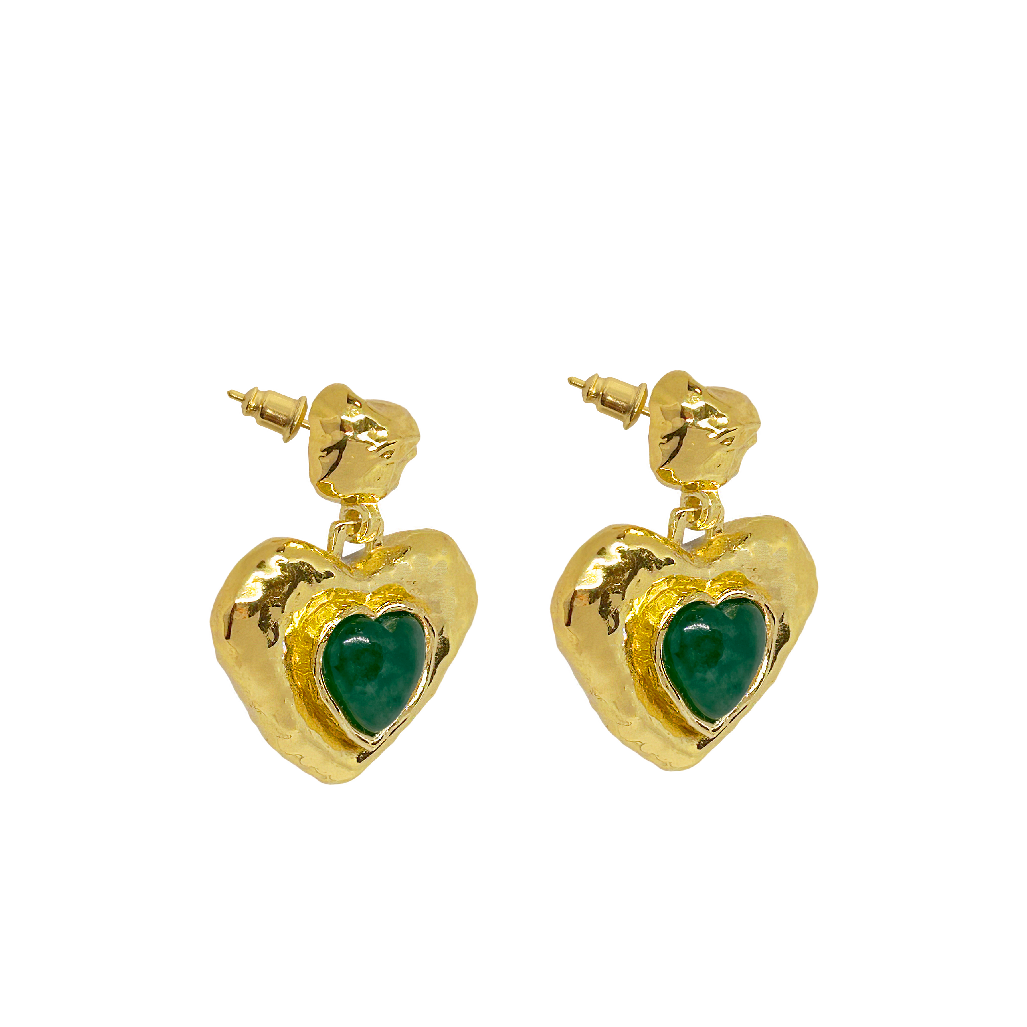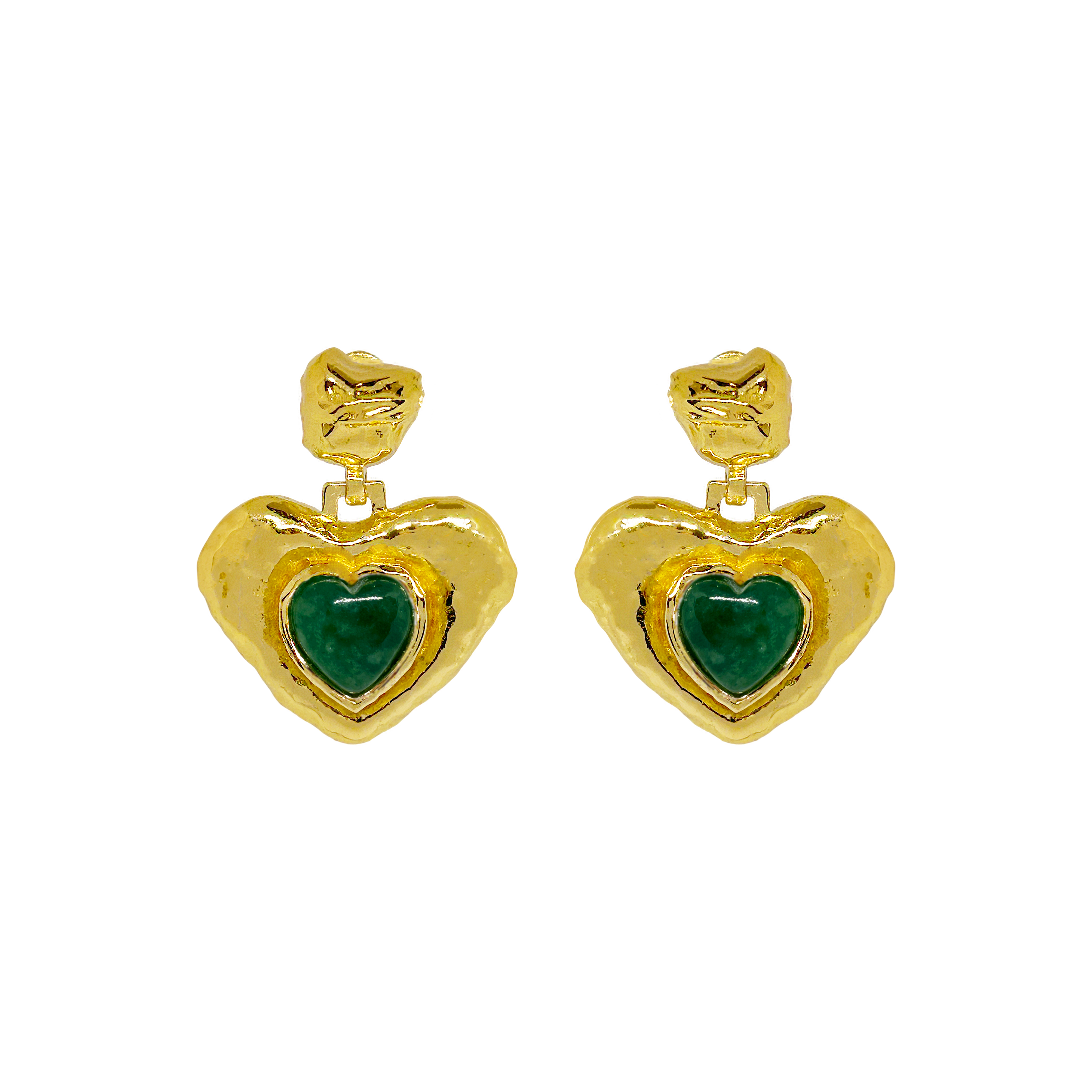 A playful take on a classic feminine motif, the Suri Earrings reimagine the heart through the lens of traditional craftsmanship. Hand-finished in radiant gold with a rich Green Aventurine gemstone, the Suri earrings merge age-old design techniques with a fresh, modern spirit. Bold yet tender, they speak to the contemporary woman who honours the past while embracing her own story.