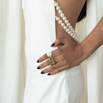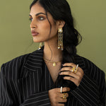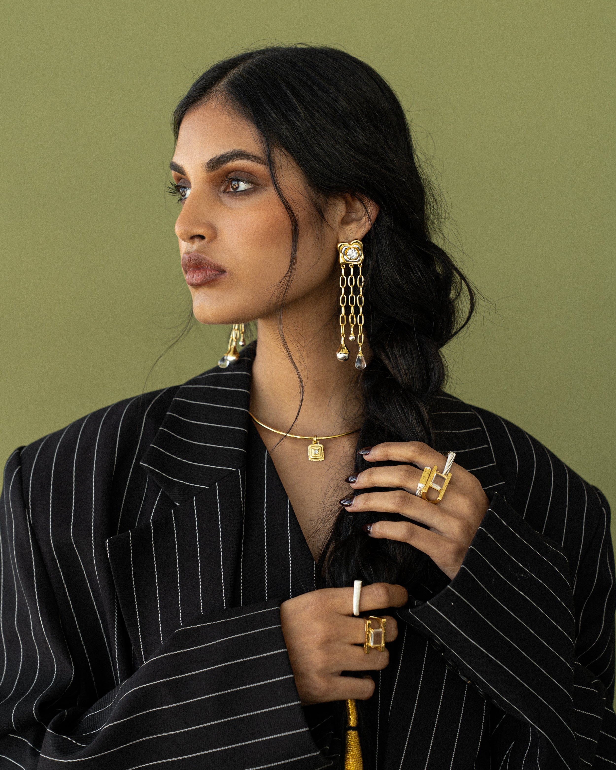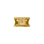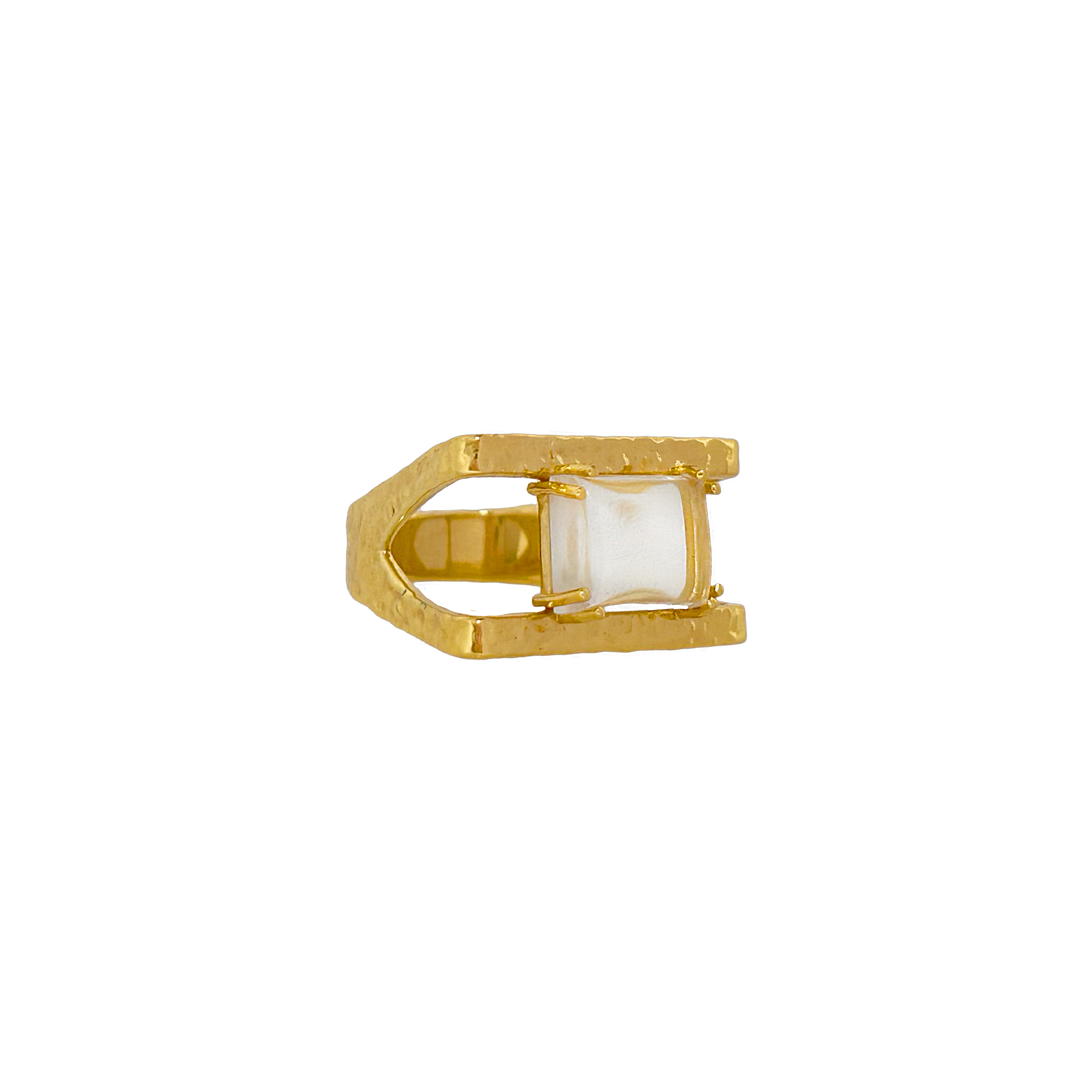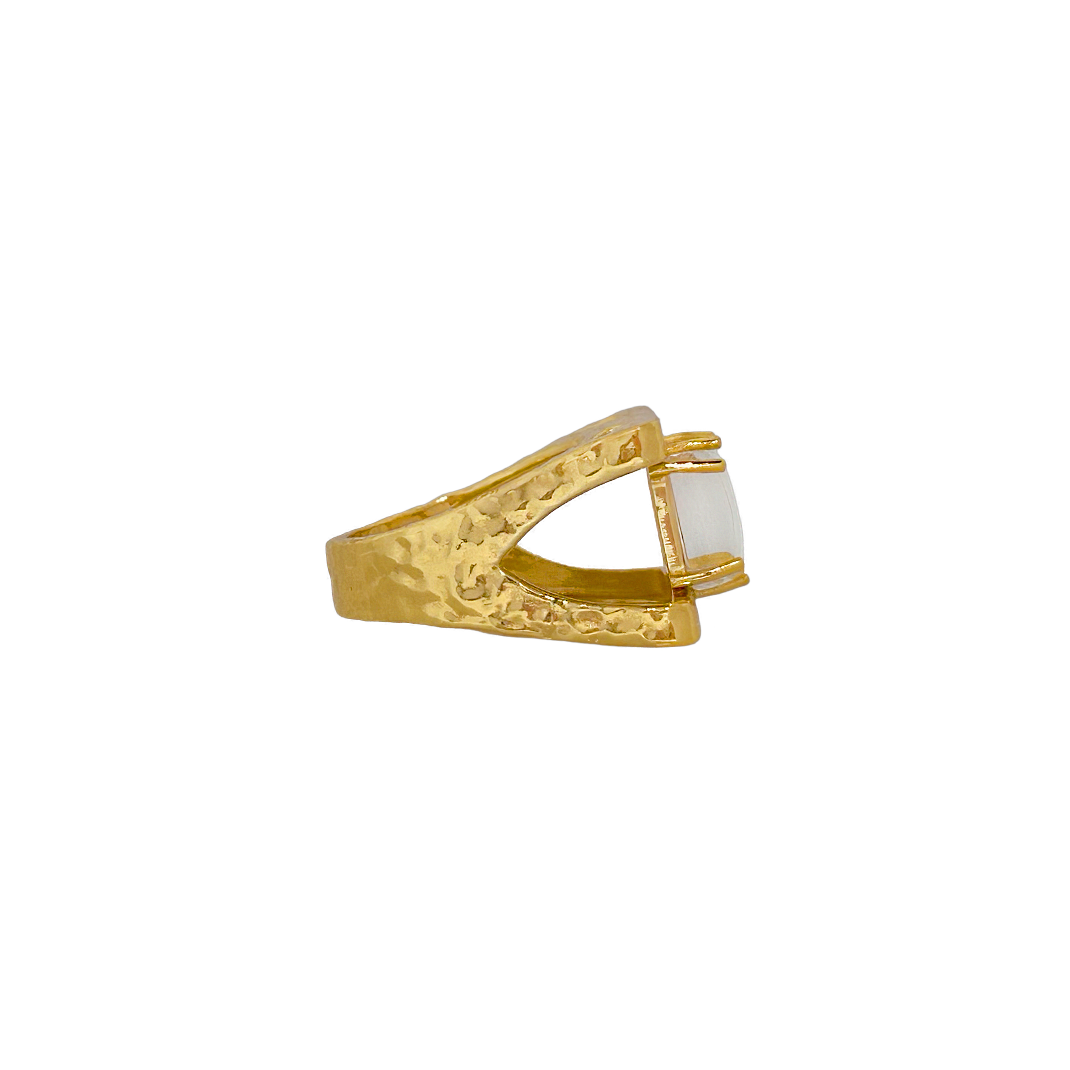 Sculptural and striking, the Varga Ring captures the essence of modern heritage. Anchored by a luminous Crystal Quartz cabochon, its open-form structure and molten gold texture echo ancient relics — reinterpreted for today’s woman. Bold yet refined, it’s a piece that commands attention while moving effortlessly between everyday wear and elevated moments. A timeless ode to power, presence, and personal style.