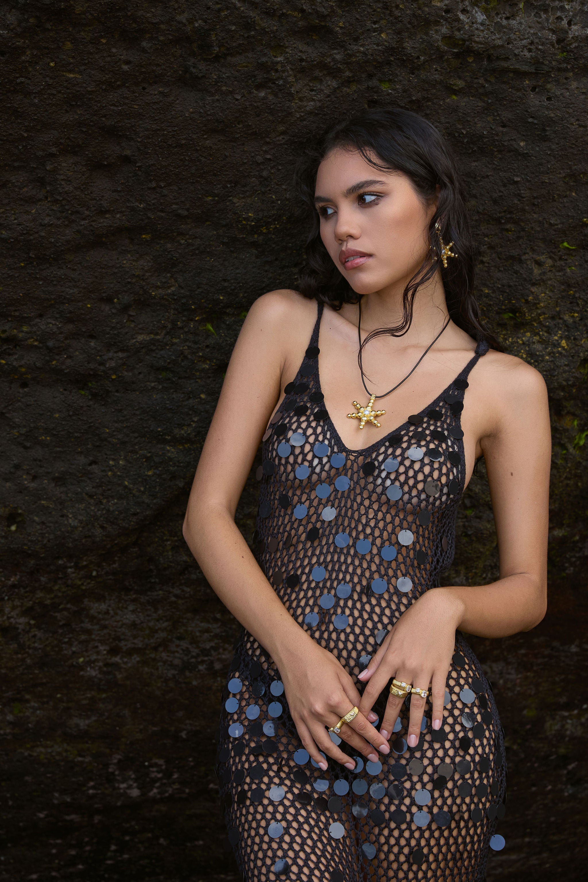 Part of the Sirens Collection, the Atlas Necklace is inspired by the stars that guided ancient seafarers across the Mediterranean—symbols of fate, protection, and wonder. The molten gold texture evokes sun-soaked relics, while the pearl at the center reflects the quiet elegance and strength of the sea.