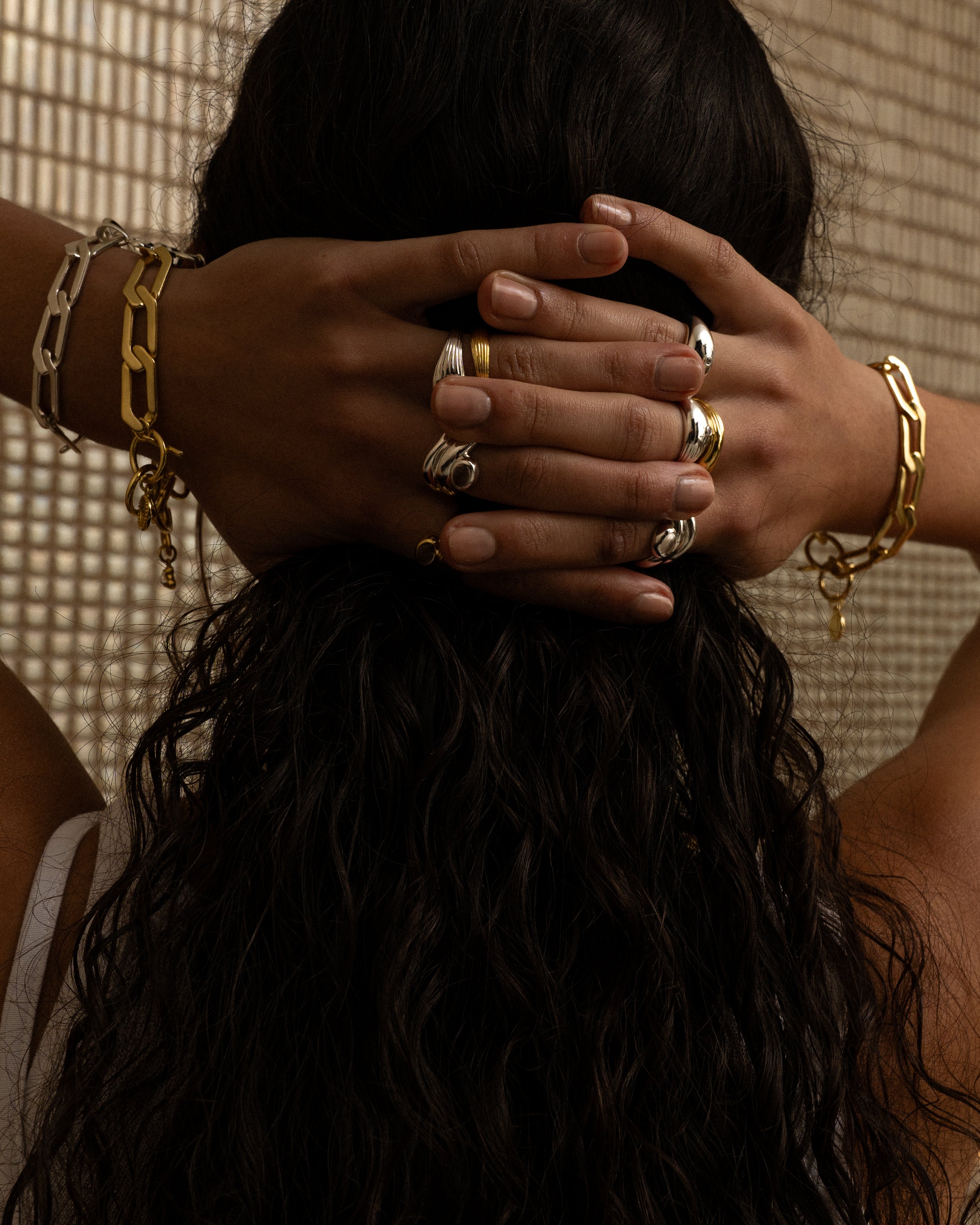 Our are crafted using responsibly sourced Italian brass, chosen for its durability and luxury feel. All pieces are lead and nickel free, ensuring they are gentle on the skin and hypoallergenic.