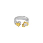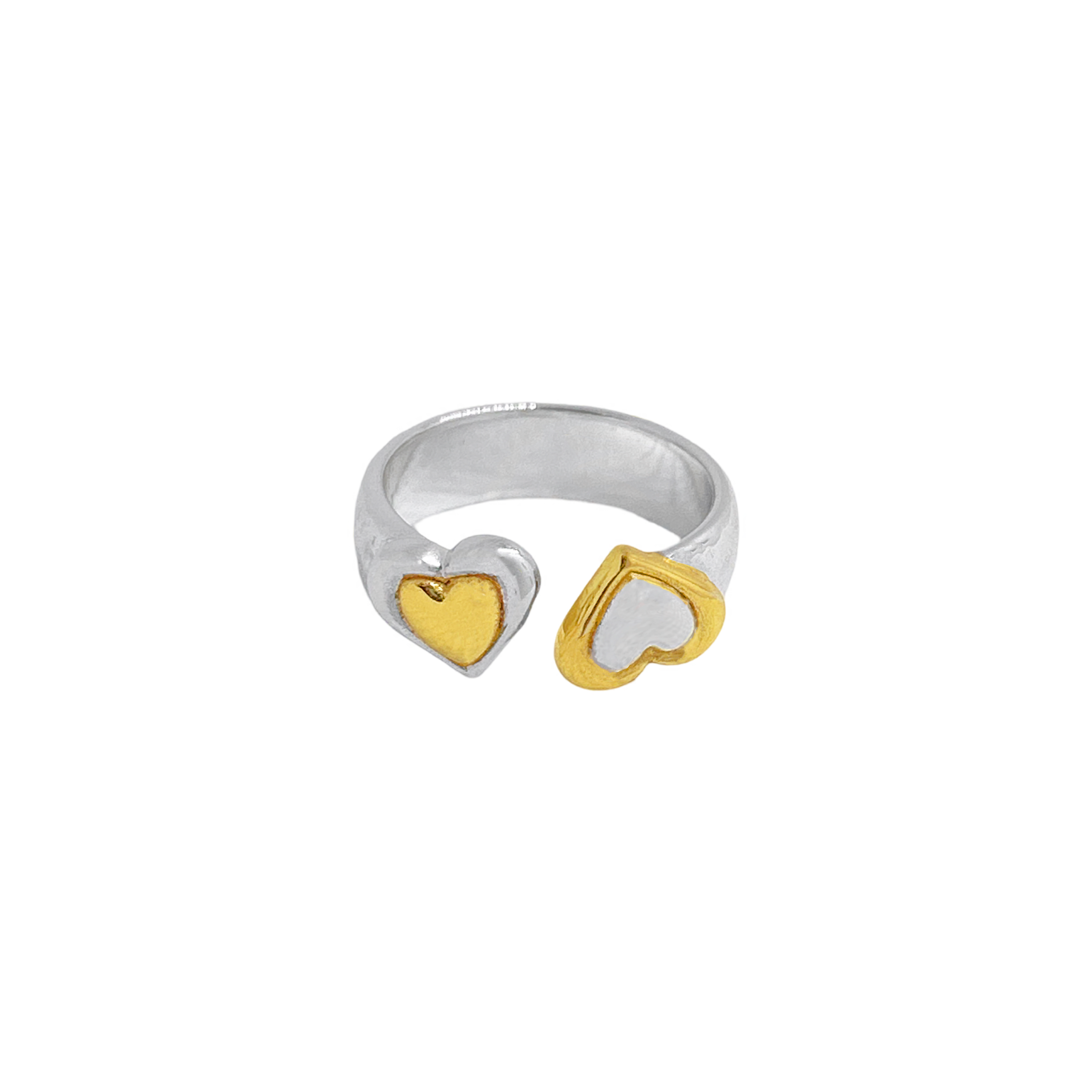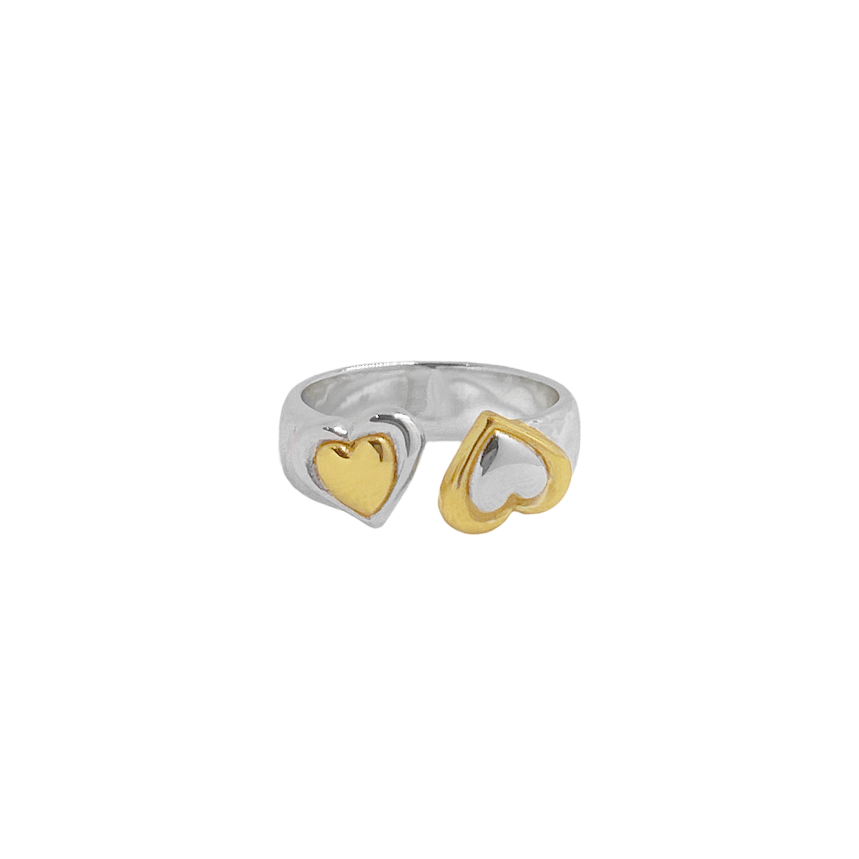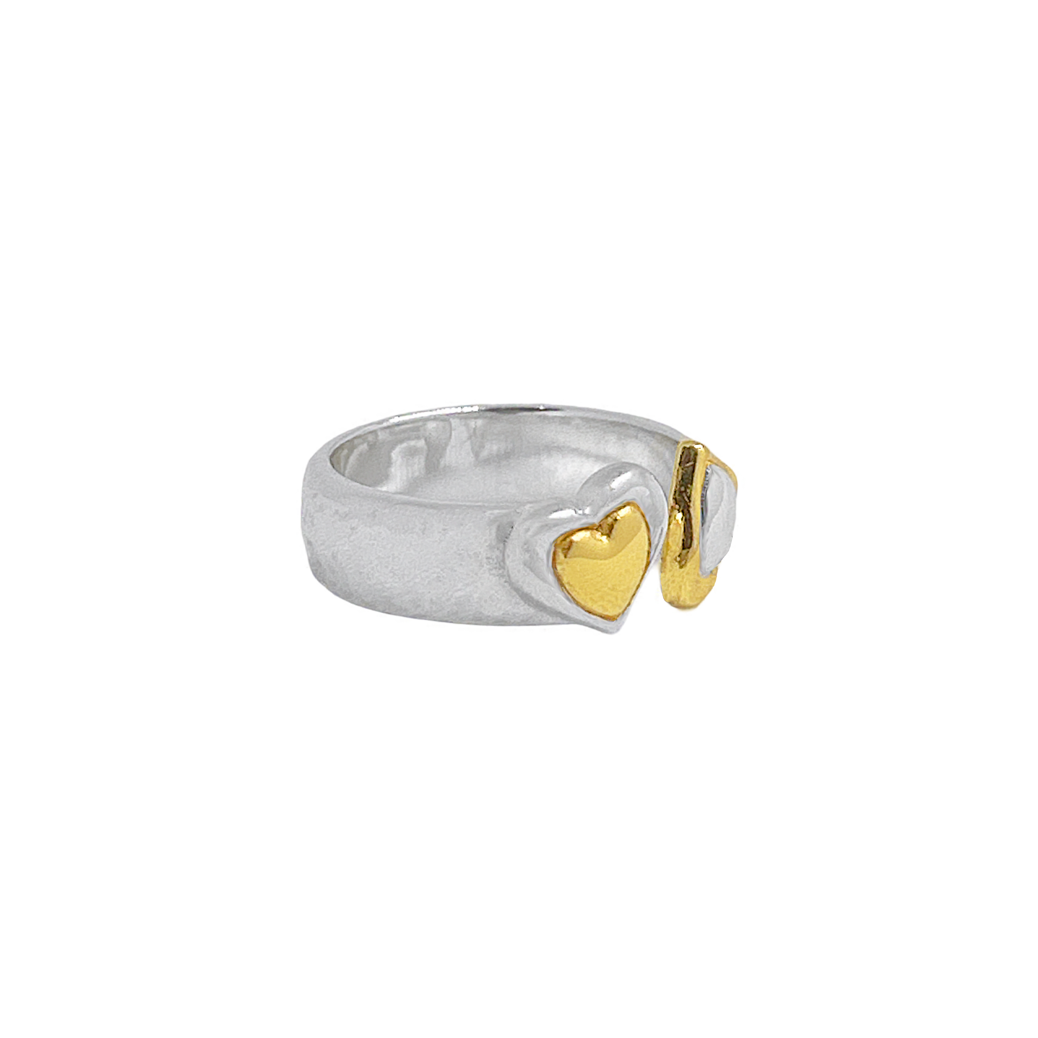 Add a touch of romance to your ring stack with the Imogen Ring in Mixed metal gold & silver plating. Inspired by star crossed lovers, this beauty features textured double hearts and a gorgeous play on asymmetrical mixed metals set on a wide set band. She is the perfect addition to a layered ring look or ever so beautiful on her own. Perfectly romantic and oh-so-adorable, let the Imogen Ring bring you all the feels!