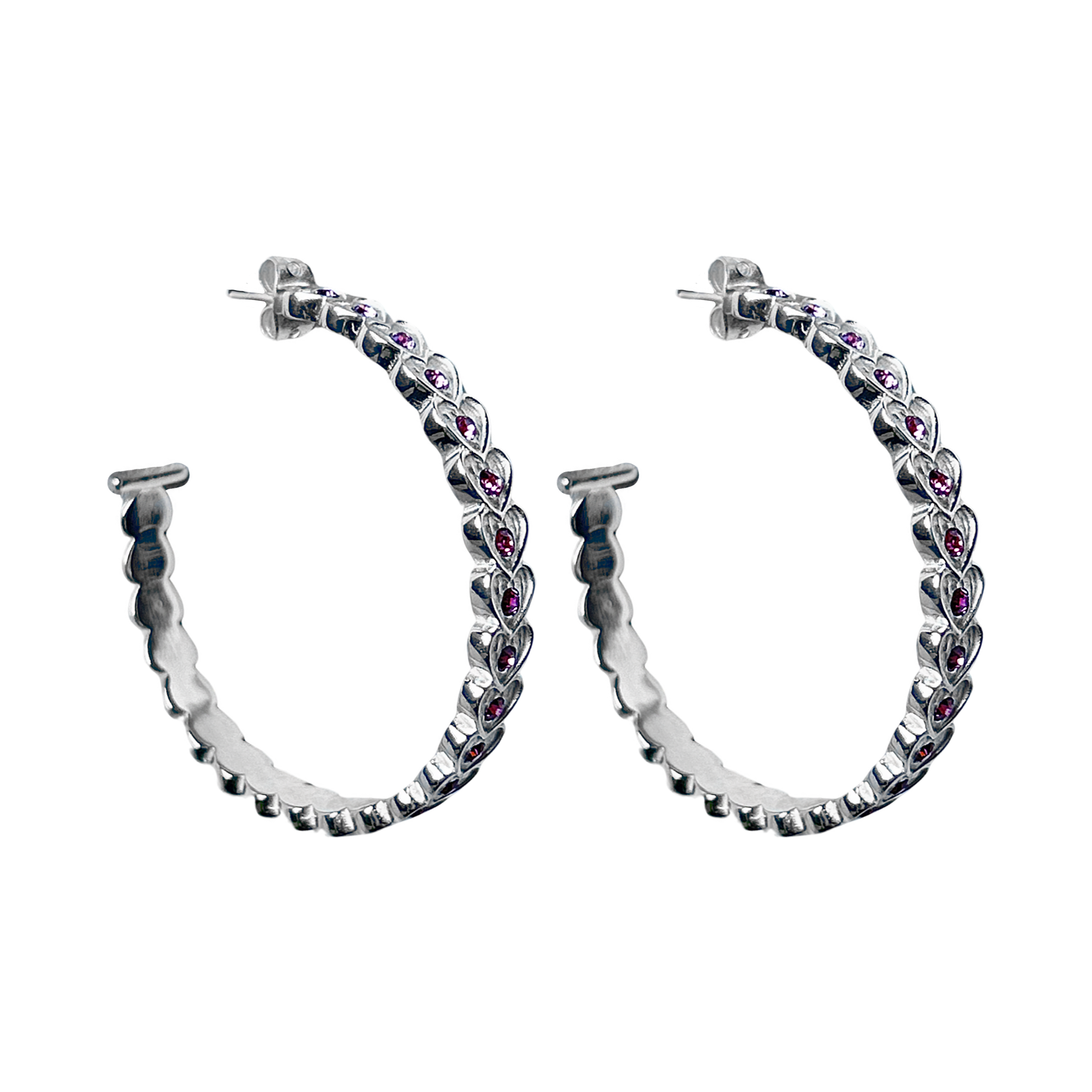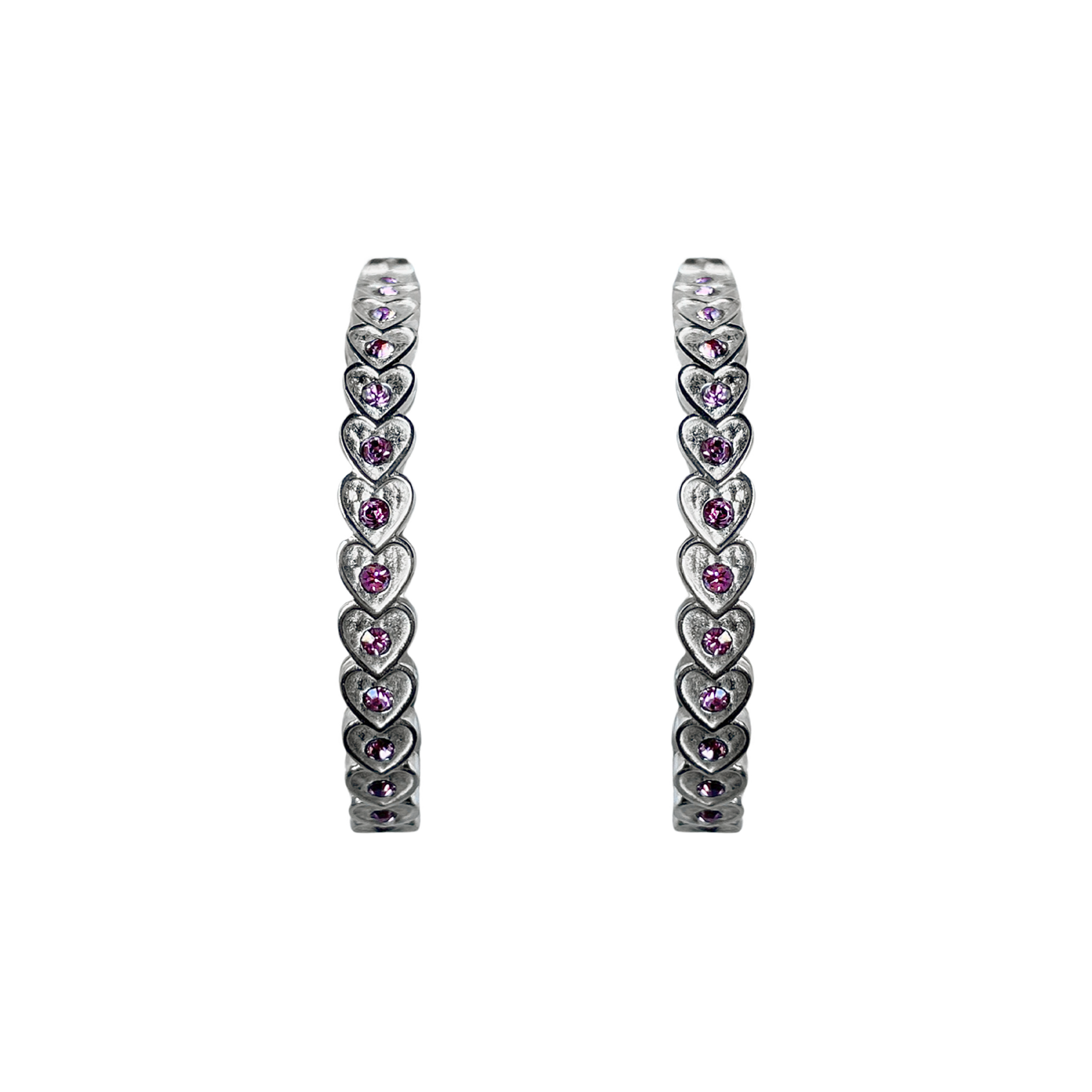 She's fun, she's flirty, she's fabulous... the AMBER Hoops! The iconic and head-turning hoops with a sassy textured heart motif and sparkling pink gemstones. Talk about eye catching and sure to add a playful touch to any look, the Amber hoops will be your go-to accessory. Who doesn’t love a hoop... but make it iconic!