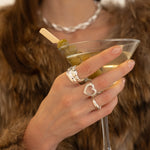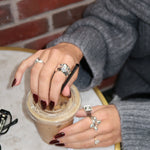 Introducing the Bleecker Ring, let's start by saying she is oh so chic and very cool! Boasting a chunky hammered texture band and a dazzling faceted White CZ in a seamless setting. The Bleecker Ring is fluid and more undone in comparison to our more structured cocktail ring styles which makes her an effortless styling accessory. The Bleecker has been designed to stack perfectly with the Billie Ring, though she is ever so striking all on her own. The Bleecker brings the edge without trying too hard... You'll be giving "it girl' vibes!