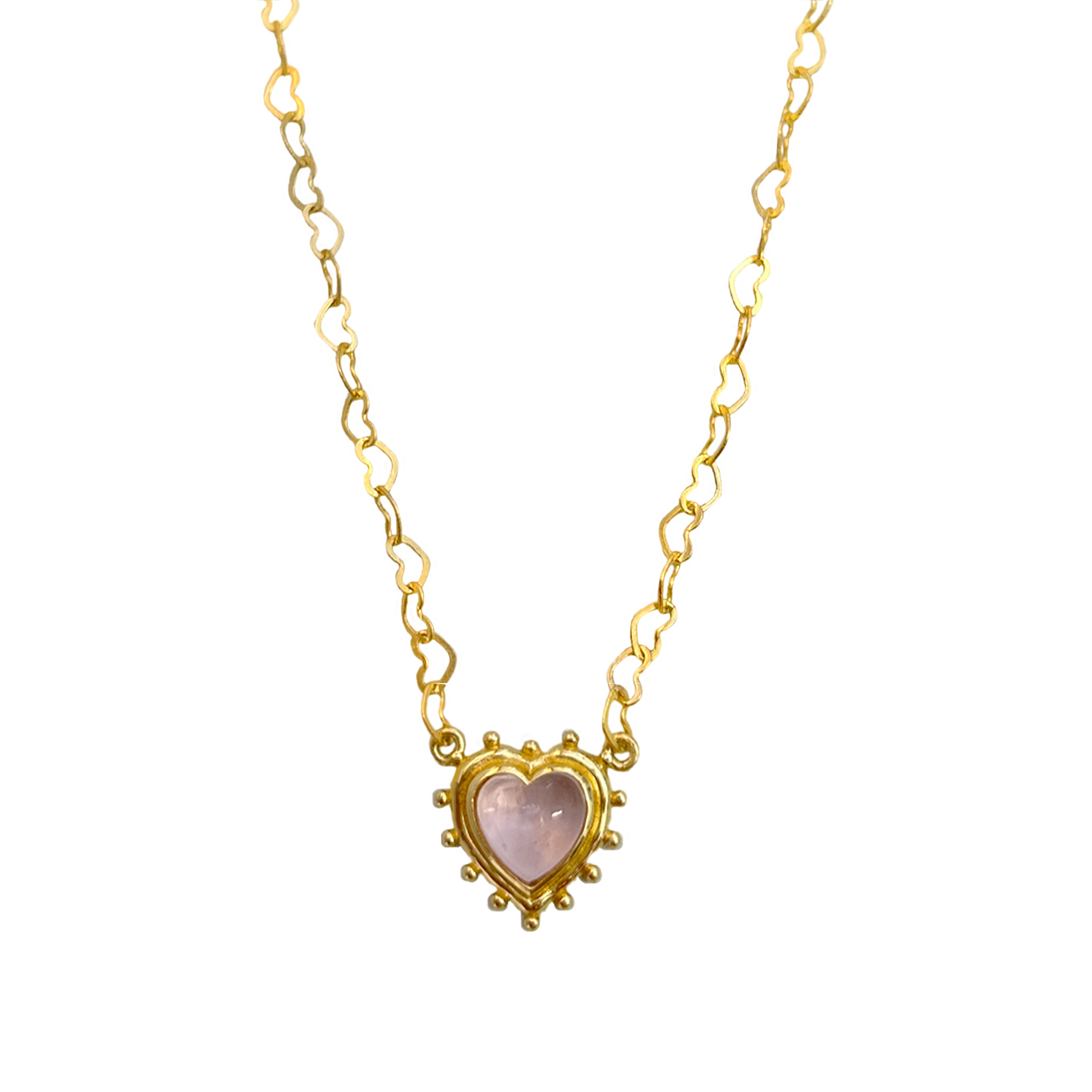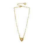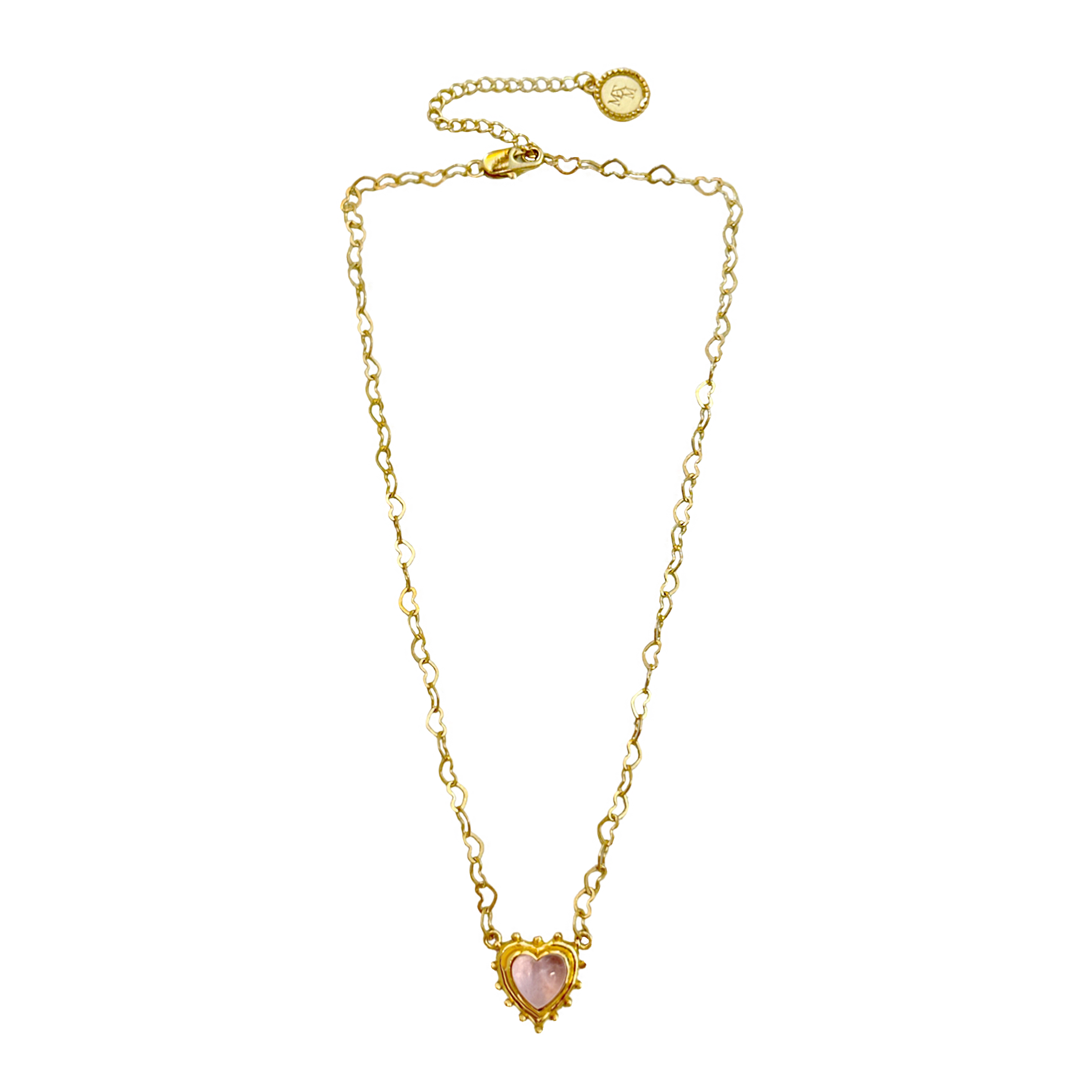 A sweet heart necklace you will want to add-to-cart immediately!! She is gorgeous, playful, sweet and iconic of course... meet the CINDY Necklace. Features a uniquely dainty heart link chain that brings all the sparkle and the most perfect heart motif pendant with rose pink glass that sits pretty at the nape of the neck. The CINDY is another play on the 90's choker but for the girlies that like a little more length. Stunning all on her own or layered, the choices are endless. We love her and she's sure to be a cult favourite of the collection.