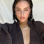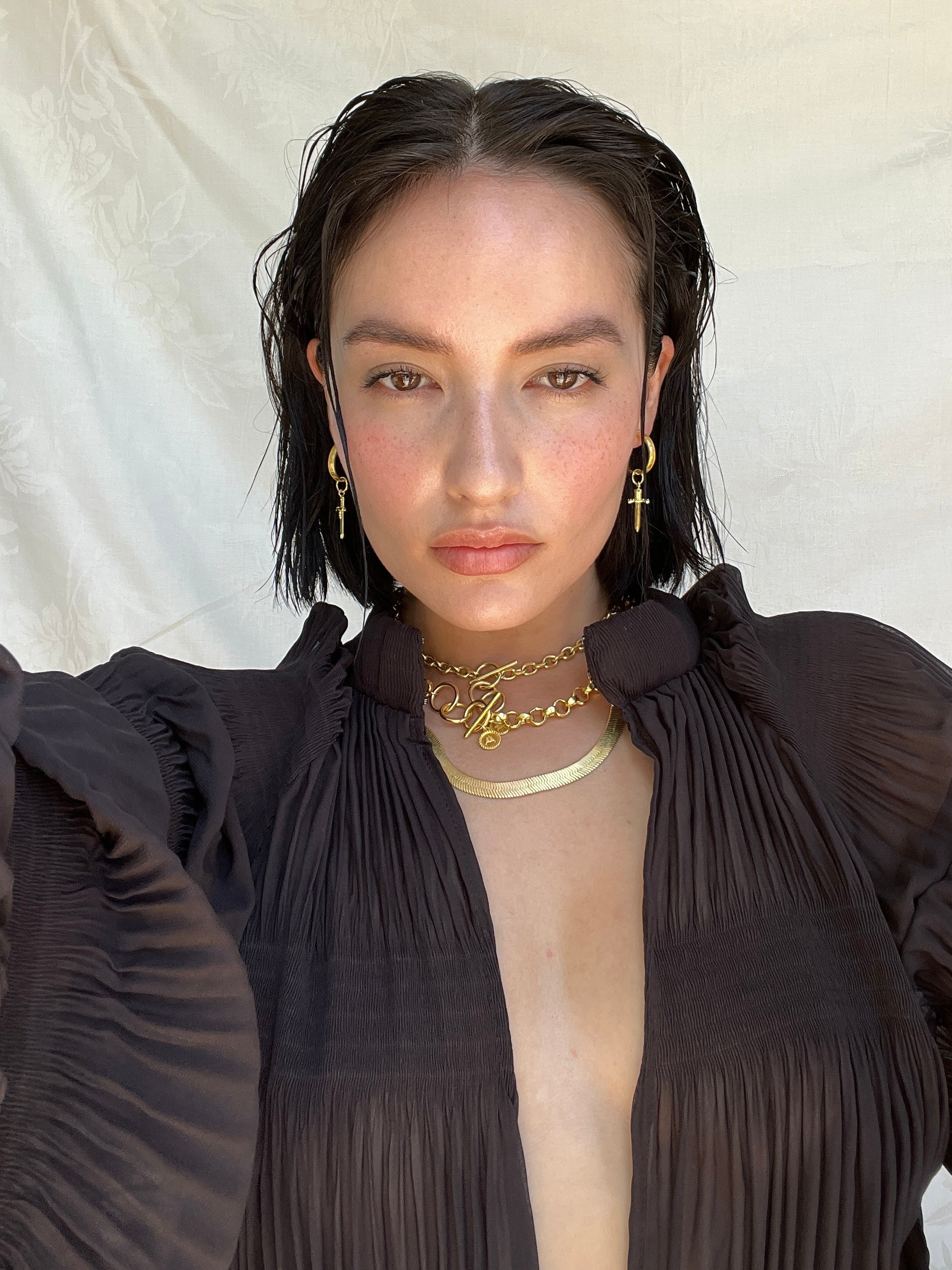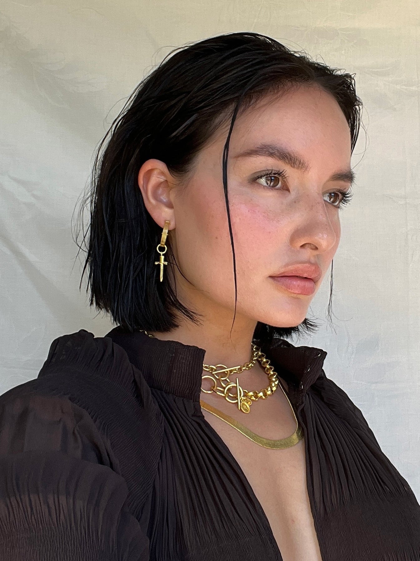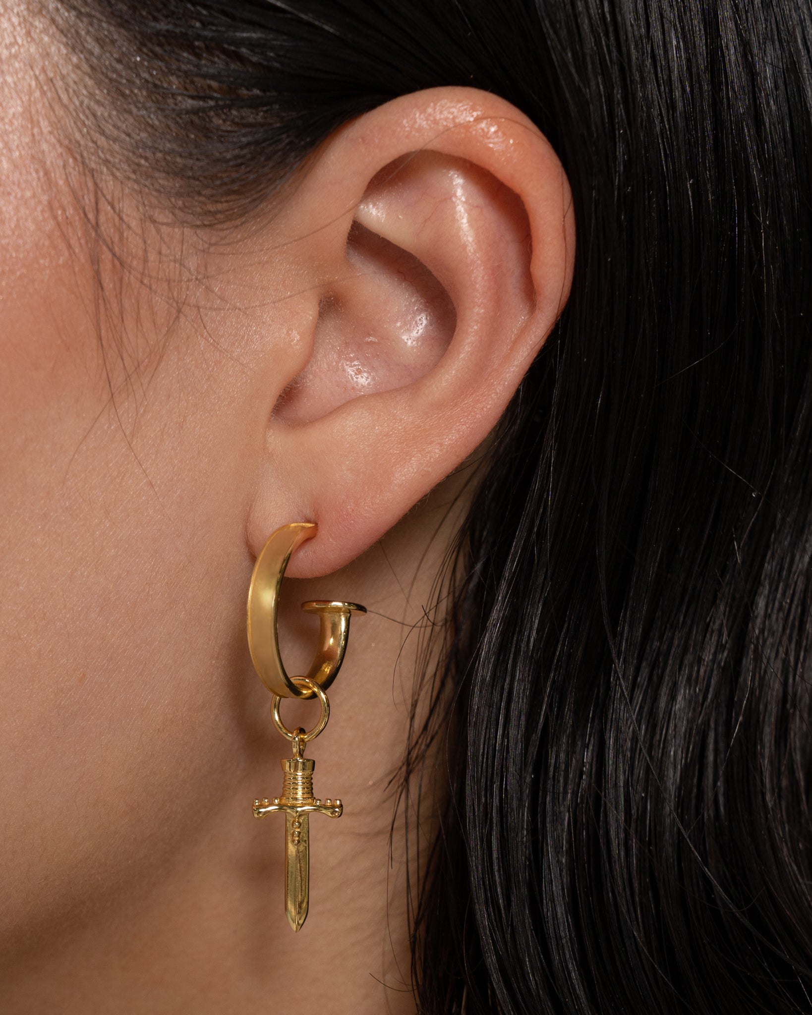 Our bestselling Dagger Mini Hoop Earrings are a little hoop moment that our MM Women absolutely adore!  We all love a baby hoop and these goldies are no exception. They easily dress up any outfit, especially with the addition of our gorgeous charms, or they are perfect on their own. To be honest, we have been known to wear these for most occasions, including walking the dog and going to pilates. They really are your everyday earring bestie!