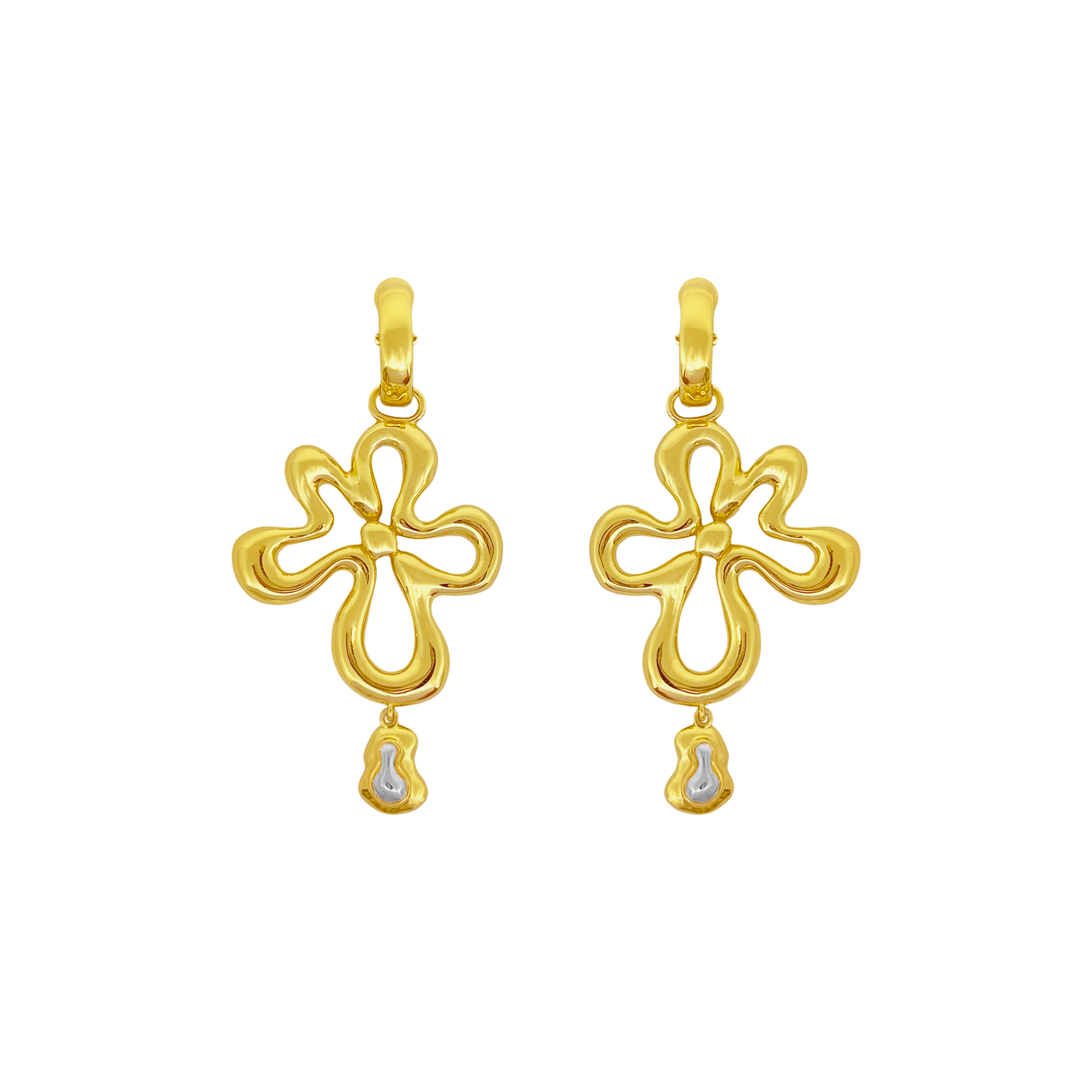 The DAHLIA Earrings in Gold evoke the playful side of nature’s elements, the ebbs and flows in water, the beautiful veining in untouched stone, the scalloping shores of the sea sides. The Dahlia boast a chic fluid motif suspended from a perfect and easy to wear mini hoop in a high polish finish. Sized to perfection suitable from day to night, these beauties are sure to become the favourites of the Ambrosia collection. Pair with the Maeve necklace to create a gorgeous matching set.