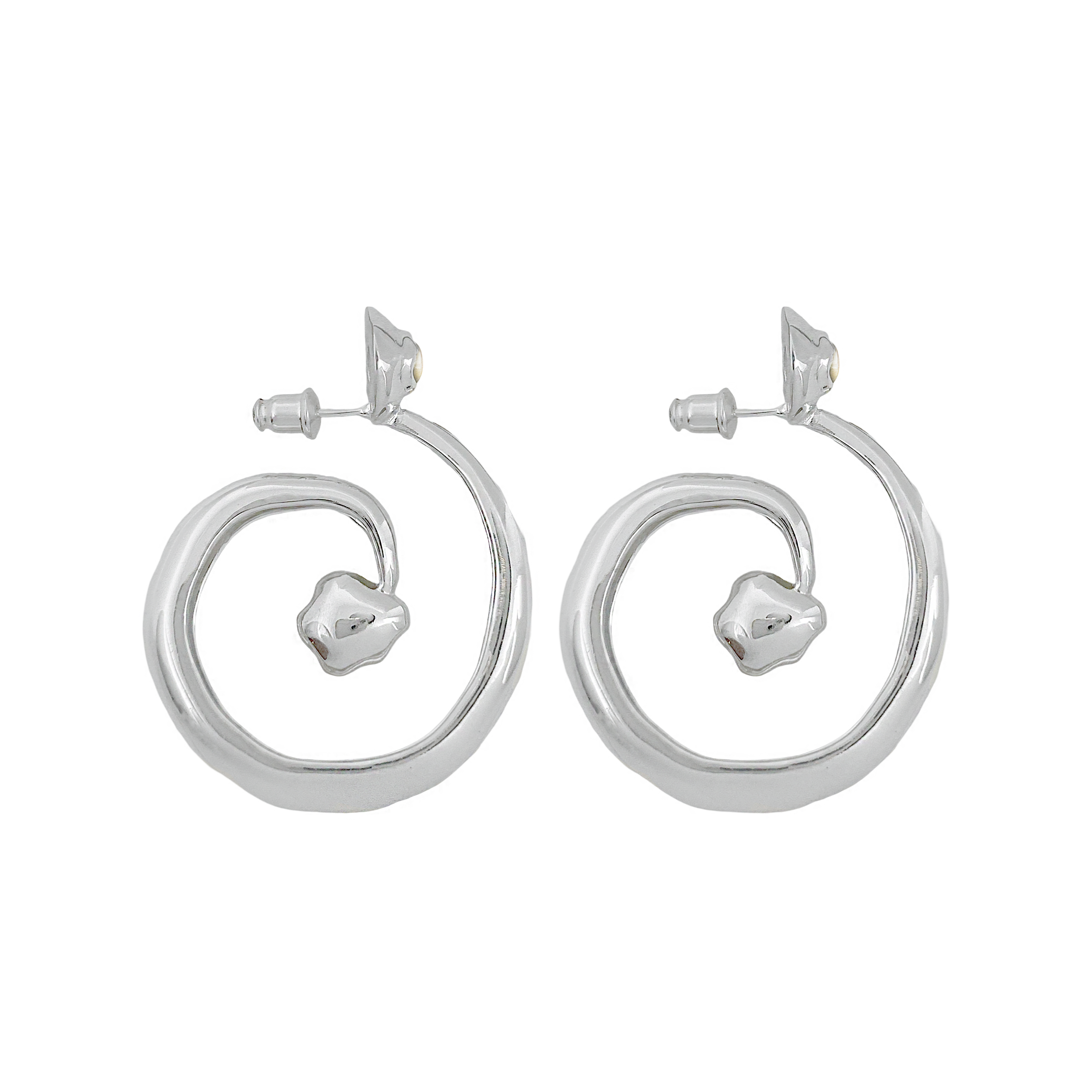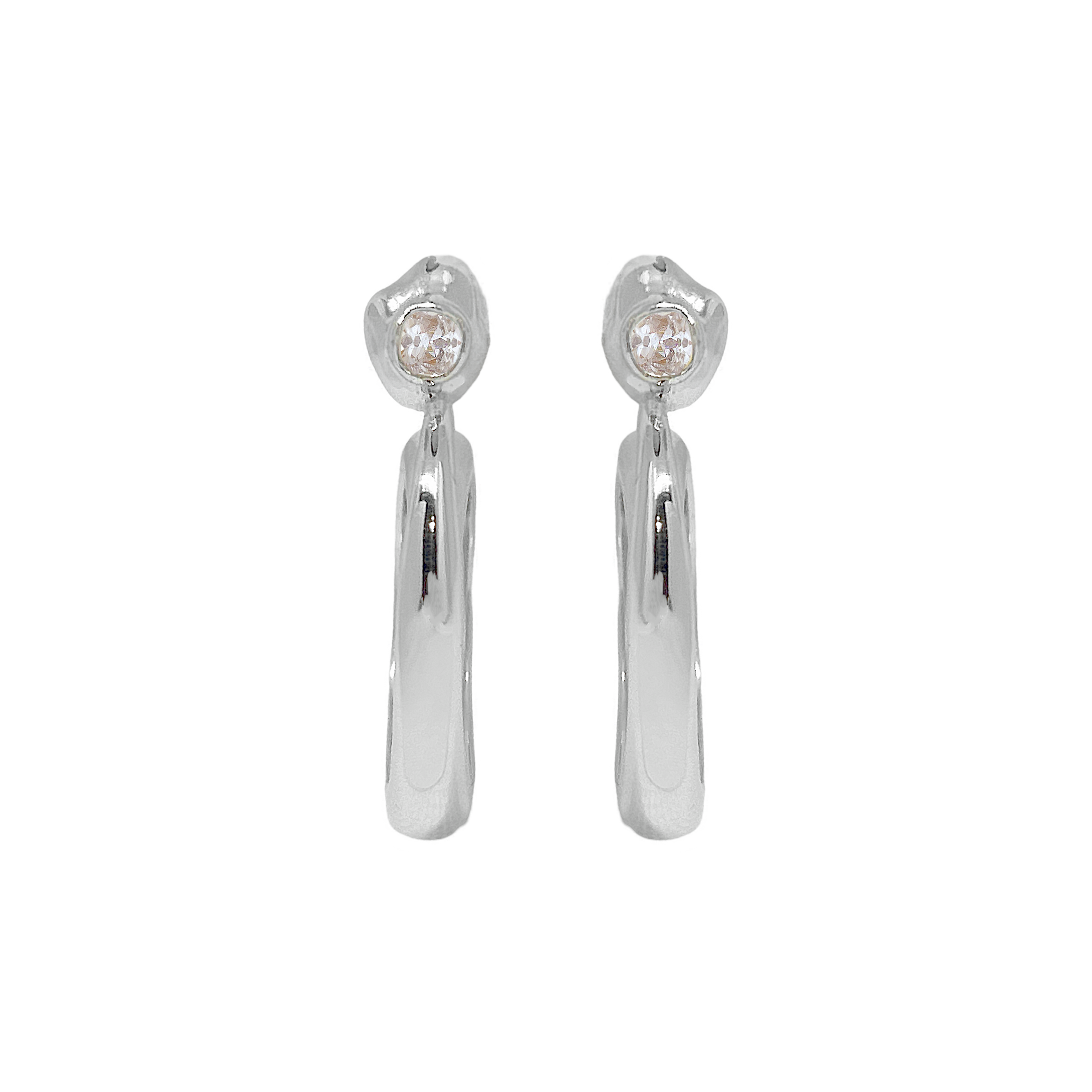 These beauties boast ethereal beauty and earthy grounding, the GAIA Earrings in silver will have you feeling like a sophisticated goddess. Inspired by the beauty of natural stone and the fluidity of water, these chic hoop earrings feature an elegant spiral motif that adds a chic touch to any look, with sparkling faceted white cz stones. A must-have for those who are looking to effortlessly standout.