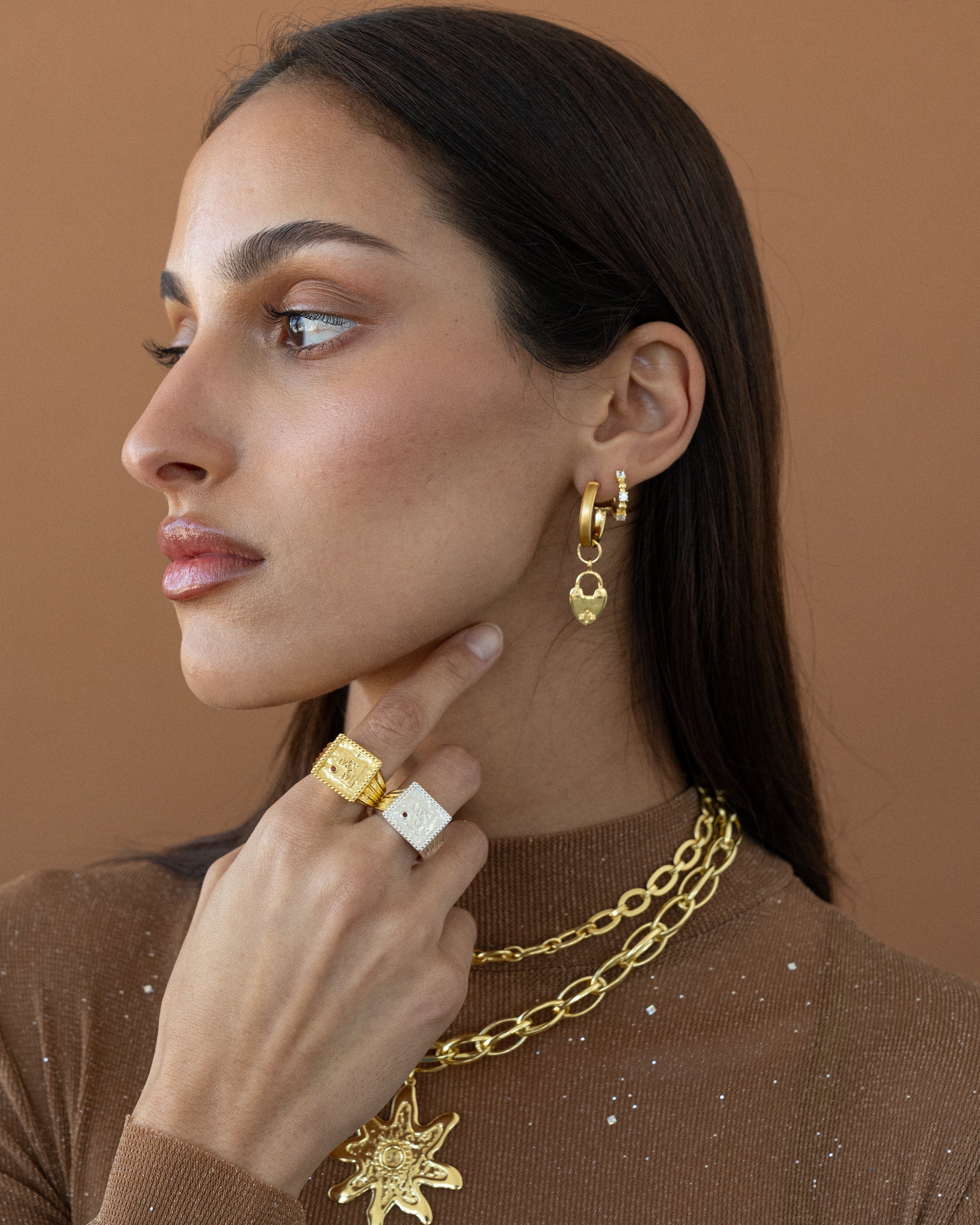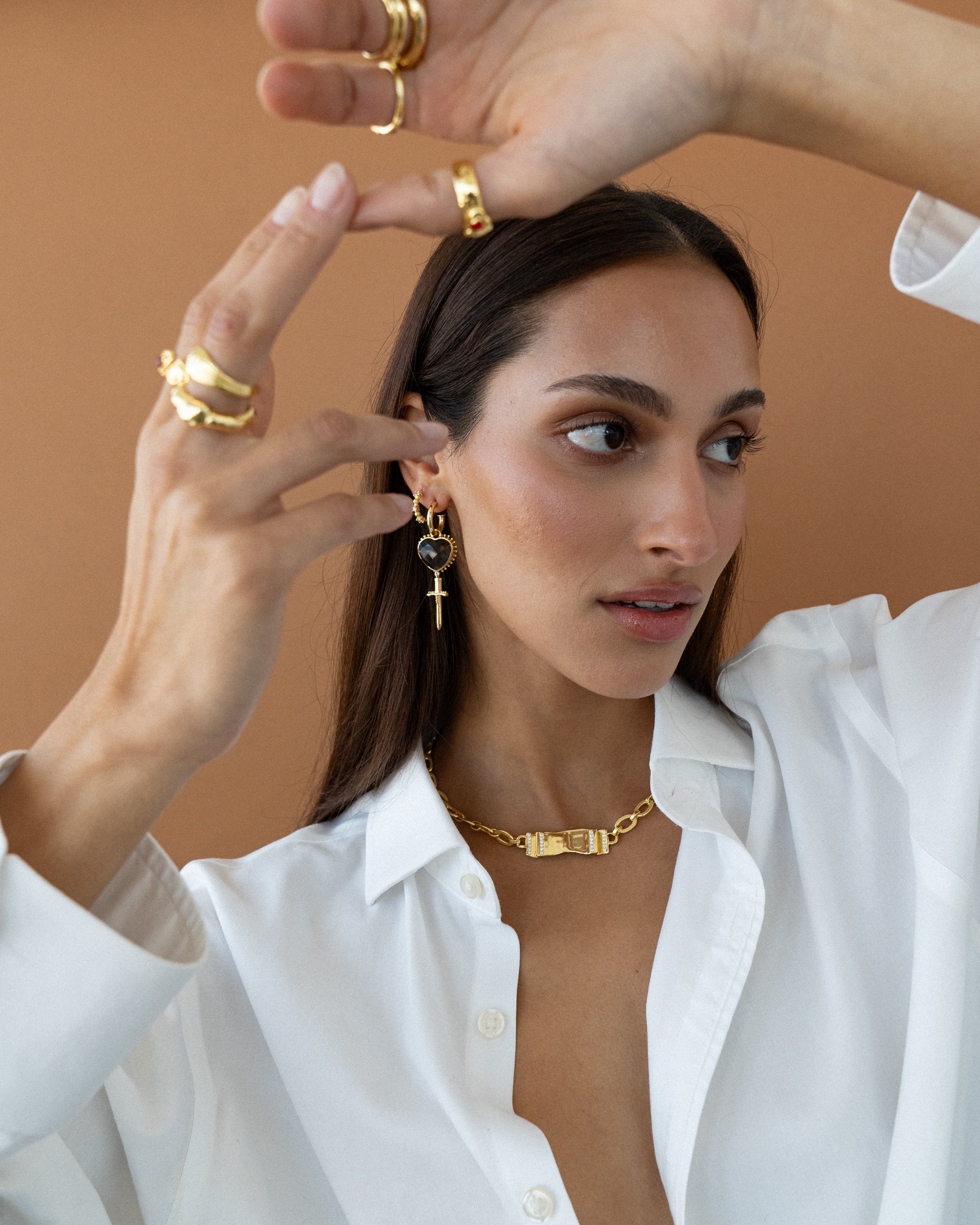 Our are crafted using responsibly sourced Italian brass, chosen for its durability and luxury feel. All pieces are lead and nickel free, ensuring they are gentle on the skin and hypoallergenic.