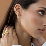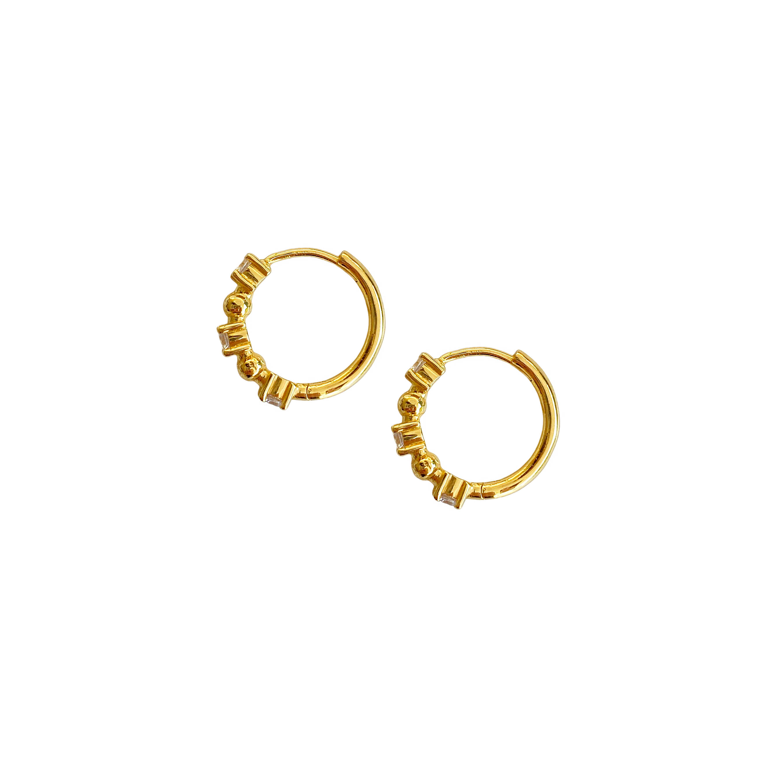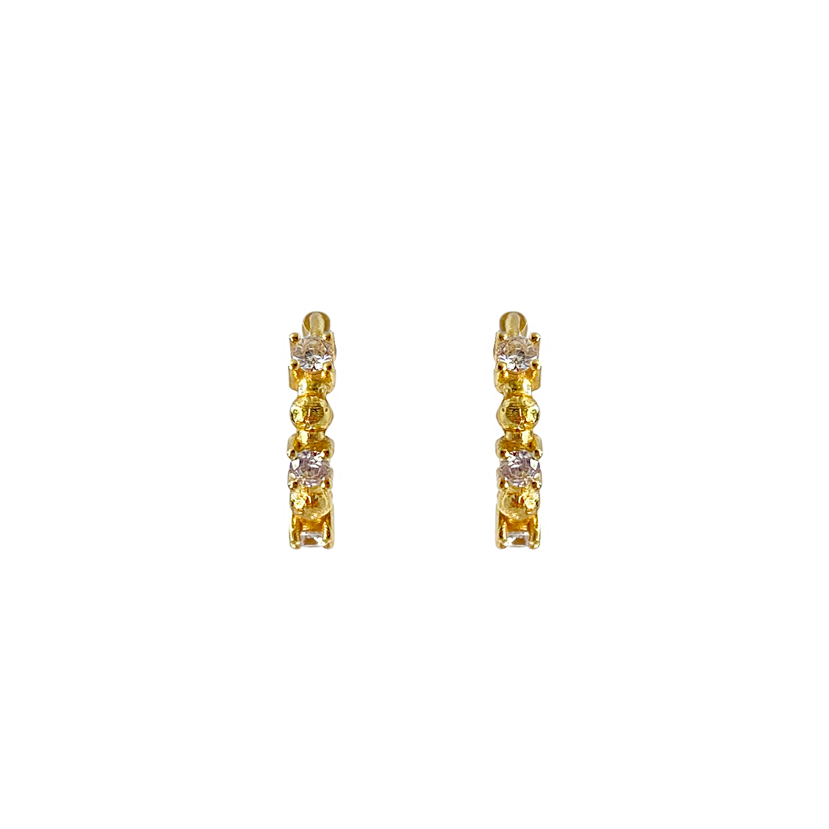 A studded baby hoop that packs a punch. Gia is the gorgeous little huggie you need in your jewellery collection, she's a no brainer! She's cute on her own, the perfect second piercing style, or a way to layer up hoops from big to small scaling up the ear lobe. Inset with sparkling CZ stones along a high polish huggie hoop, Gia proves that good things really do come in small packages.