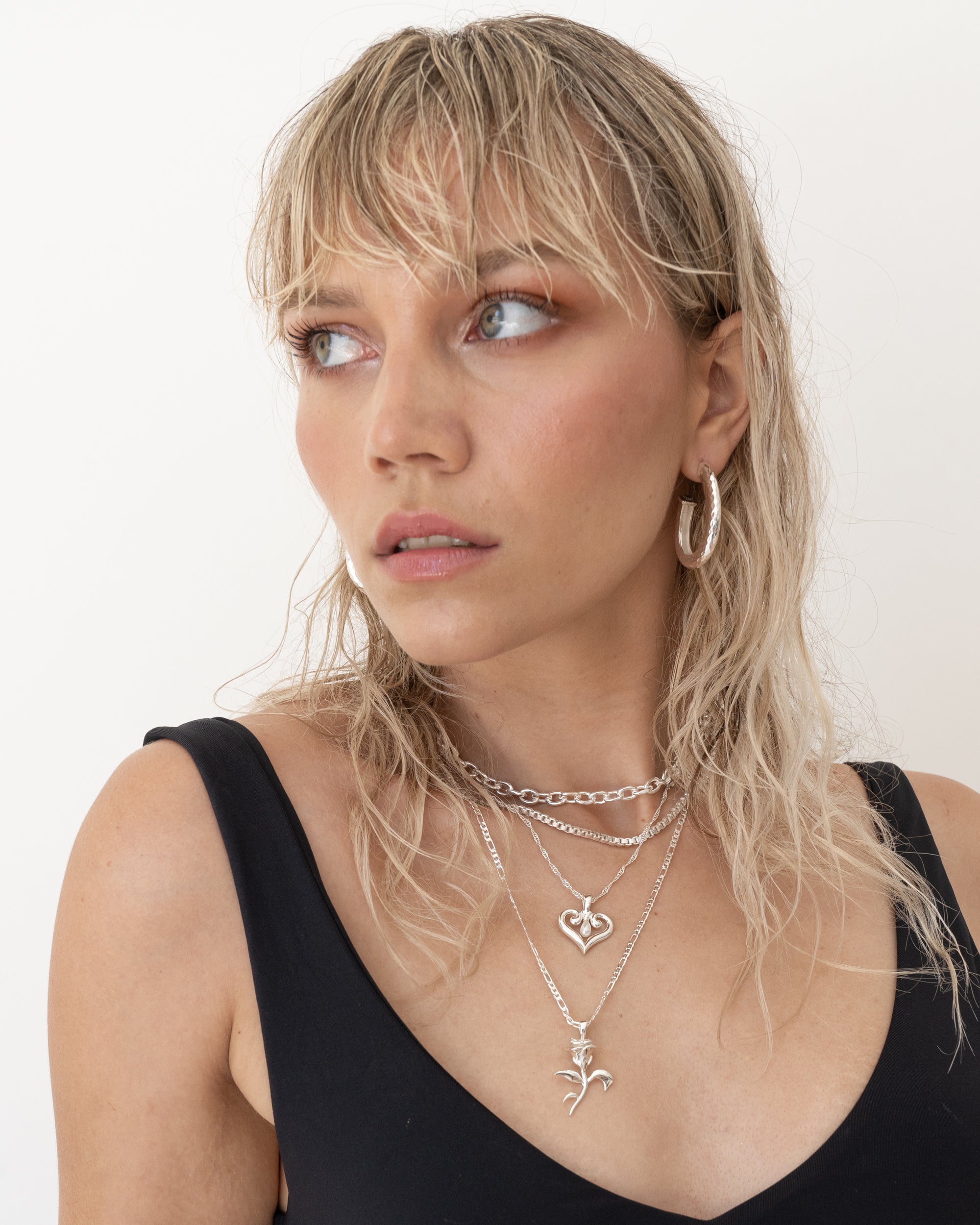 Everything you need to complete your perfect look is right here in the Isabella Necklace! With its unique heart motif, pearl detail, and twisted silver chain, this necklace is timeless and perfect for layering. Get ready to dazzle in Isabella!