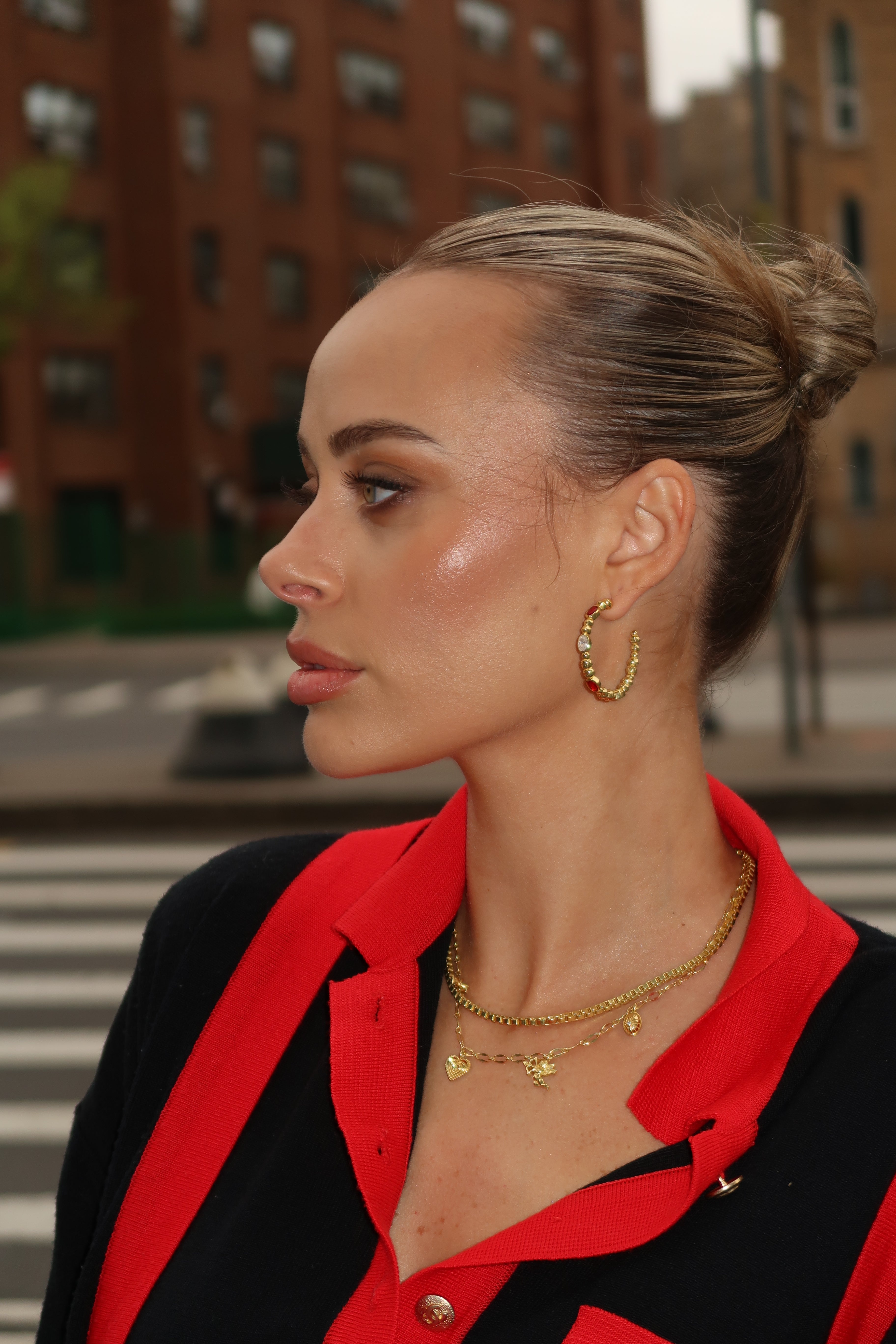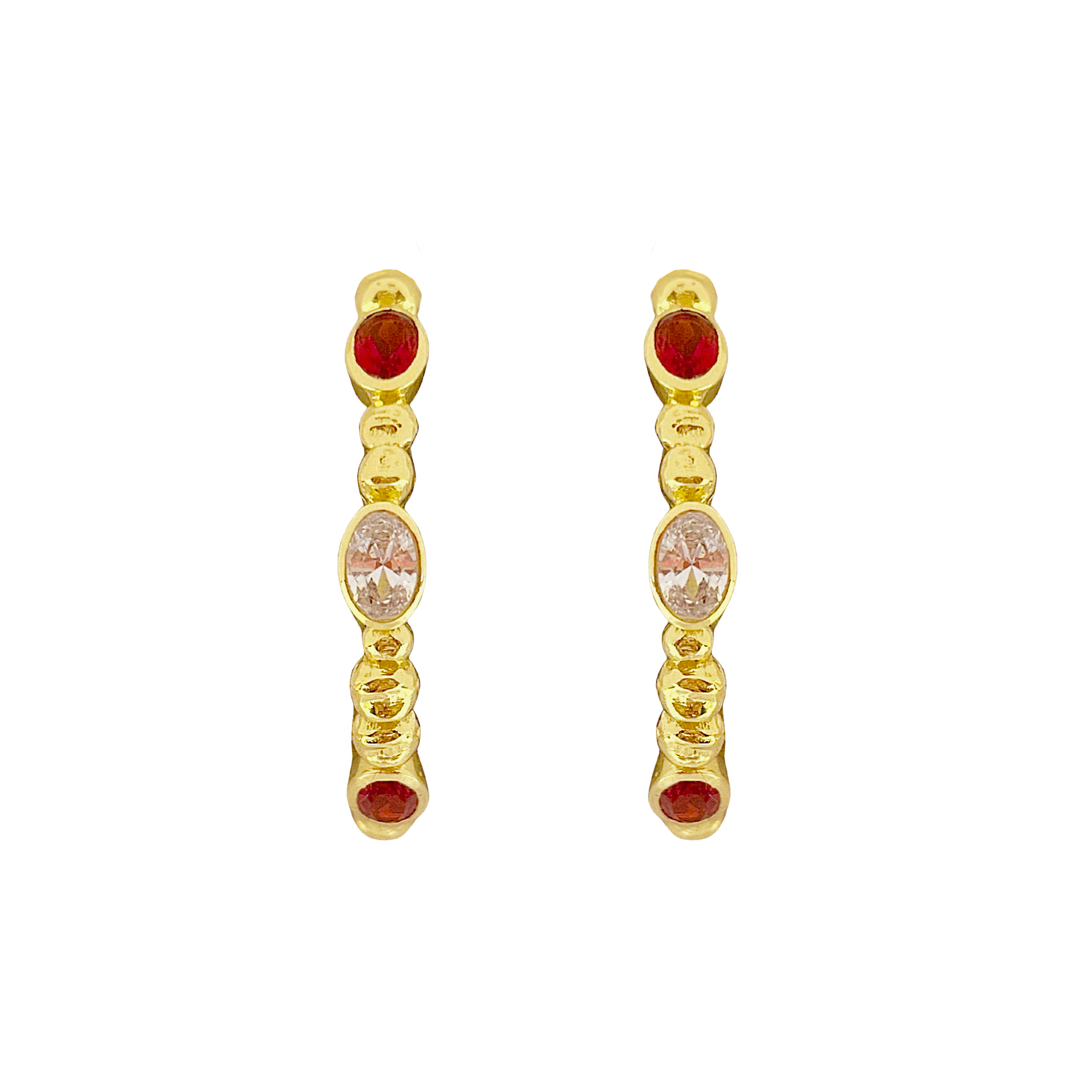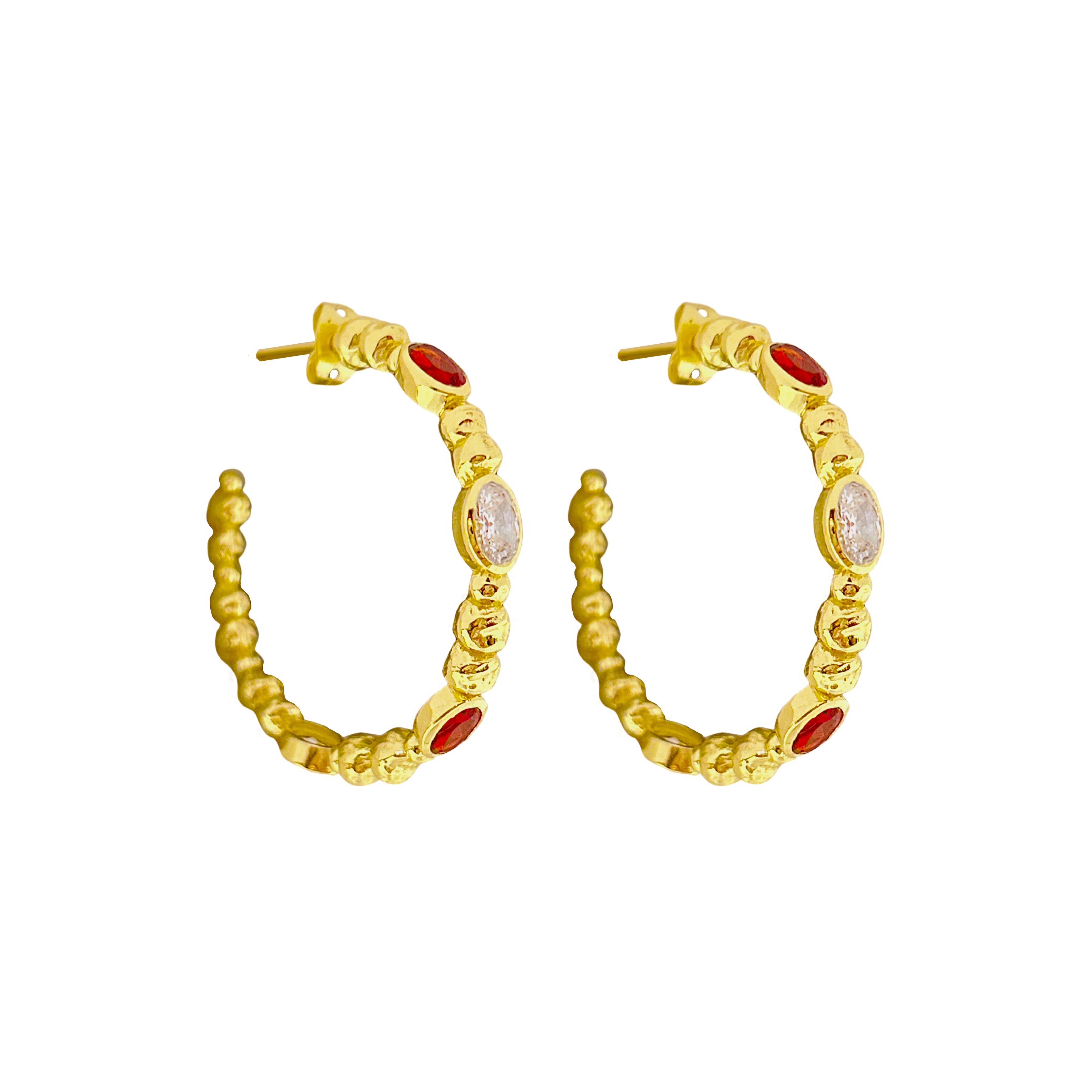 Hello Lex! She’s sexy and sweet and you should know she’ll be sure to add a little sparkle to any look. The Lex earrings are a hoop style featuring ball work and a hammered finish. Deep red stones set along side dazzling WHITE CZ, she’s all about balance. Inspired by hot summers in the city, we’re obsessed and CAN NOT take her off! She's a need for your collection...