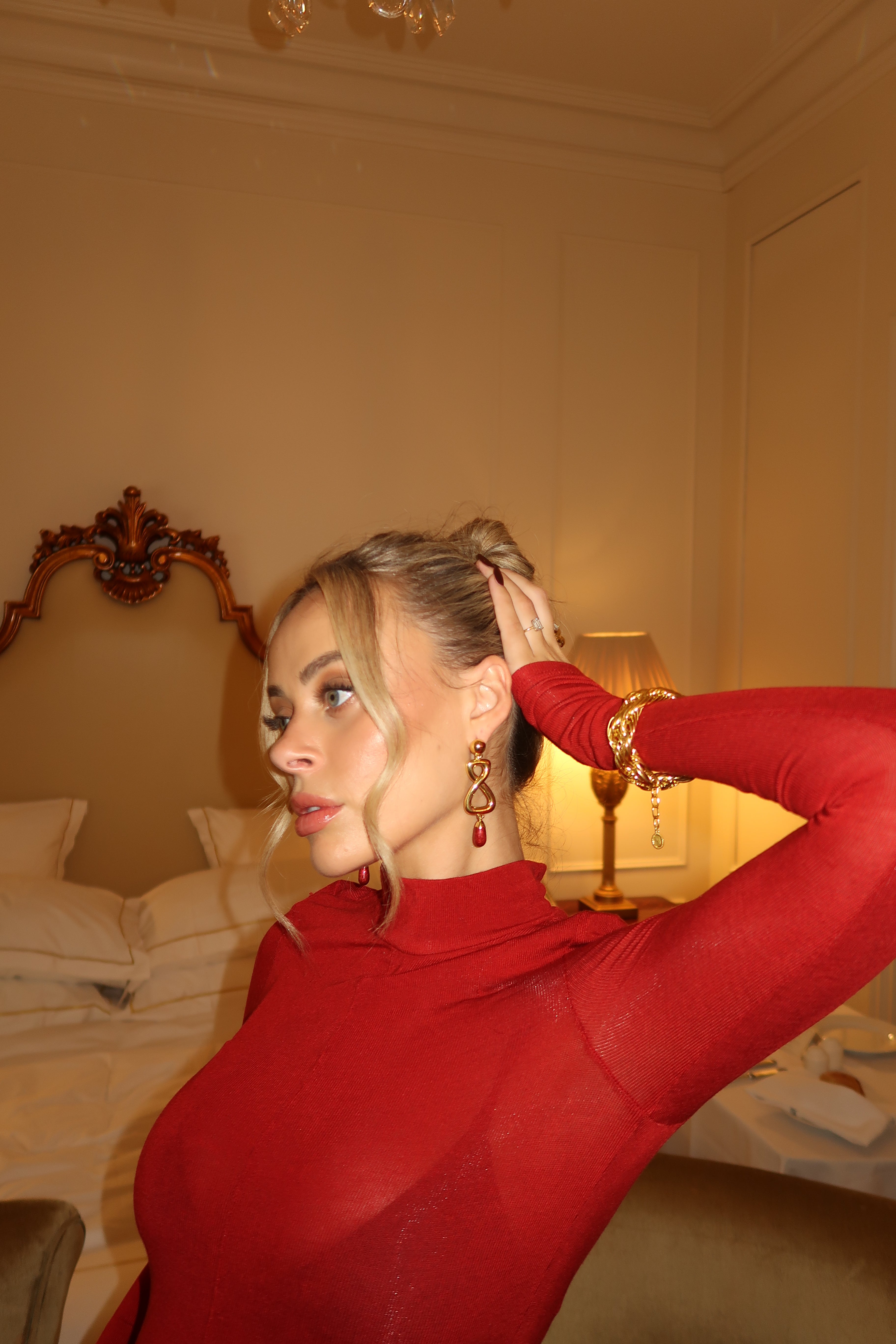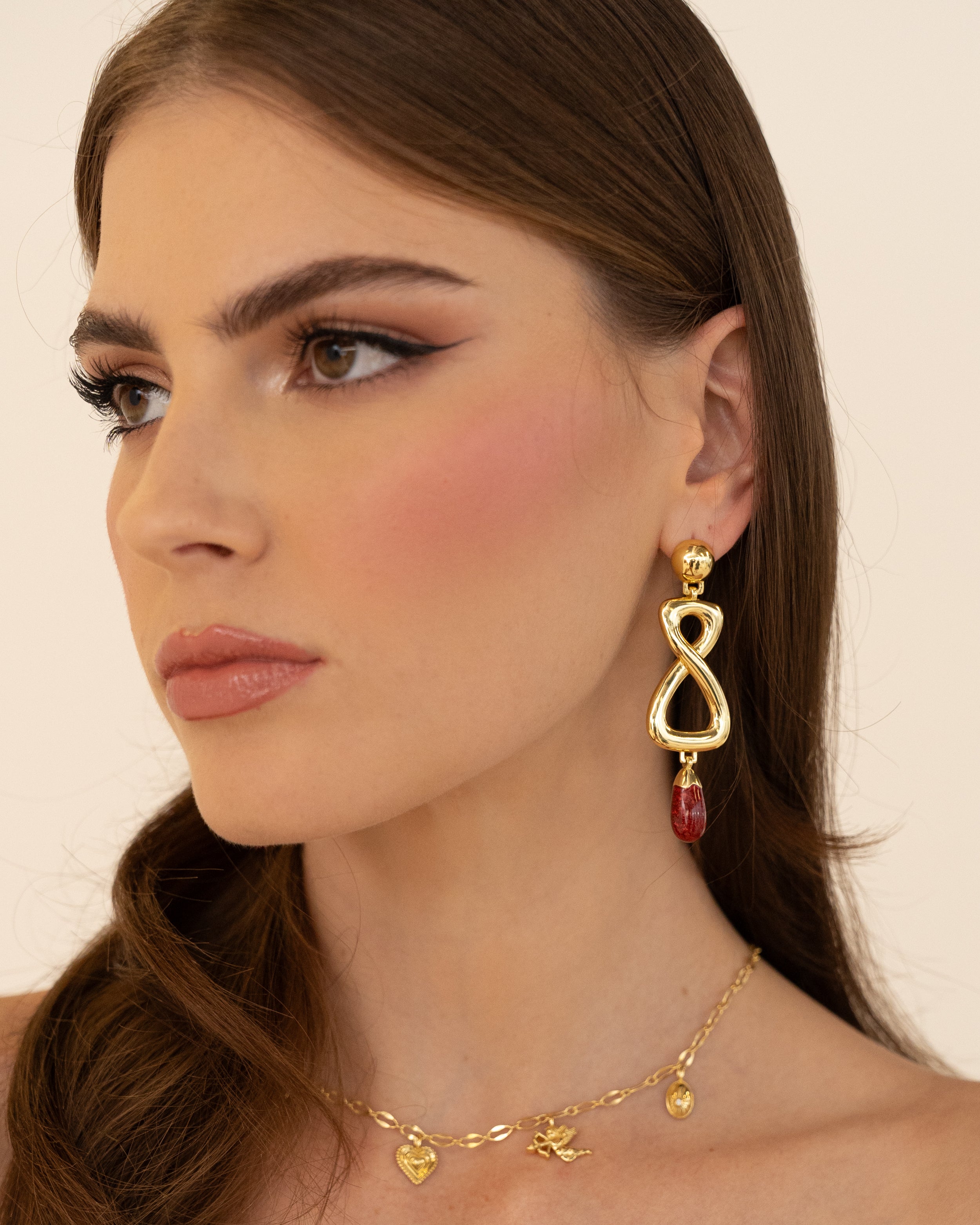 She’s a perfect blend of chic elegance and a touch of cool… Meet the MANHATTAN Earrings. The timeless golden infinity motif and striking red pearlescent drops make these earrings the jewels of the season. Inspired by the romance of our favourite city, the Manhattan Earrings effortlessly transition from day to night, she will add a touch of sophistication to any outfit.