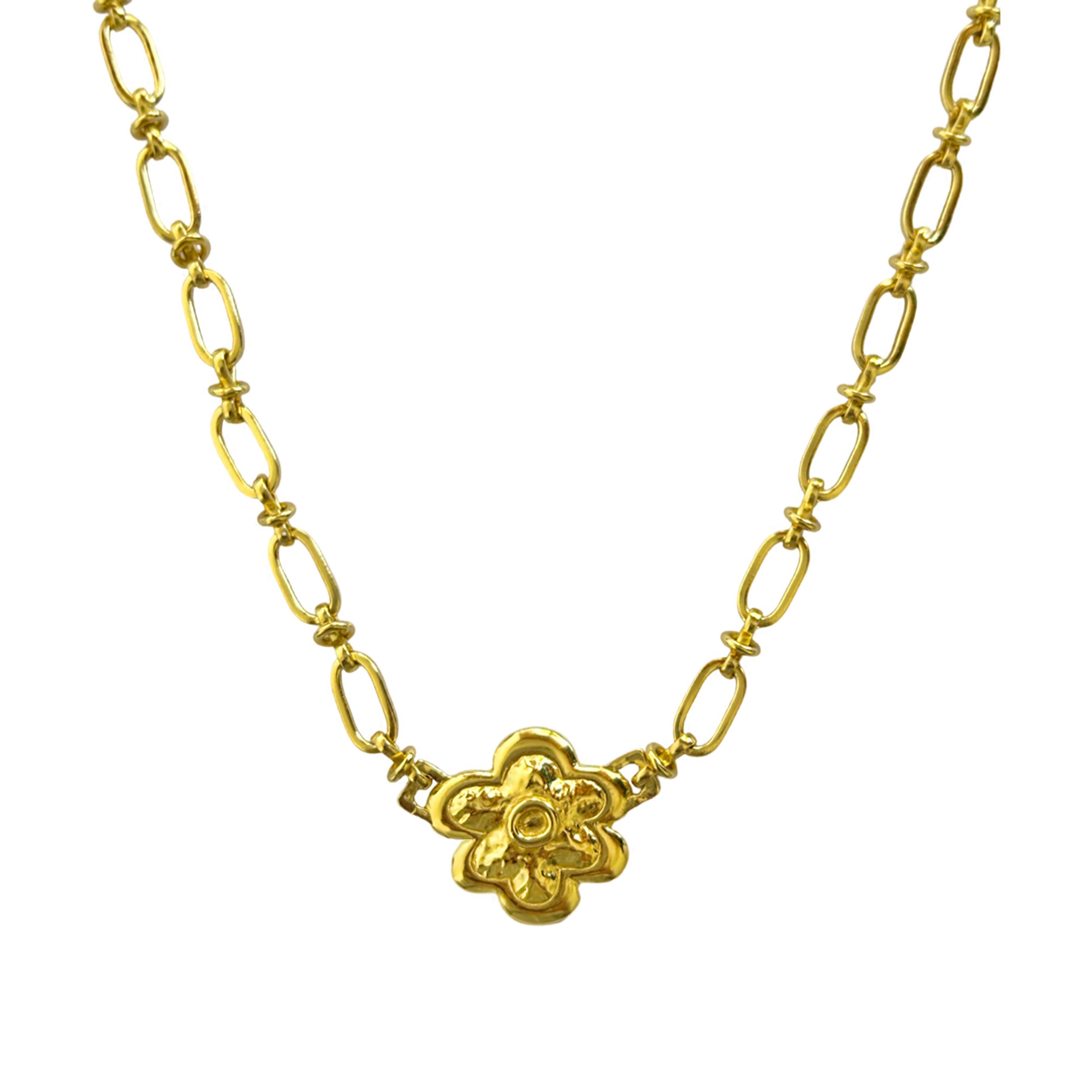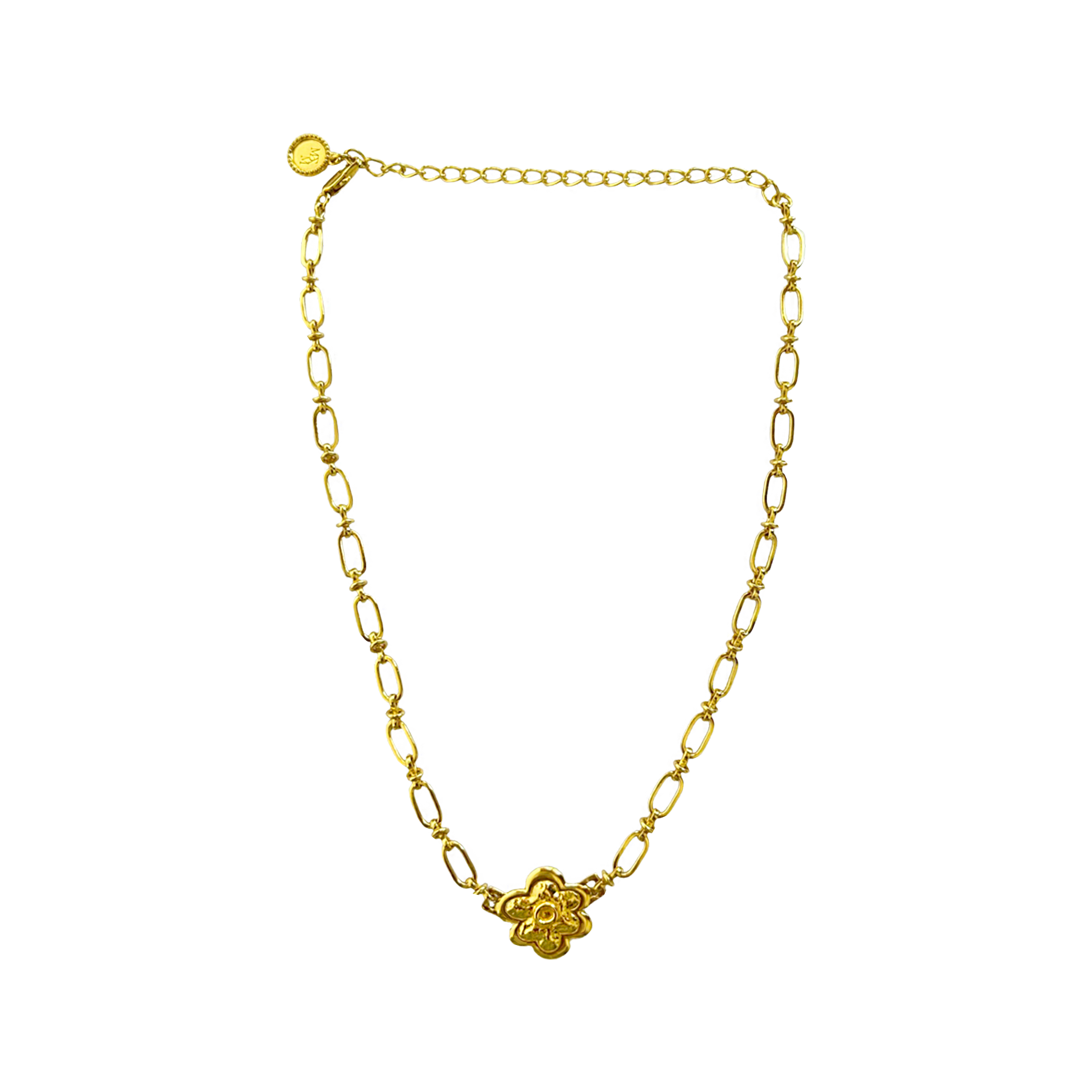 The most gorgeous little statement chain has arrived and you're going to adore Sofia. Wear her as a choker, or sitting pretty at the nape of the neck, this flower embellished chain is going to look so perfect layered with other necklaces or equally as fabulous on its own making a delicate but defined golden moment. Our personal favourite look is to layer 2-3 Sofia necklaces together at slightly different lengths for an iconic statement.