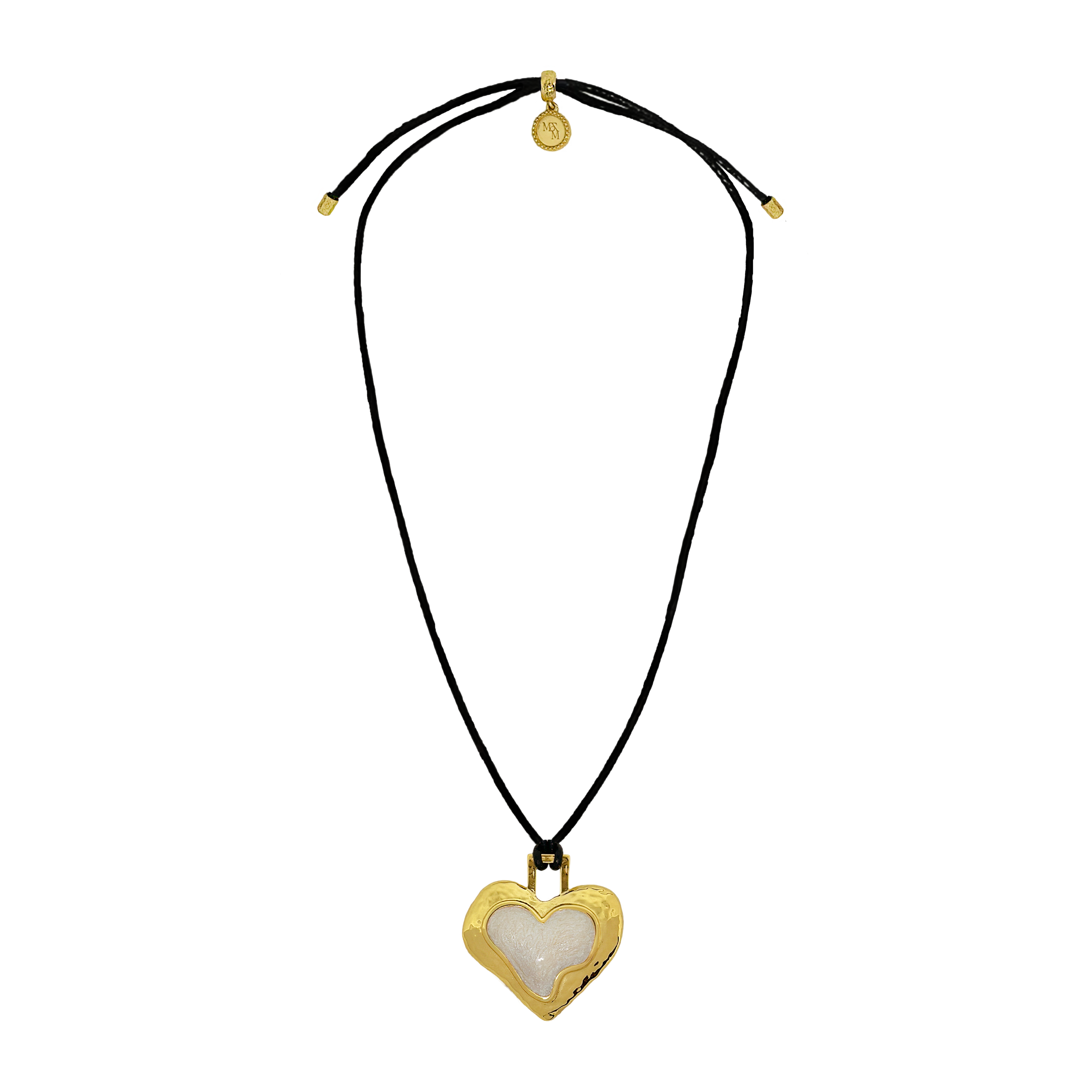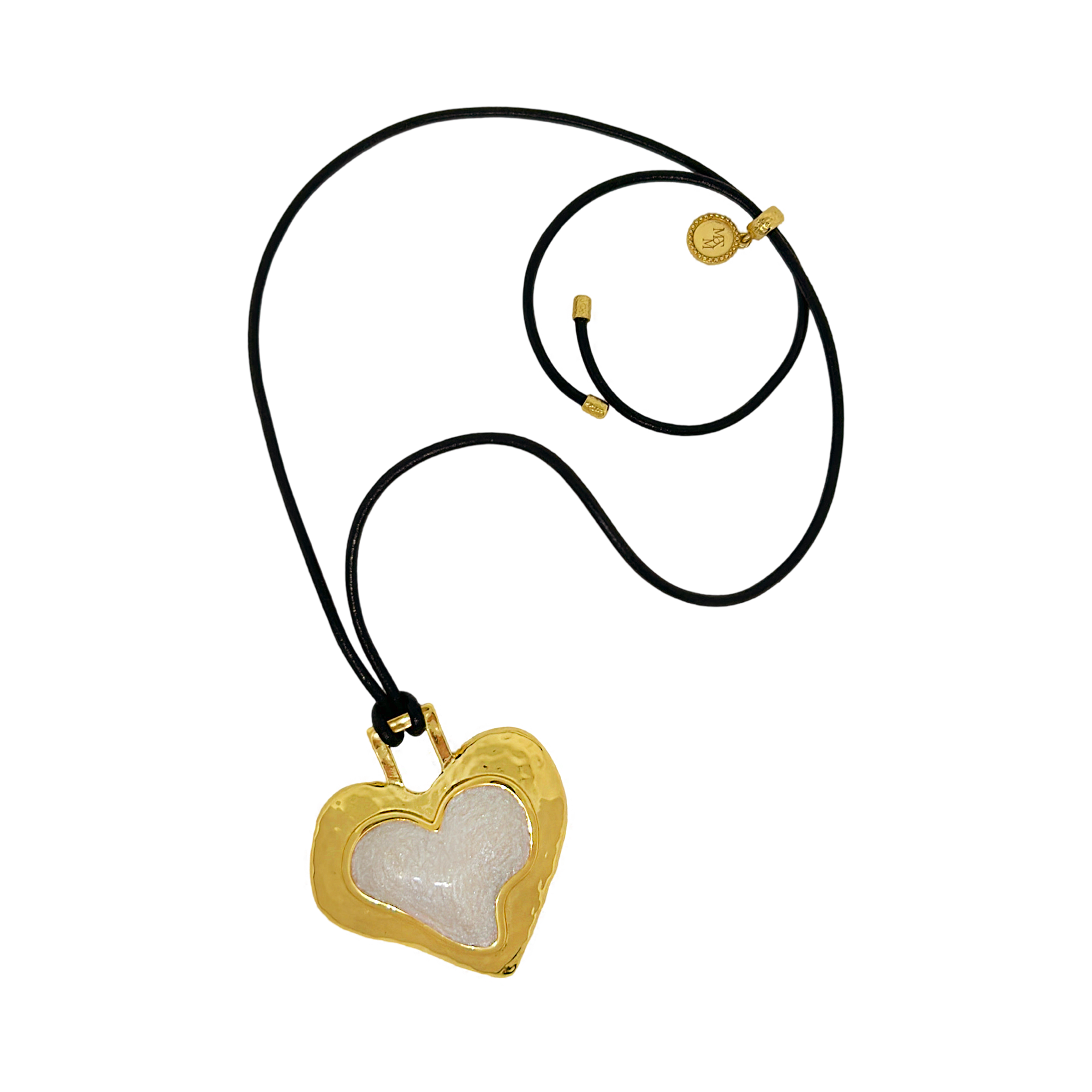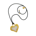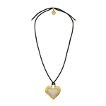 Bold, nostalgic, and steeped in symbolism, the Olympia Necklace reimagines a '90s classic through the lens of Greek antiquity. Featuring a heart-shaped pendant in molten gold and pearlescent enamel, suspended from a sleek black leather cord, Olympia strikes the perfect balance between retro edge and timeless romance.