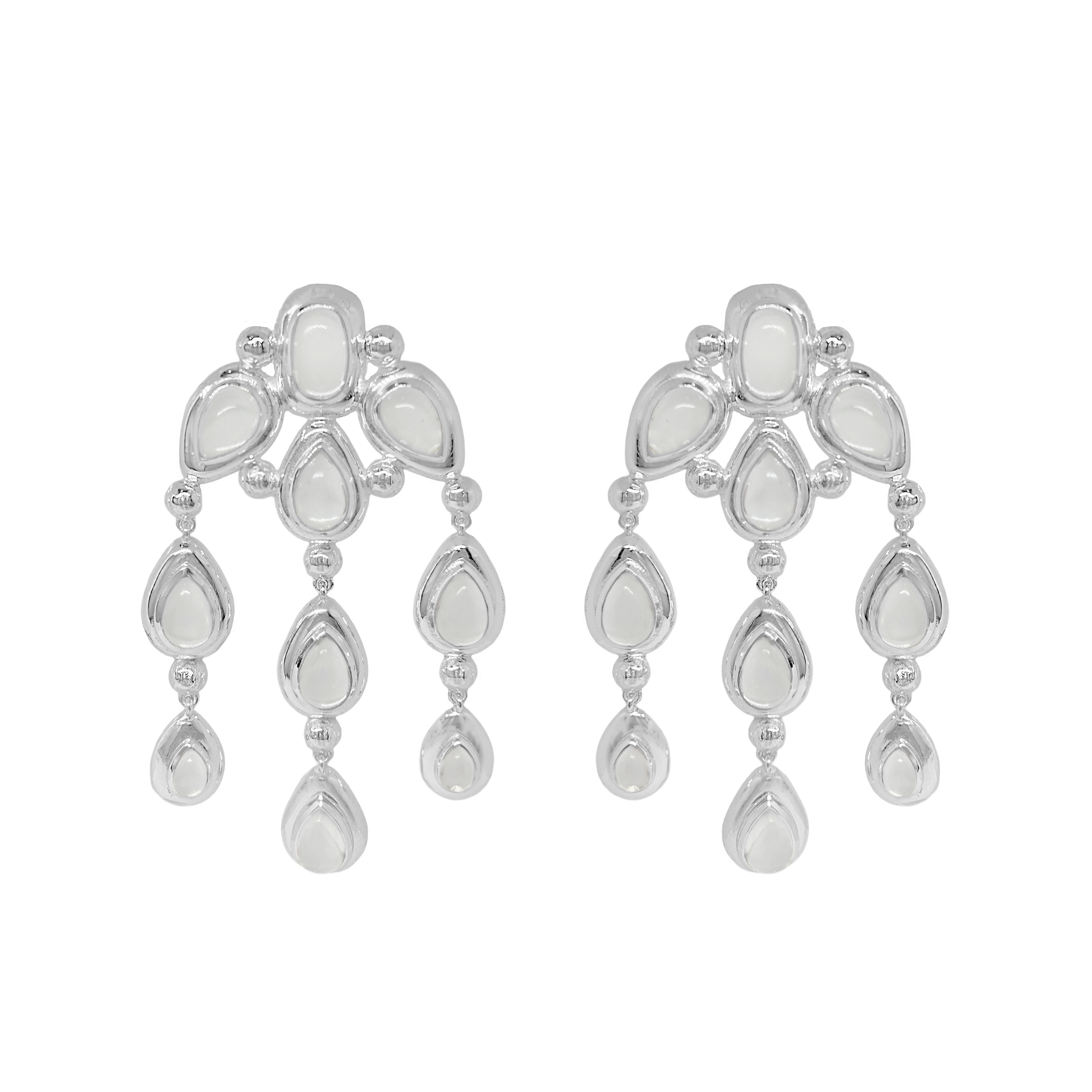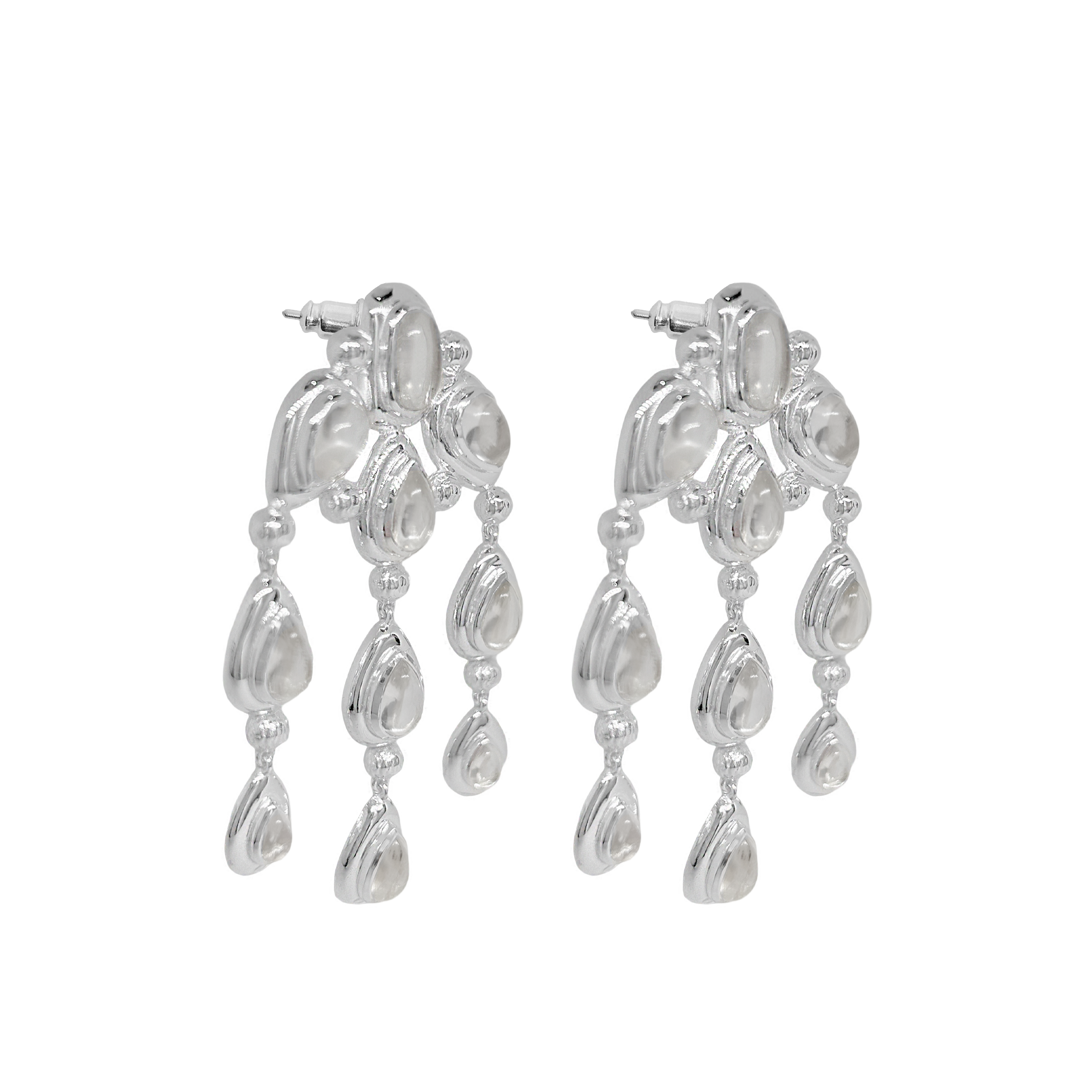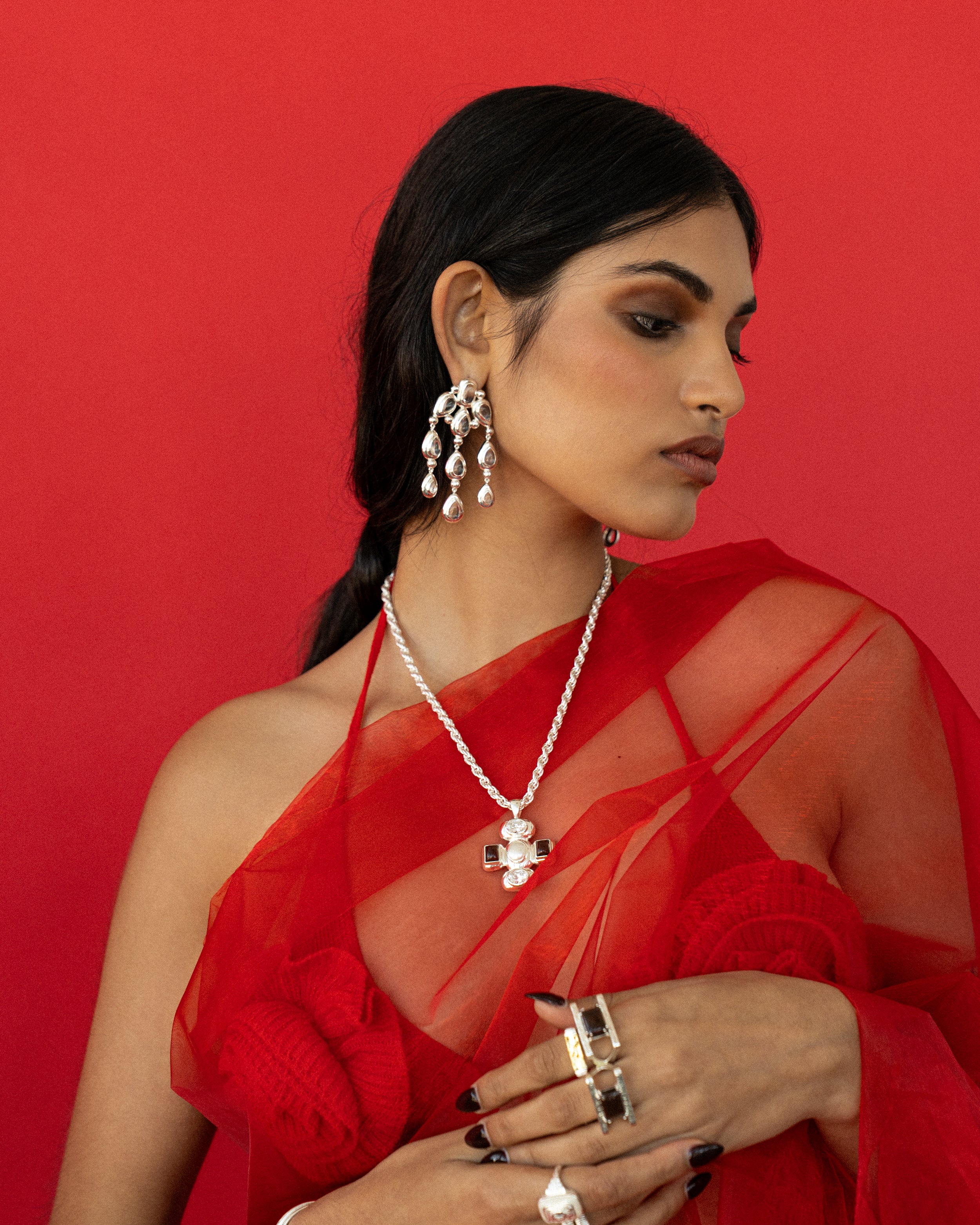 A tribute to timeless beauty, the Rani Earrings channel the elegance of India’s artistic legacy. With a fluid chandelier silhouette and high-polish silver finish, they shimmer with Crystal Quartz gemstones that catch the light from every angle. Bold and contemporary, they’re a luminous expression of heritage reimagined for the modern woman.