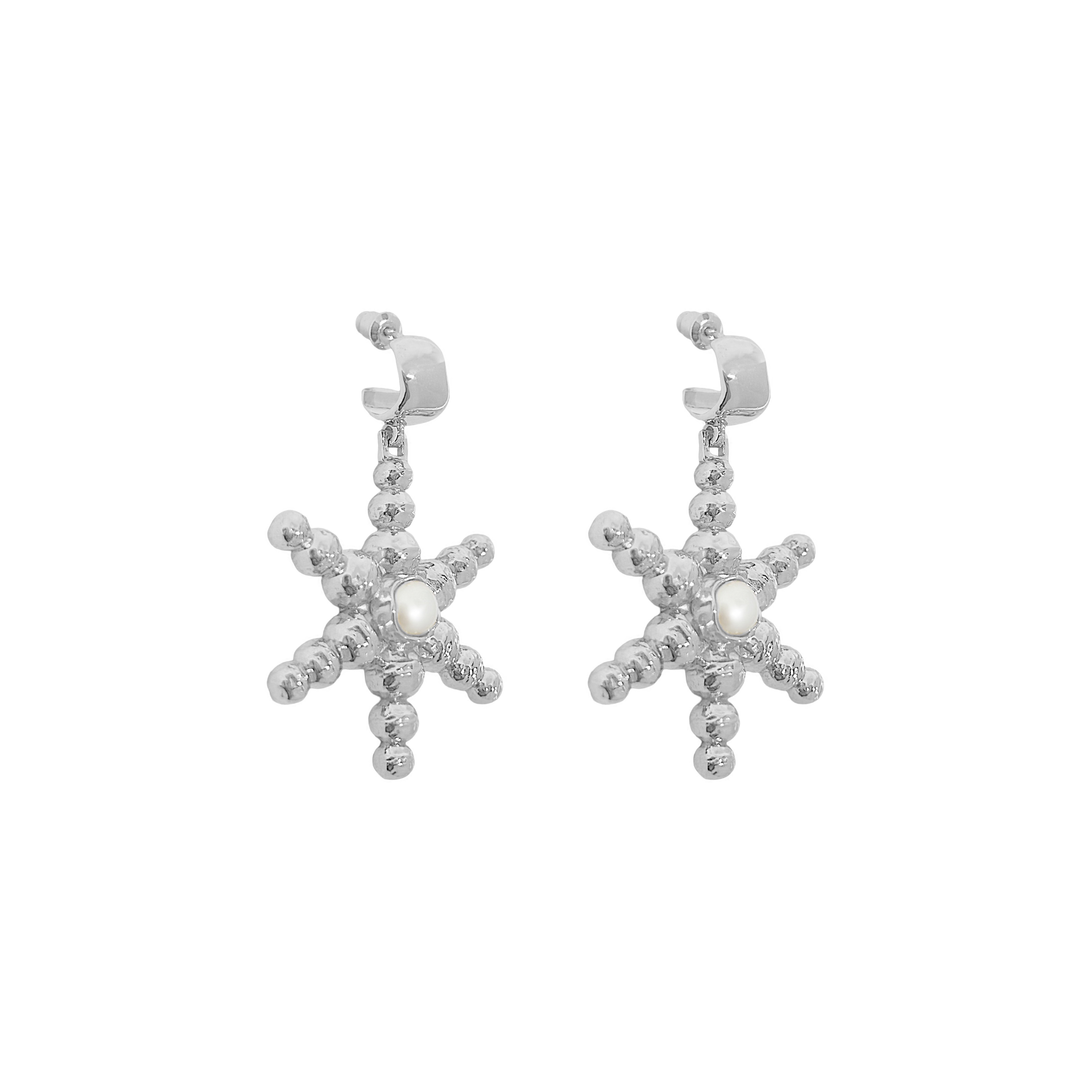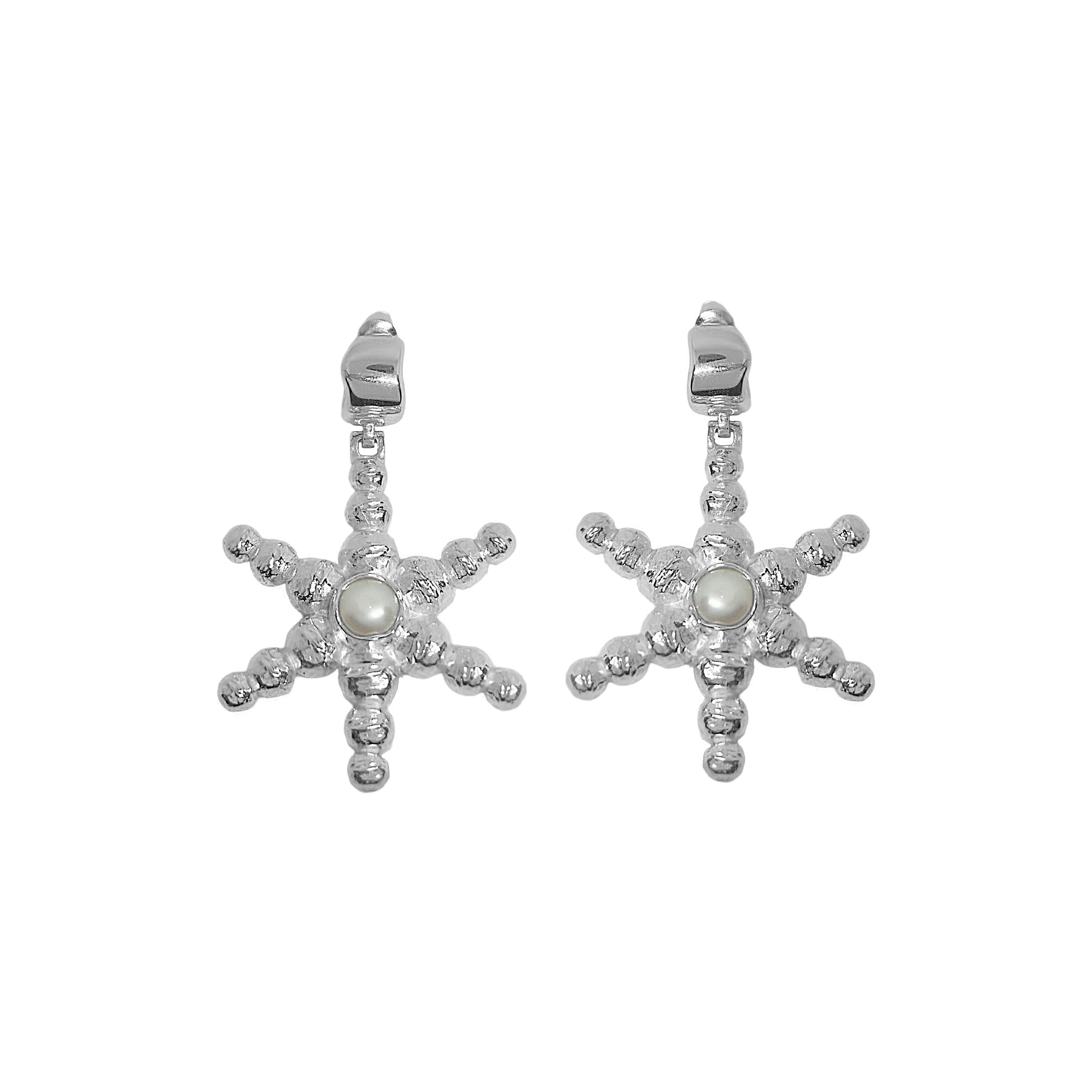 Celestial and serene, the Thea Earrings named after the Greek goddess of light, are a tribute to the guiding stars that lead us back to the sea. Sculpted into a radiant star shape and anchored with a luminous freshwater pearl at the center, these earrings blend mythology and minimalism in a way that feels both timeless and striking.