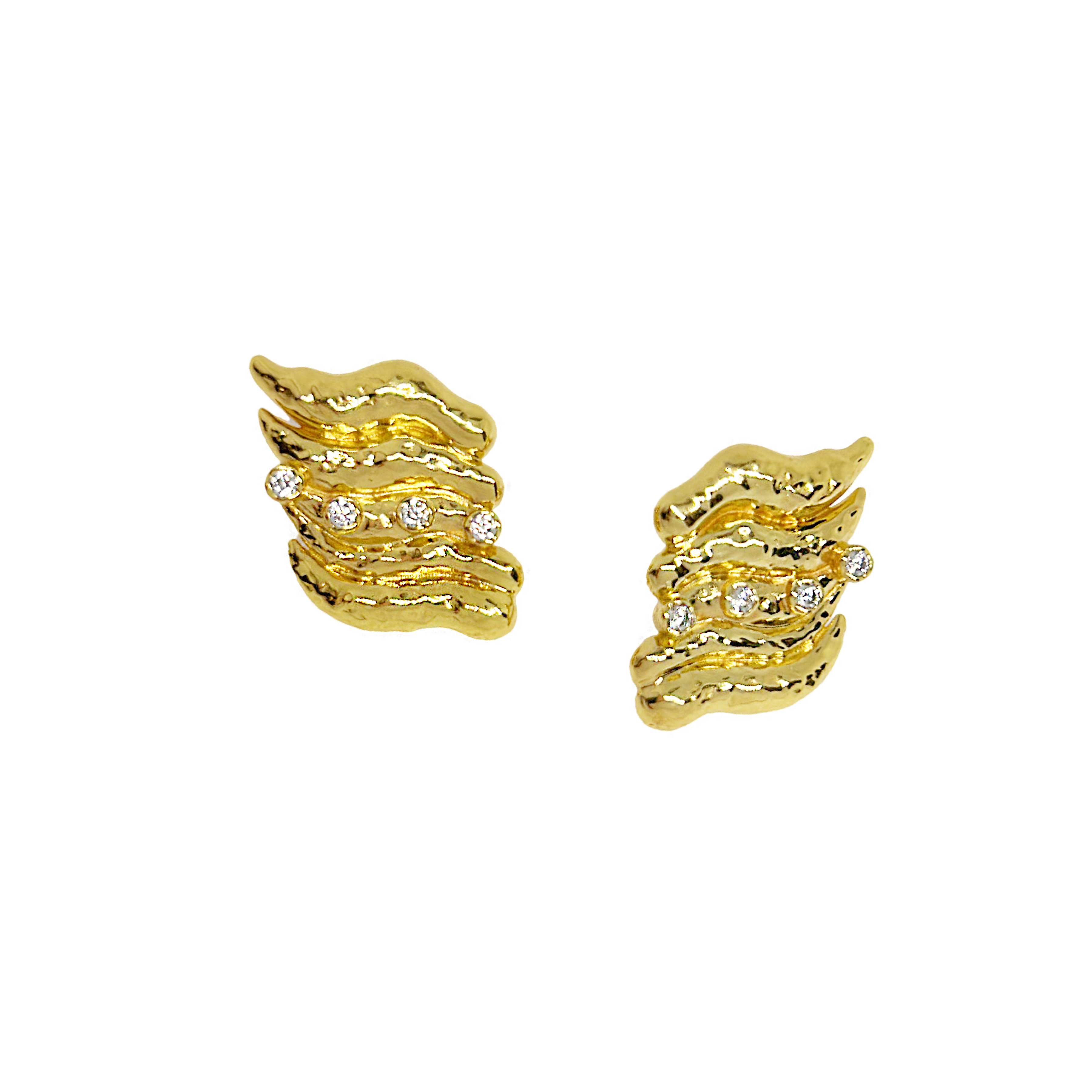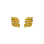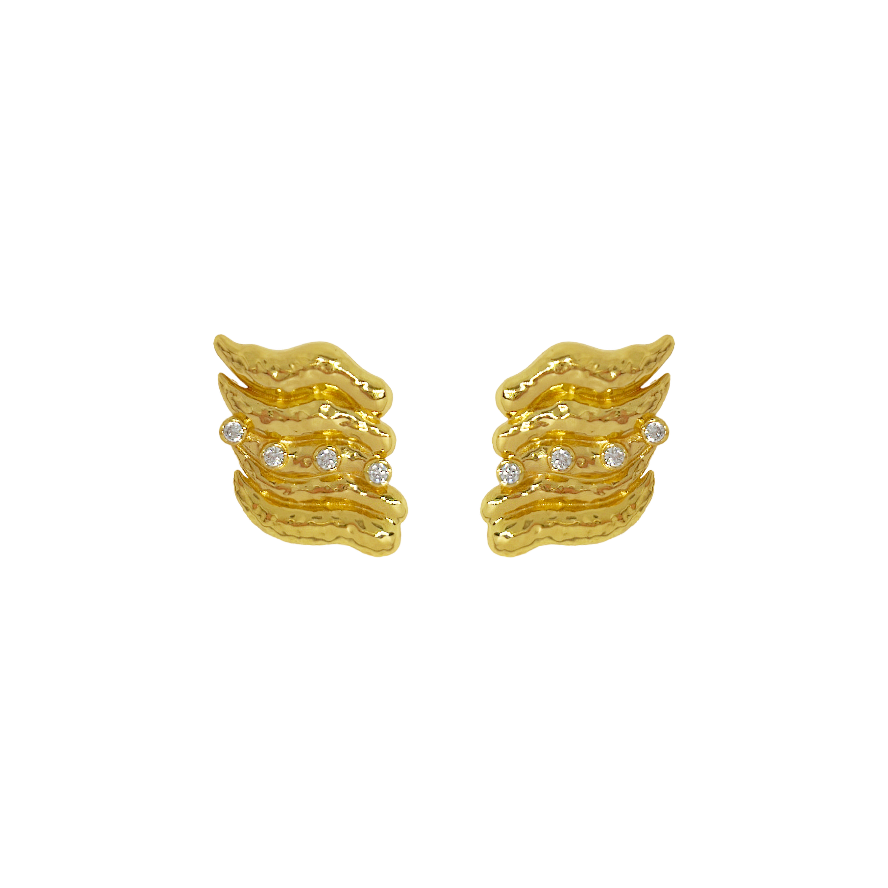 Part of our Sirens Collection, the Demi Earrings draw from the shared beauty of Greek heritage—where wings symbolize both protection and transformation. The textured molten gold finish echoes timeworn ruins glowing under the Mediterranean sun, while the subtle sparkle of CZ stones catches the light like seafoam under moonlight.