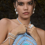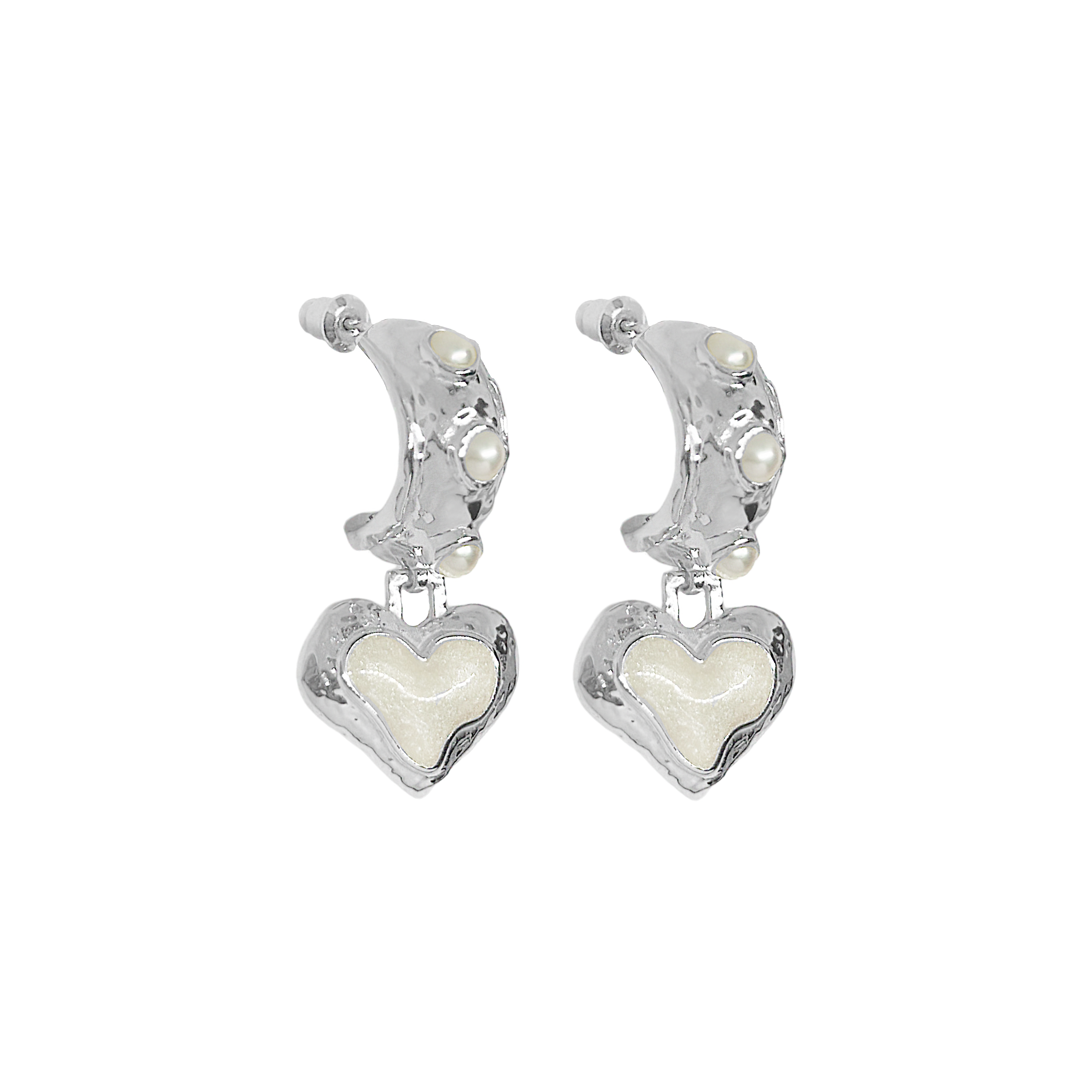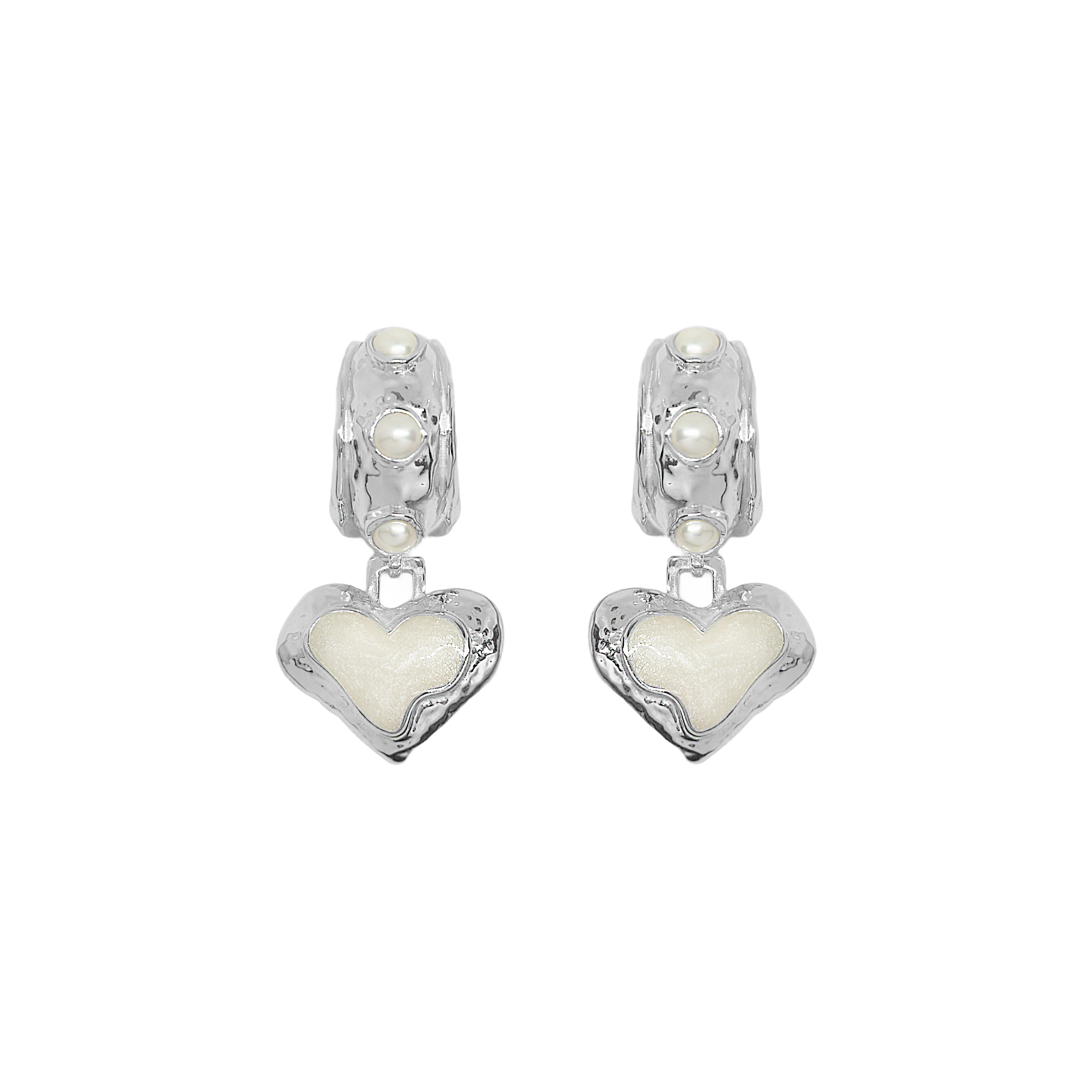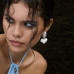 Timeless with a modern edge, the Elena Earrings in silver are a heart-shaped ode to the sunlit serenity of the Mediterranean. Crafted in radiant silver with hand-set freshwater pearls and pearlescent enamel detailing, they reflect the soft glow of sea and sky with every turn.
