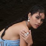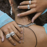Evoking the spirit of ancient tokens passed through generations, the Nika Ring carries personal meaning in every detail. The silver-tone finish brings a cool, lunar energy, while the organic textures and engraved icons speak to myth, memory, and modern femininity.