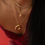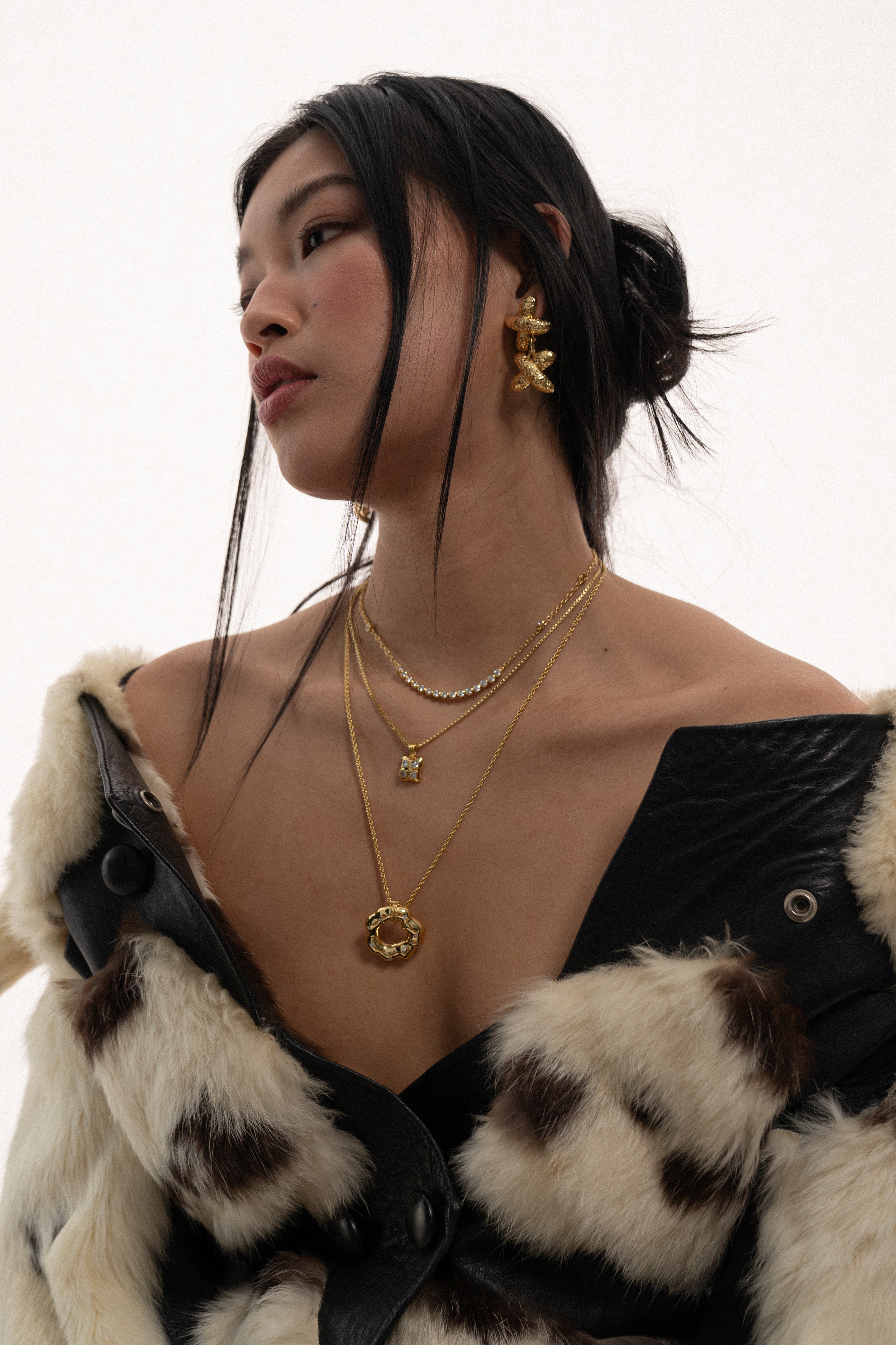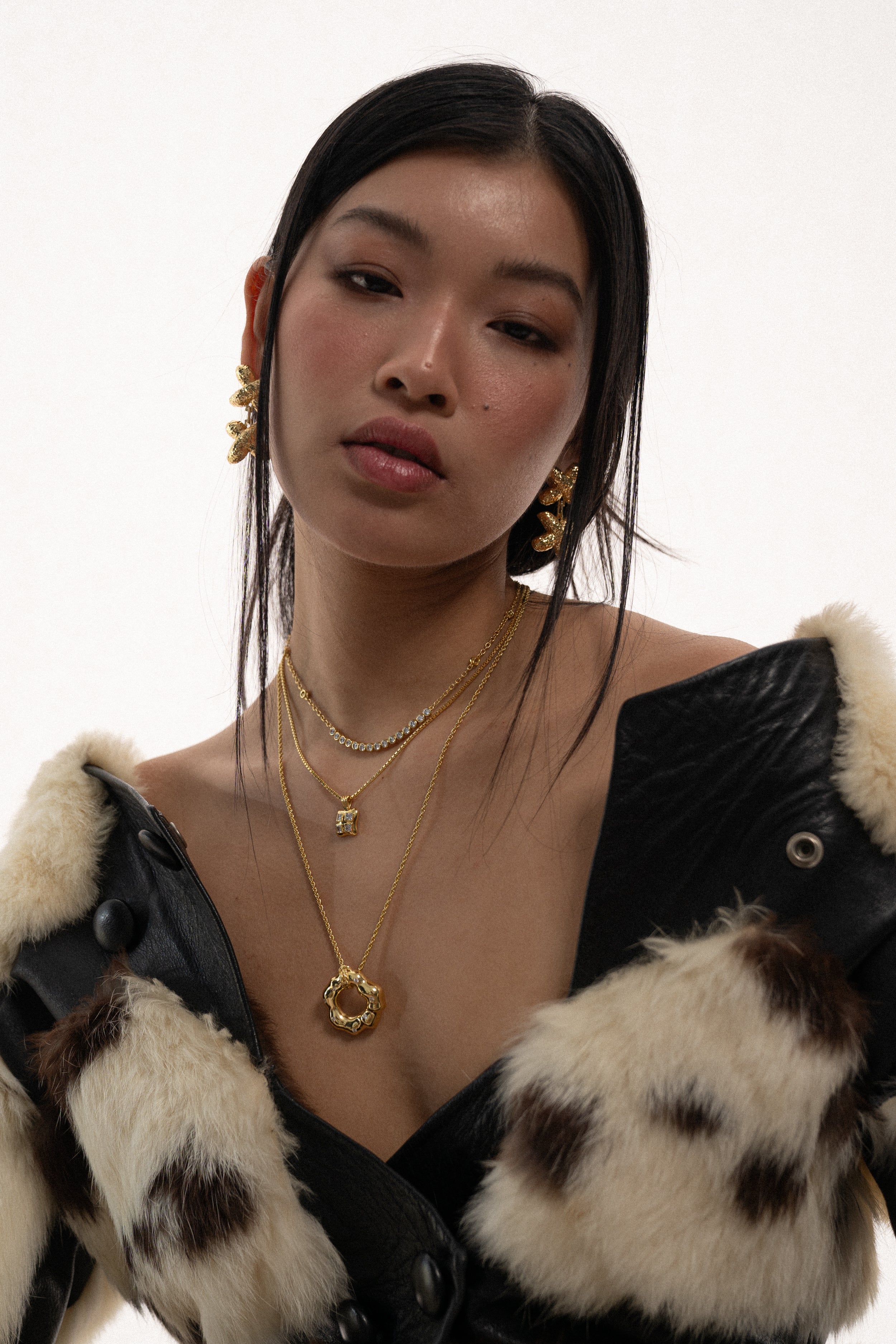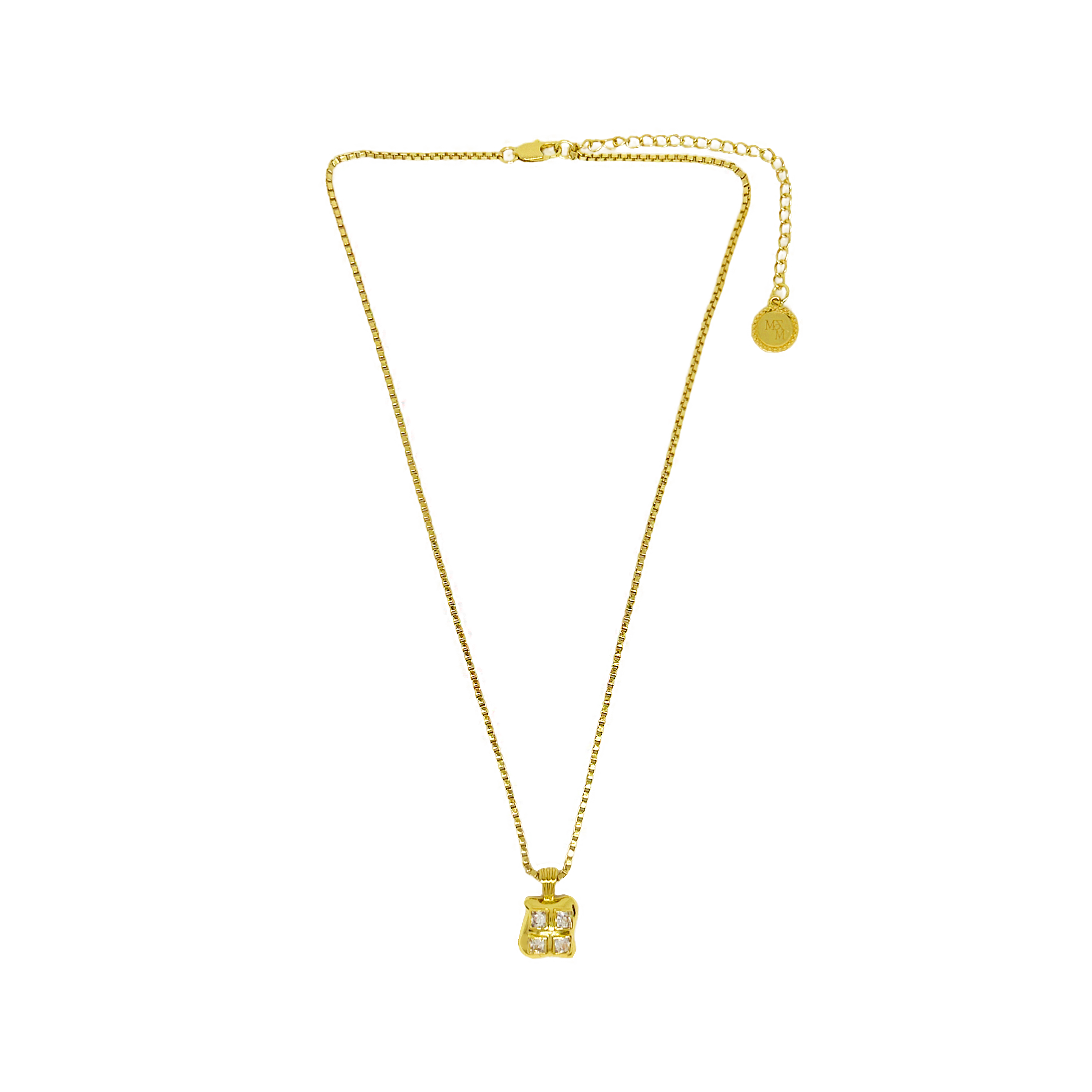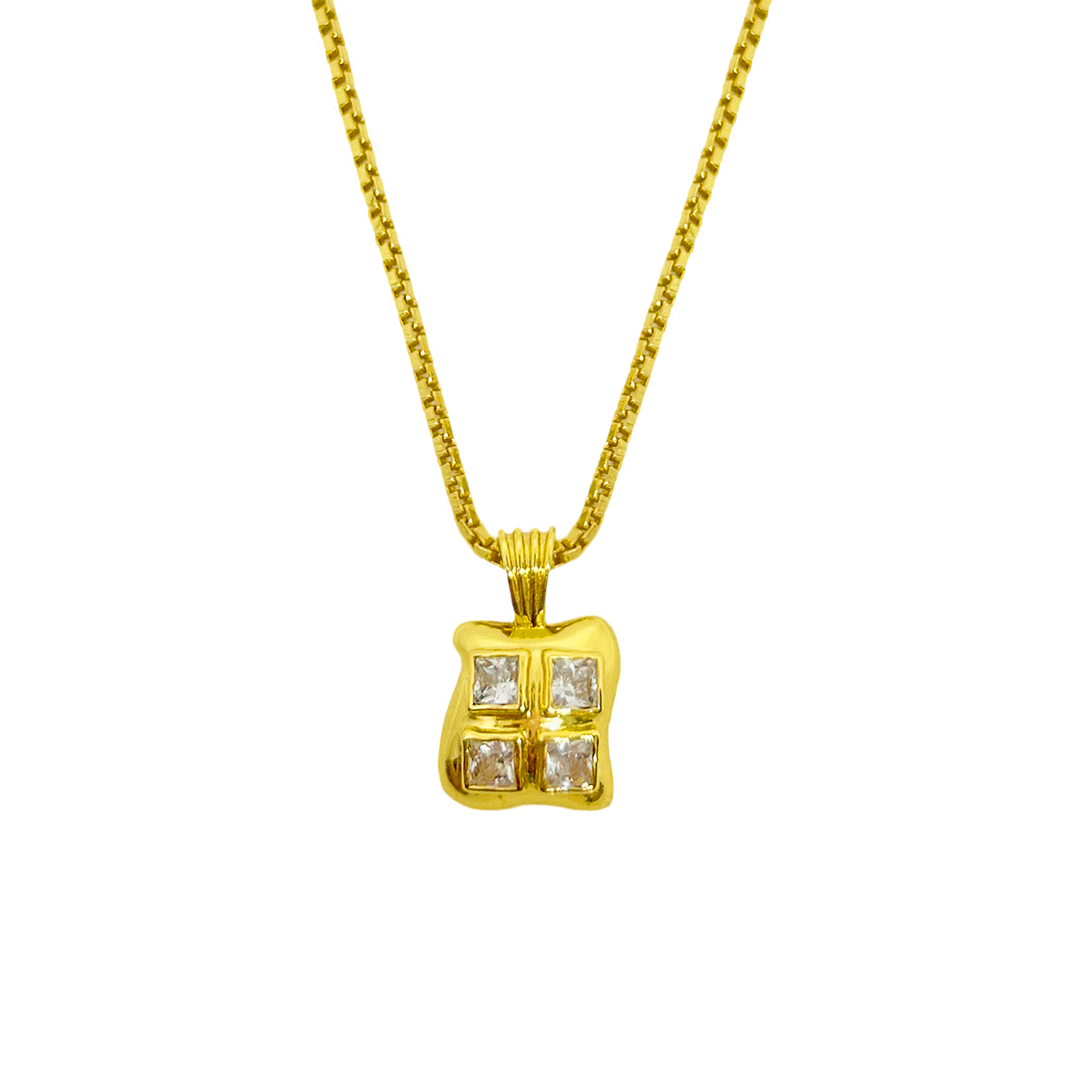 Introducing the Addison Necklace in Gold, where a little touch of Hollywood drama meets a chic modern aesthetic. Featuring a striking lattice motif with dazzling white CZ, set in a high polish cushion pendant and suspended on the most sparkly box chain. She is perfection in a layered moment or very sophisticated on her own. Day or night let yourselves take centre stage in the gorgeous Addison Necklace for The Legacy collection.