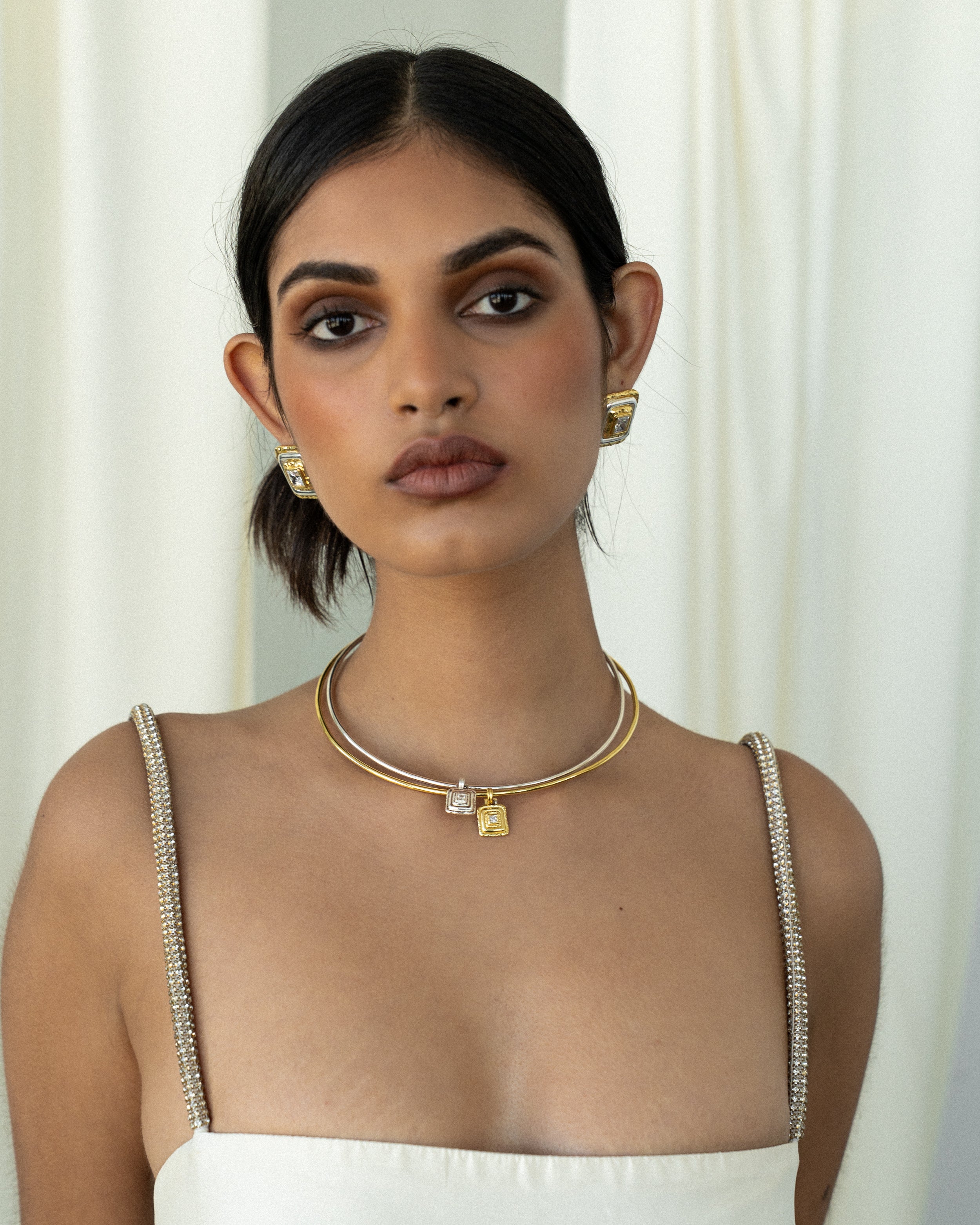 Sleek and sculptural, the Sita Necklace is a modern bar-style design anchored by a sparkling White CZ gemstone embedded in a chic square motif — a geometric element echoed throughout the ODE Collection. This piece is a quiet tribute to all we've learned along our design journey, blending contemporary aesthetics with artisanal craftsmanship. With clean lines and thoughtful detail, the Sita speaks to the modern woman who expresses her story through style — refined, intentional, and uniquely her own.