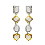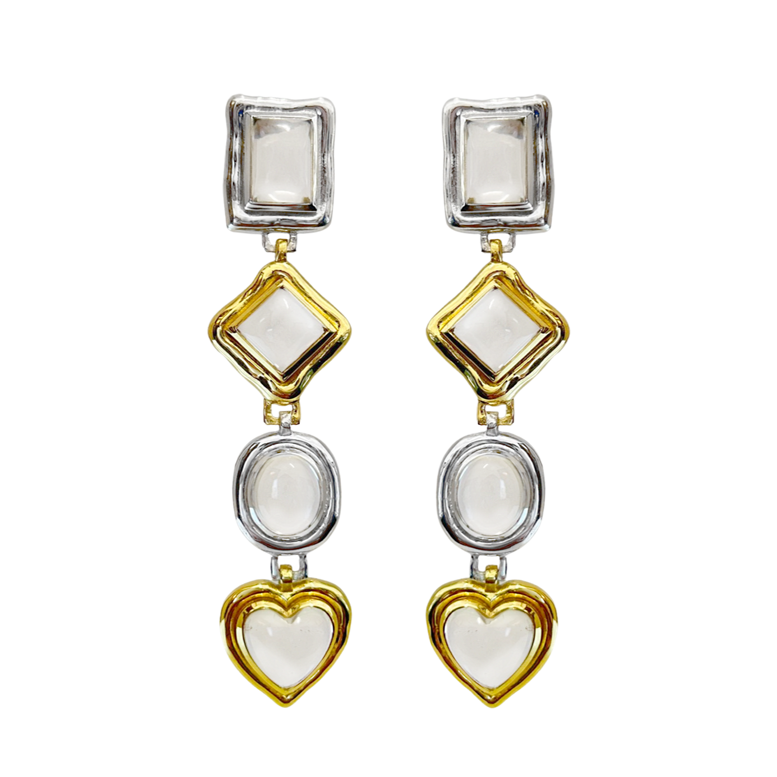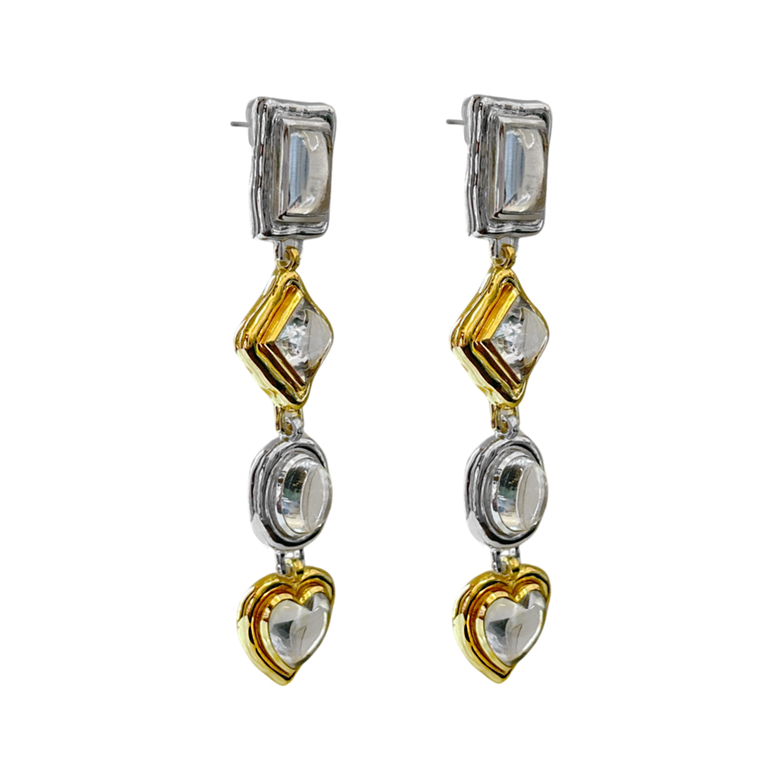Honey it's time to shake up your earring game with our NAOMI Earrings! These iconic drop earrings feature a mix of our favourite motifs for a statement-making look that's ultra-glam. Inspired by the 90's supermodel look, the mixed metal & crystal quartz design is elevated with a chunky high polish finish for a must-have addition to any party outfit. It's time to be the ultimate it girl!