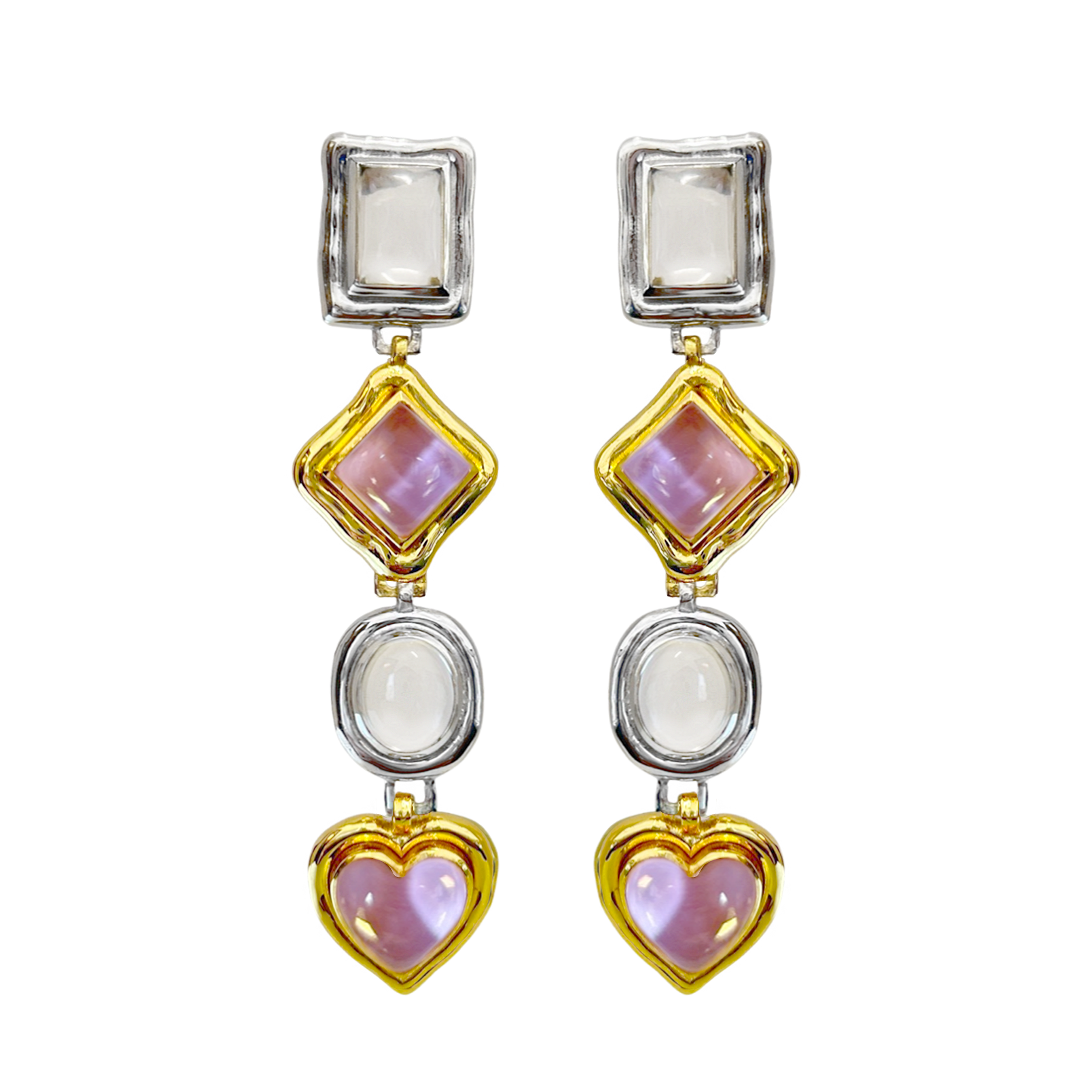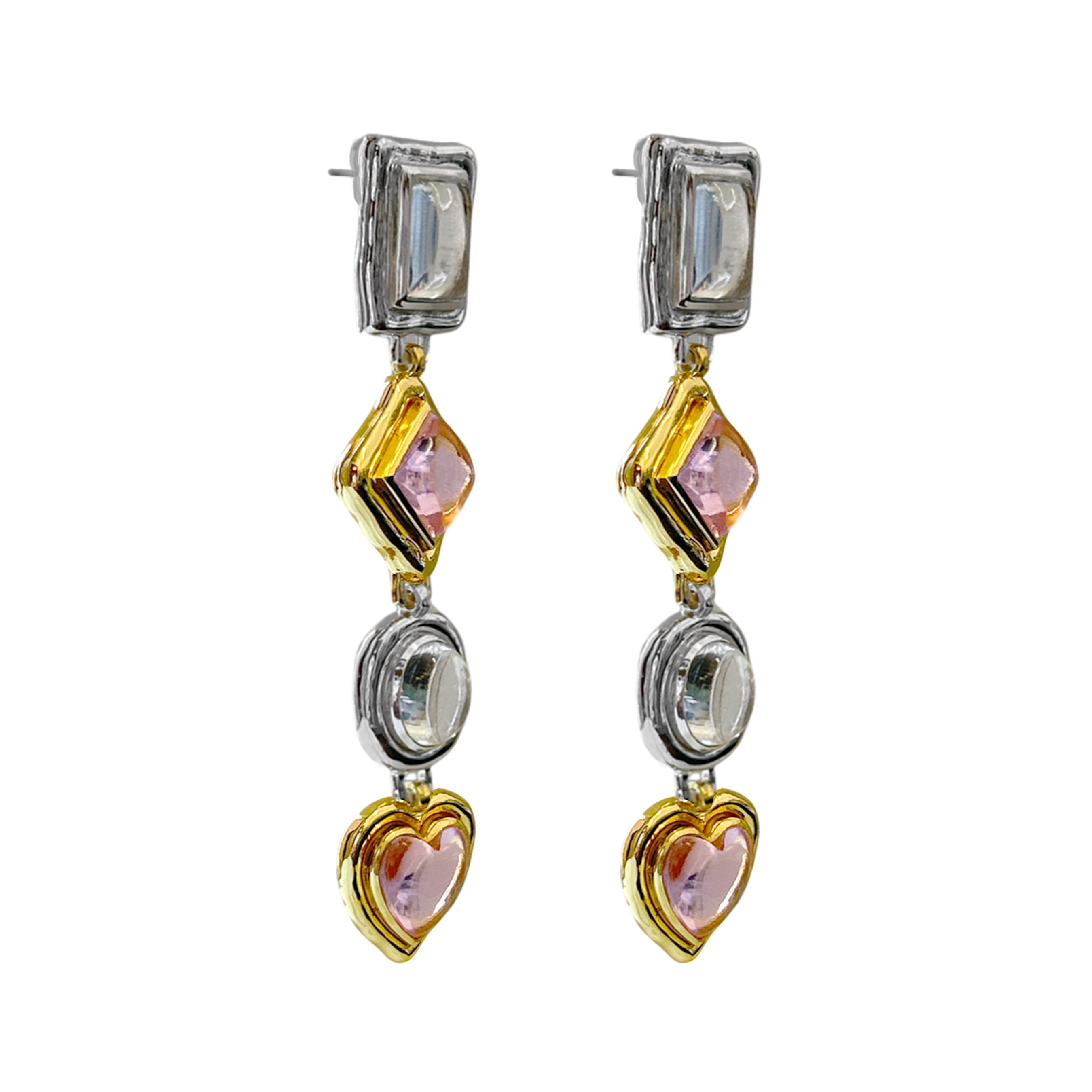 Honey it's time to shake up your earring game with our NAOMI Earrings! These iconic drop earrings feature a mix of our favourite motifs for a statement-making look that's ultra-glam. Inspired by the 90's supermodel look, the mixed metal & crystal quartz design is elevated with a chunky high polish finish for a must-have addition to any party outfit. It's time to be the ultimate it girl!