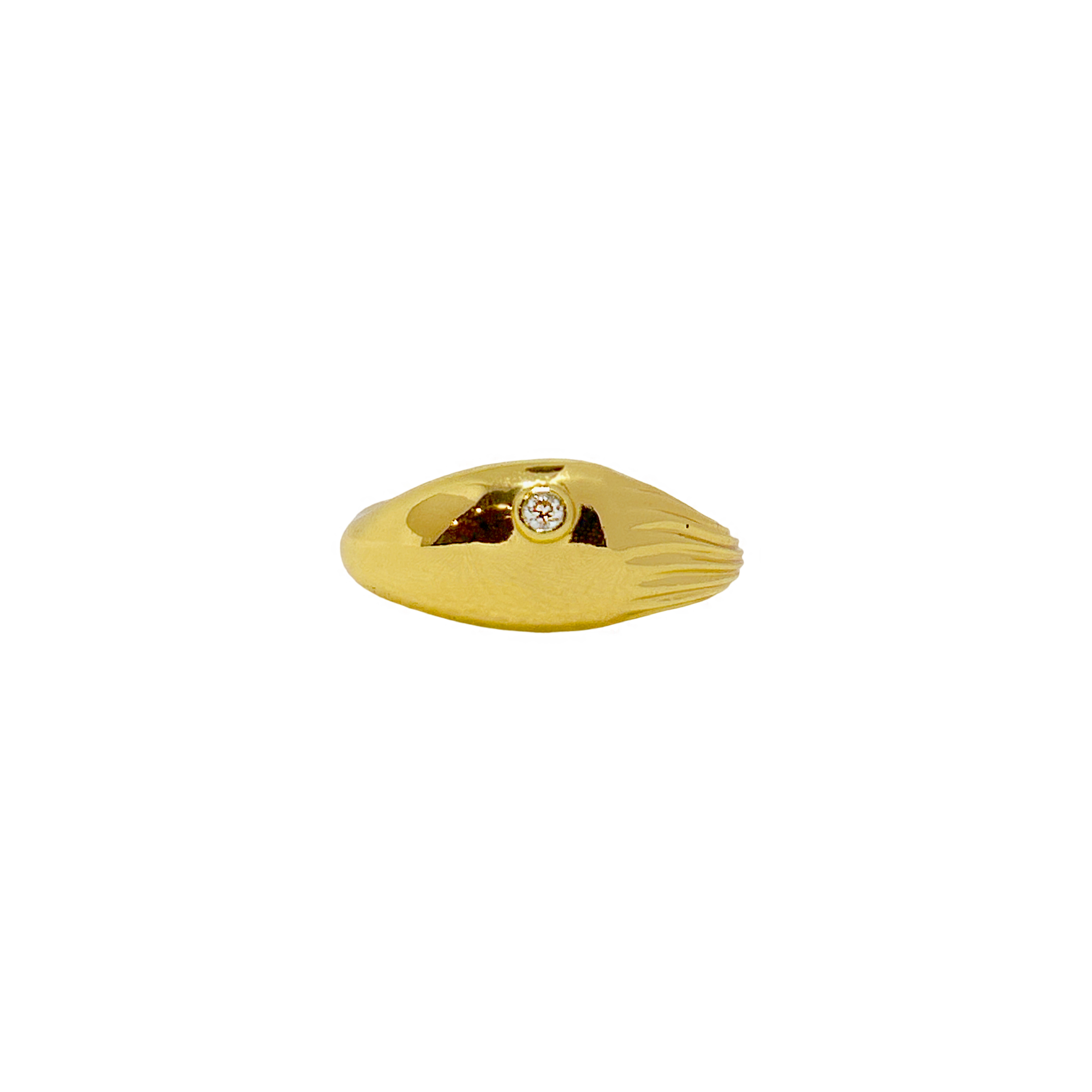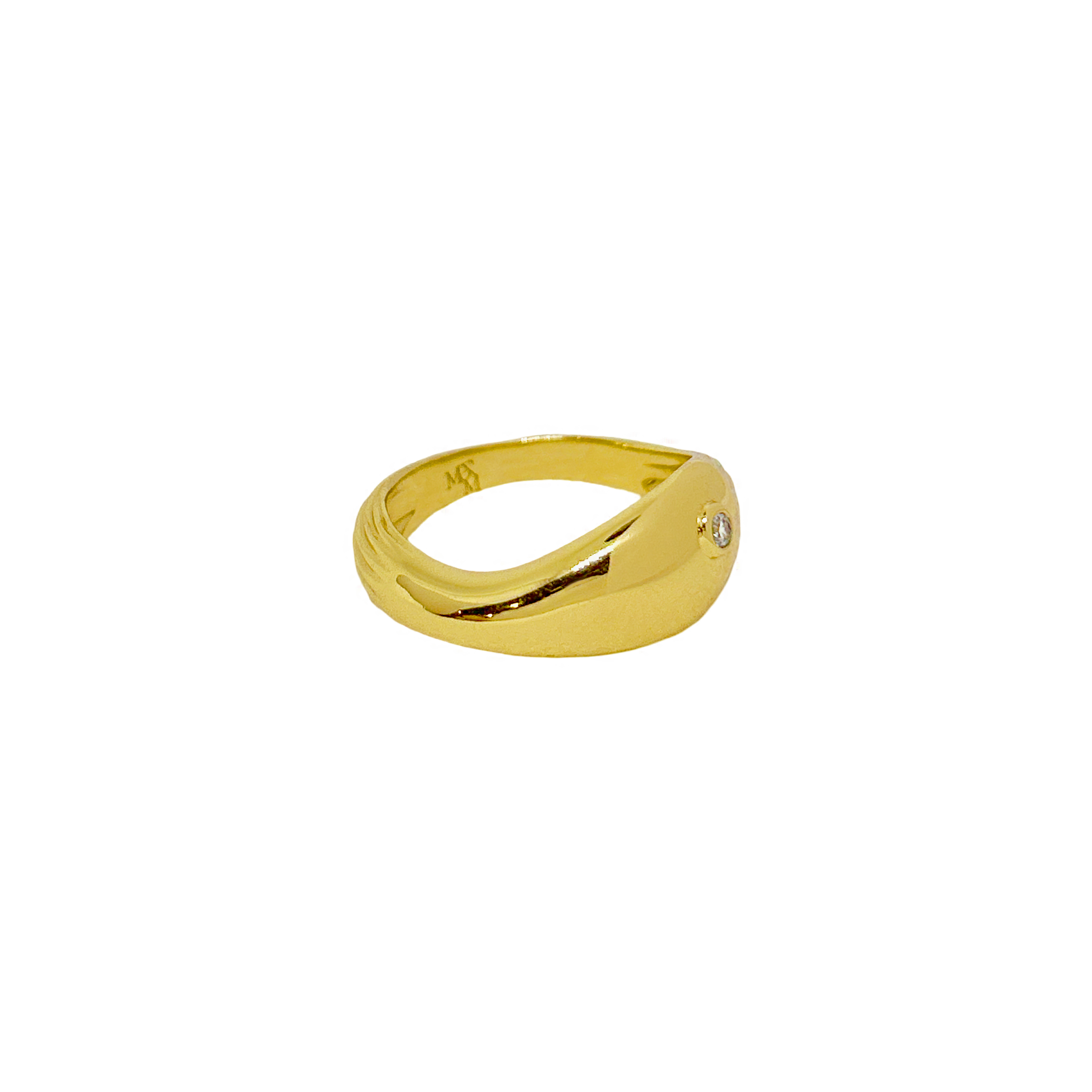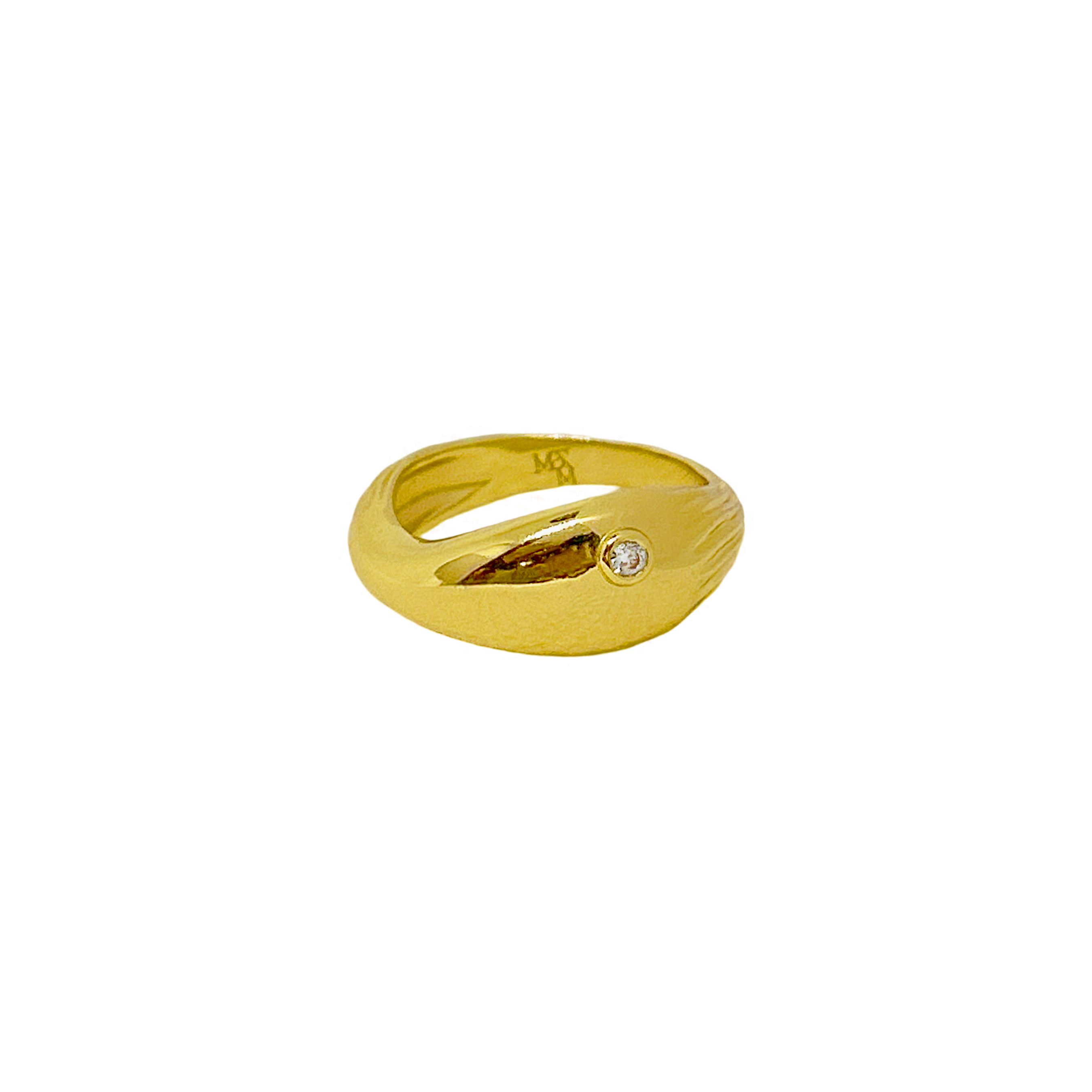 Introducing the exquisite XANA Ring in Gold, she exudes understated sophistication with her sleek, smooth statement shape. Adorned with a tiny sparkling White CZ stone that will catch your eye every time. The Xana is a beautiful unique piece - when stacking two Xana rings together it forms a yin yang shape, you can do this with gold on gold or mix it up by stacking silver and gold to create a mixed metal vibe. It's giving an effortlessly cool sophisticated vibe!