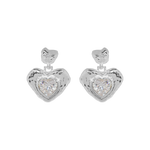 A playful take on a classic feminine motif, the Suri Earrings reimagine the heart through the lens of traditional craftsmanship. Hand-finished in radiant silver with a sparkling White CZ gemstone, the Suri earrings merge age-old design techniques with a fresh, modern spirit. Bold yet tender, they speak to the contemporary woman who honours the past while embracing her own story.