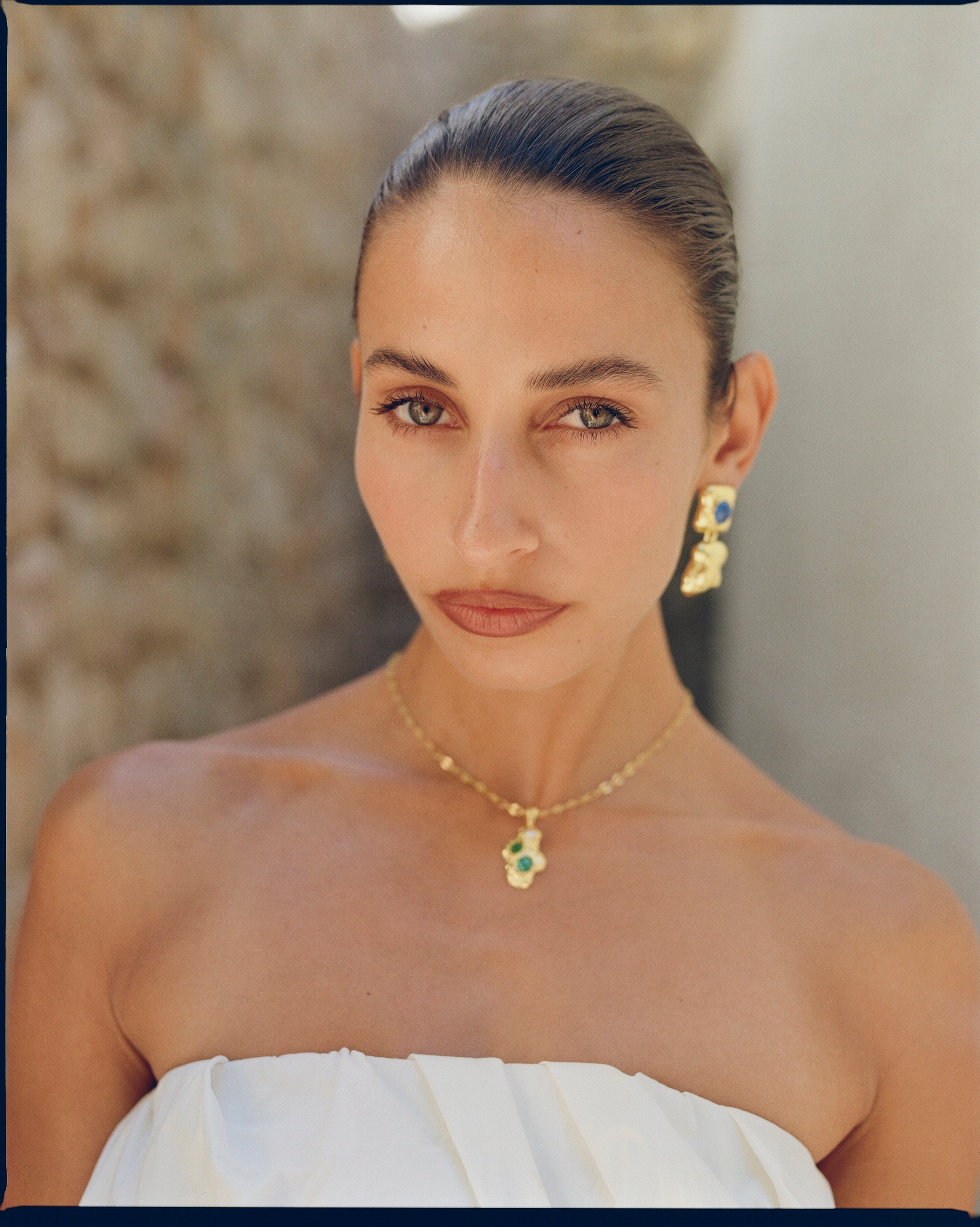Her fluid silhouette gives movement and softness, while the combination of stones brings depth, colour, and quiet strength. The effect is timeless but not traditional - echoing jewellery of the past while feeling entirely modern.