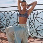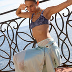Jo in silver brings a cooler, more directional energy. Alternating black leather cord and silver chain wrap the body in an effortless line, finished with fluid organic charms and striking tiger’s eye stones that shift with tone and light.