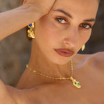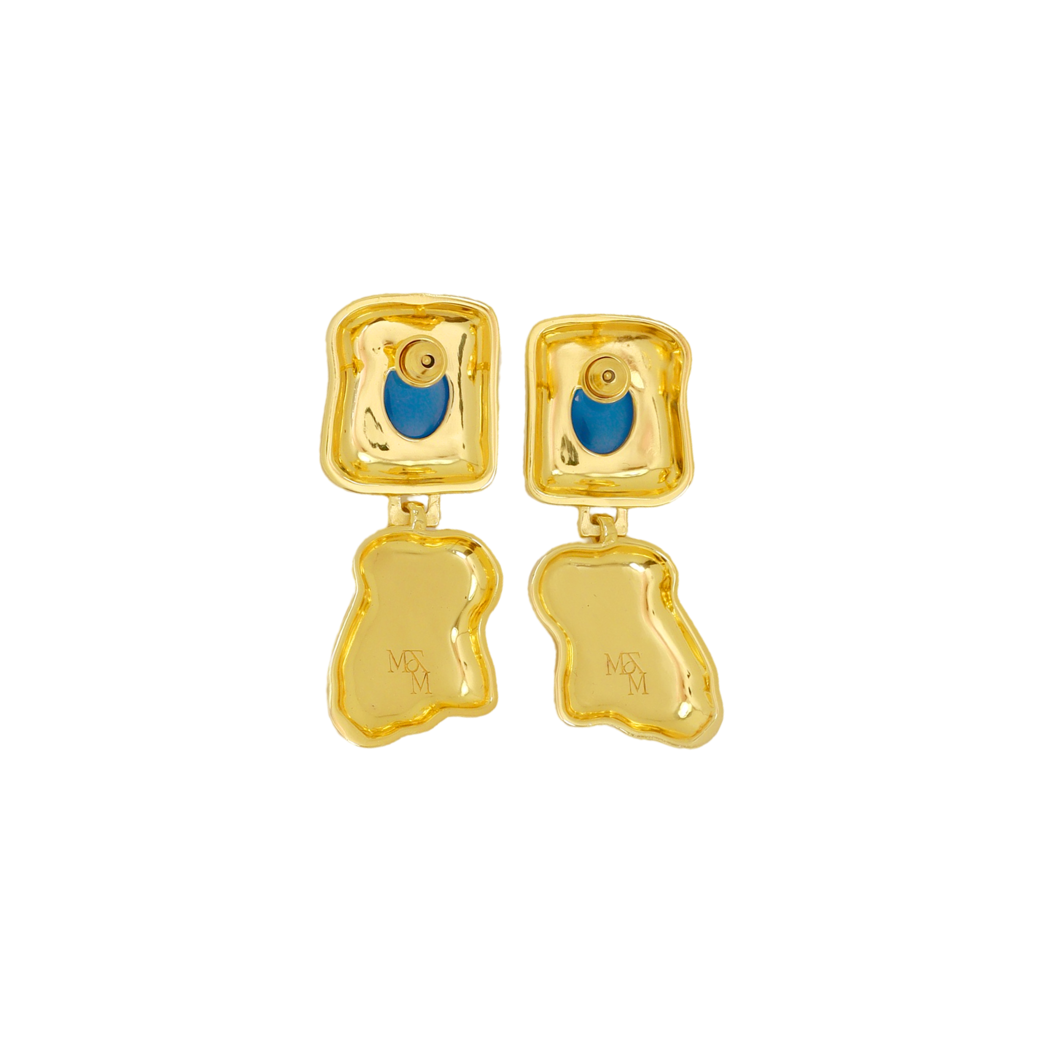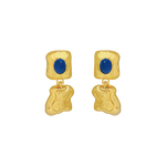 Designed as part of the Dominique Elissa x Mountain & Moon collaboration, Features softly hammered gold paired with a vivid blue chalcedony gemstone. Organic lines, subtle texture and just enough colour to lift your look without trying too hard.