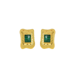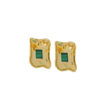 The Kauri Earrings in gold brings vintage-inspired structure into a modern, wearable silhouette. A softly contoured gold frame surrounds rich Malachite gemstones, creating a refined statement that feels elevated yet easy.