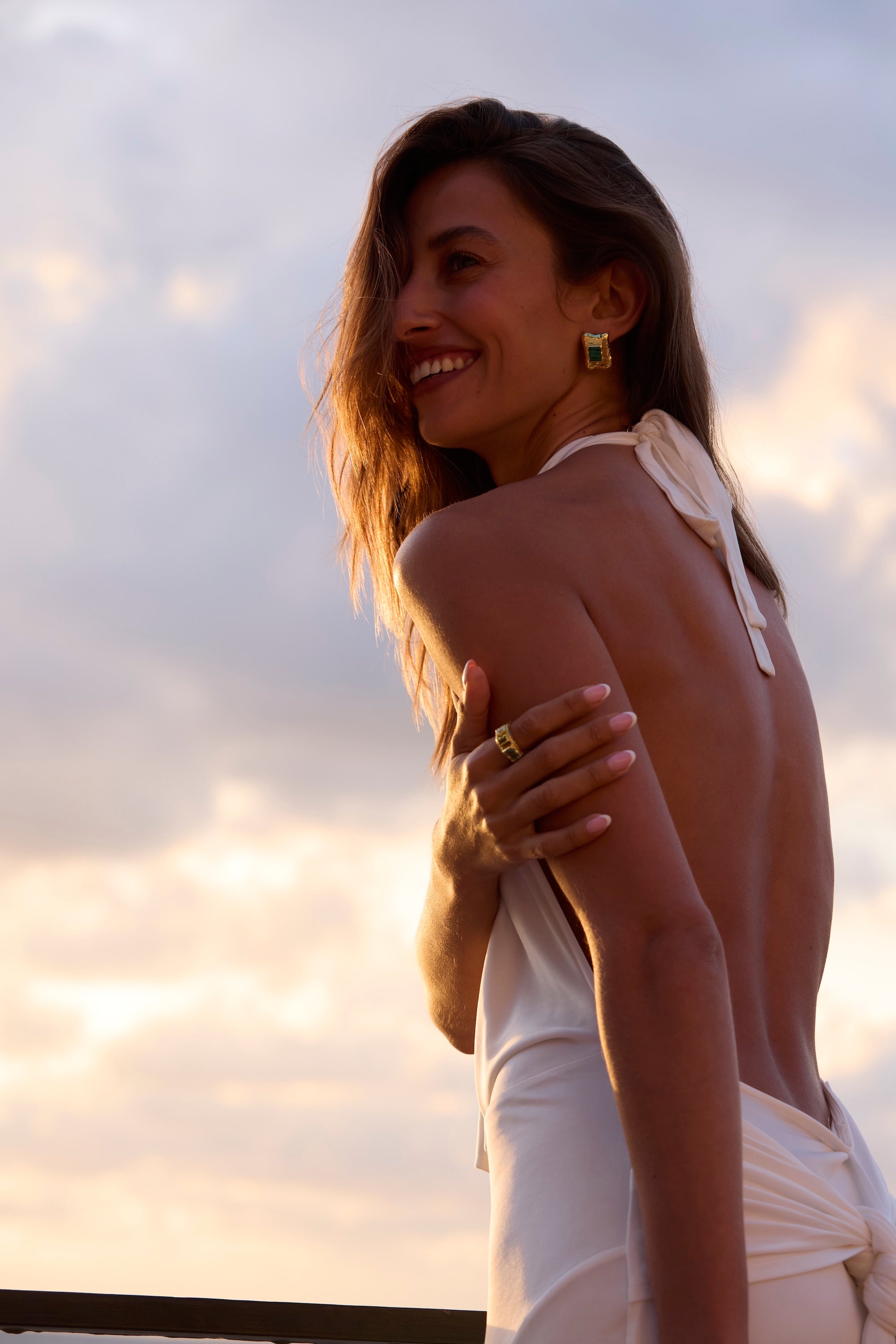 Wear Kauri with slick hair and sharp tailoring for a modern finish, or soften her with linen, silk or relaxed layers. She adds structure to simple outfits and balance to bolder looks.
