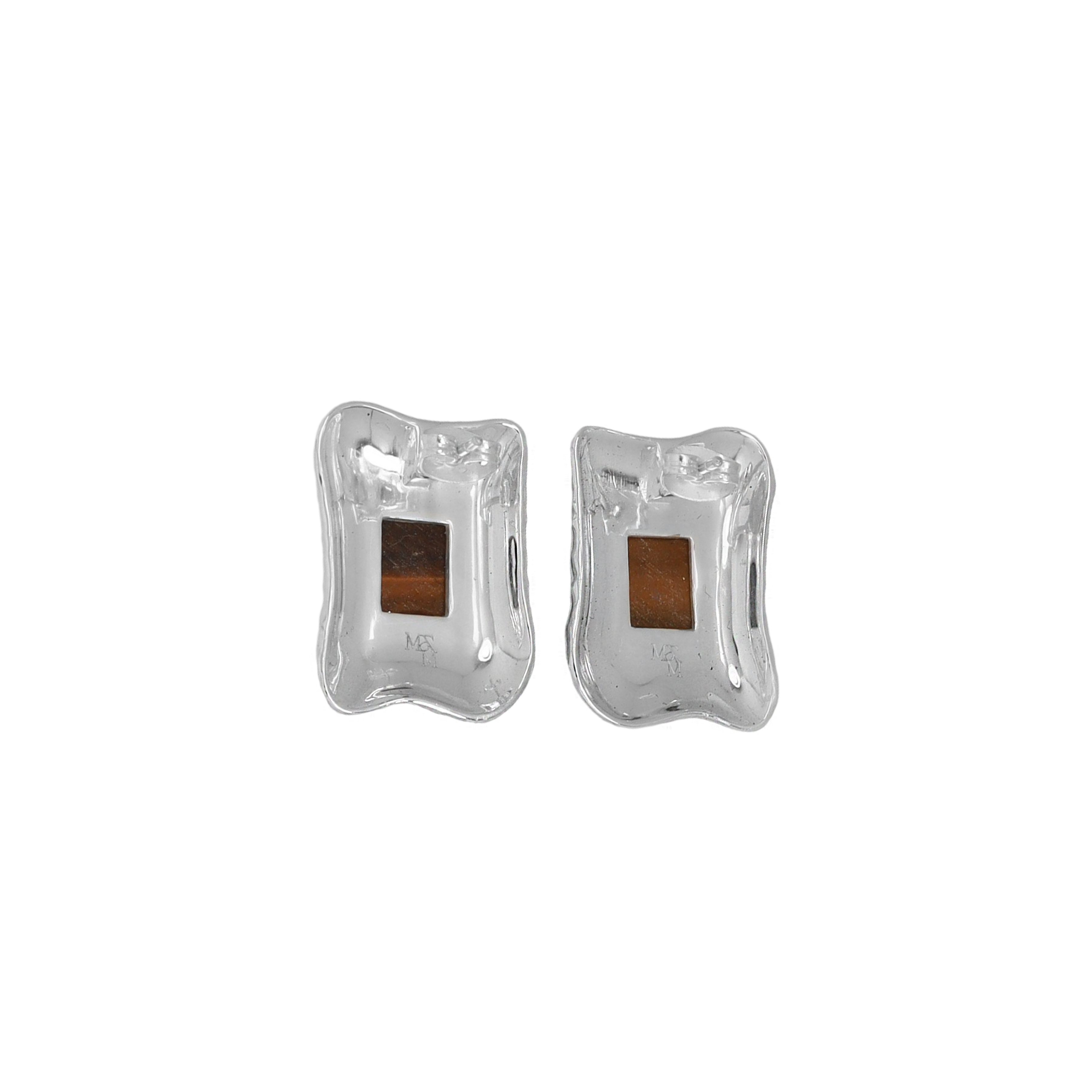 The Kauri Earrings in silver brings vintage-inspired structure into a modern, wearable silhouette. A softly contoured silver frame surrounds a deep Tigers eye gemstone, creating a refined statement that feels elevated yet easy.
