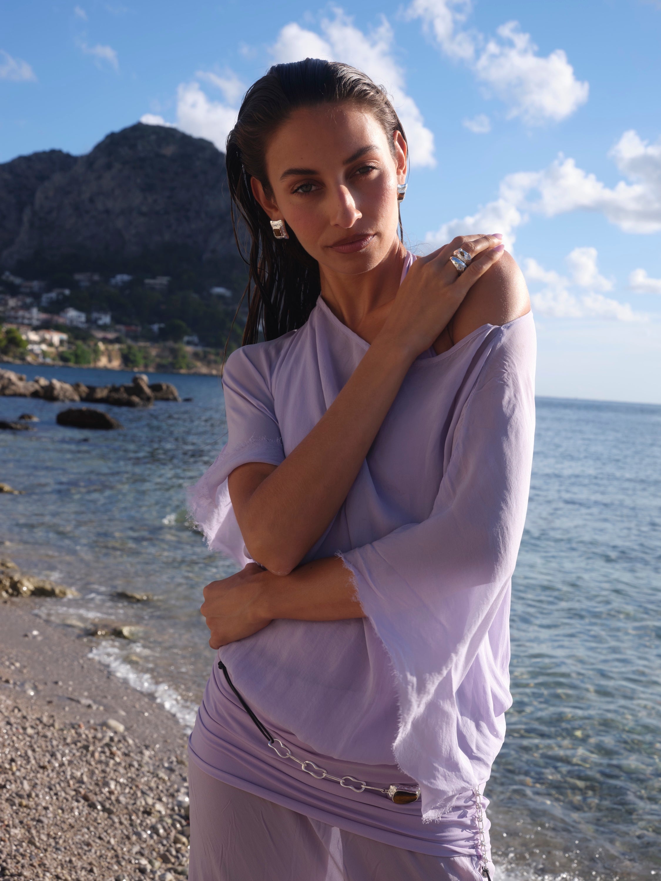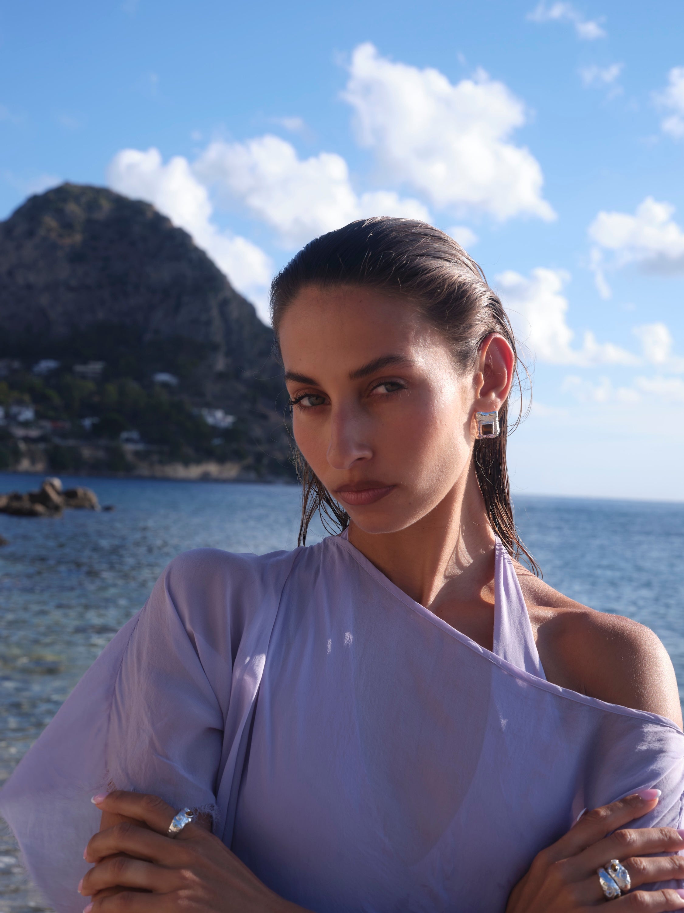 Wear Kauri with slick hair and sharp tailoring for a modern finish, or soften her with linen, silk or relaxed layers. She adds structure to simple outfits and balance to bolder looks.